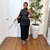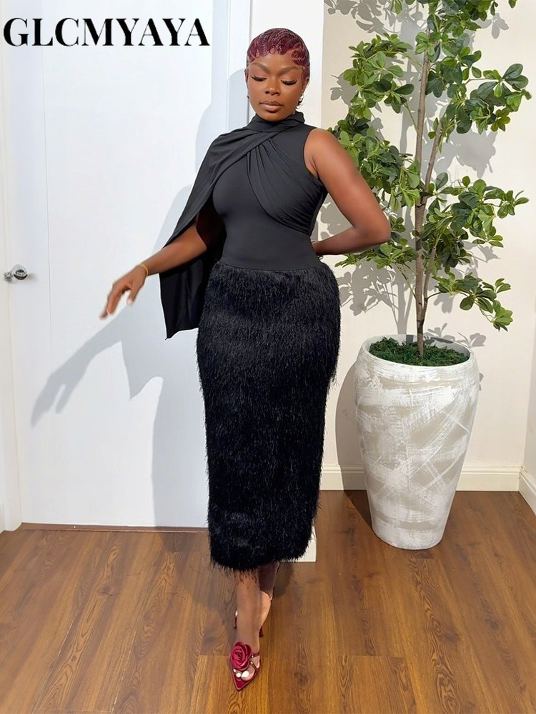 GLCMYAYA Women One Short Sleeve Cutout Stacked Feather Bodycon Maxi Long Dress 2025 Evening Vacation Sexy Party Vestido Dresses