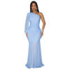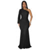GLCMYAYA Women One Shoulder Long Sleeve Stacked Ruch Ruffles A-line Midi Maxi Long Dress 2025 Vacation Birthday Dresses Vestido