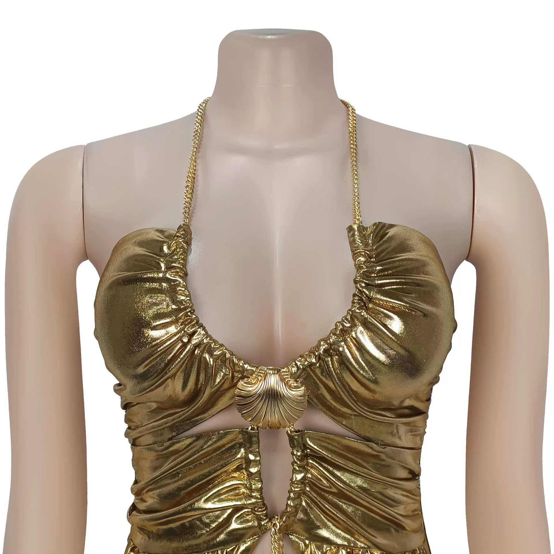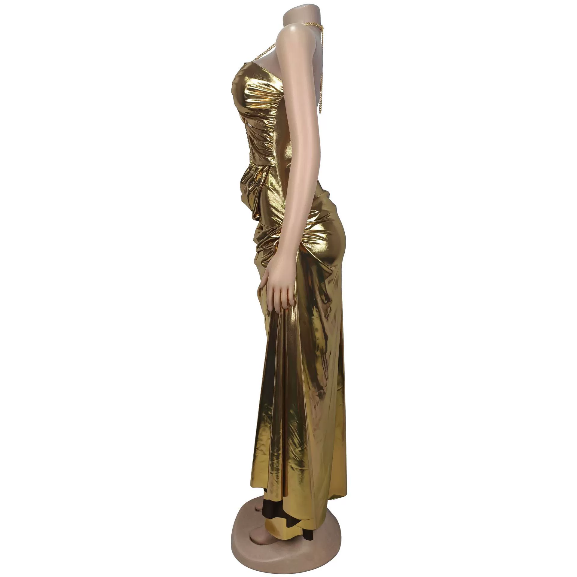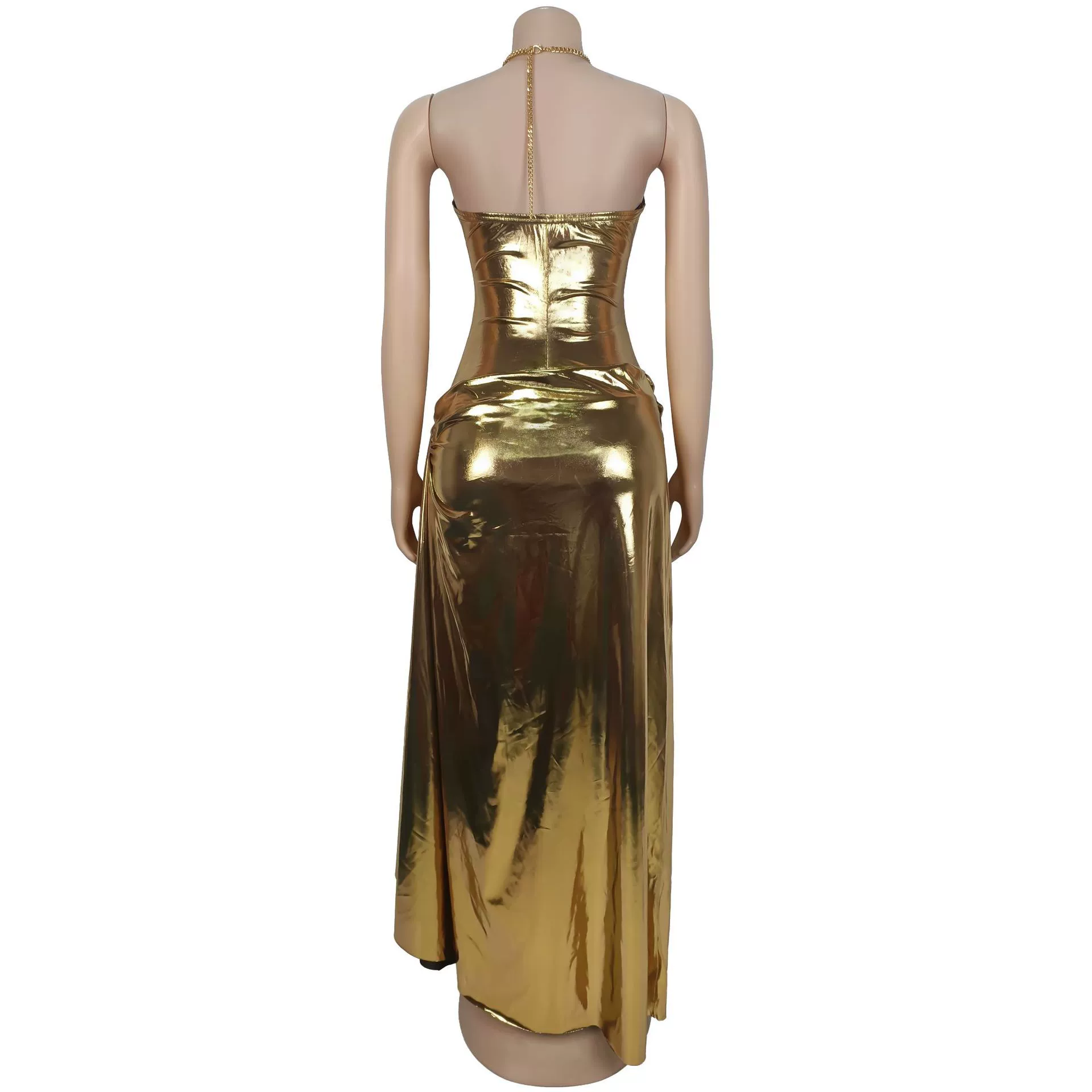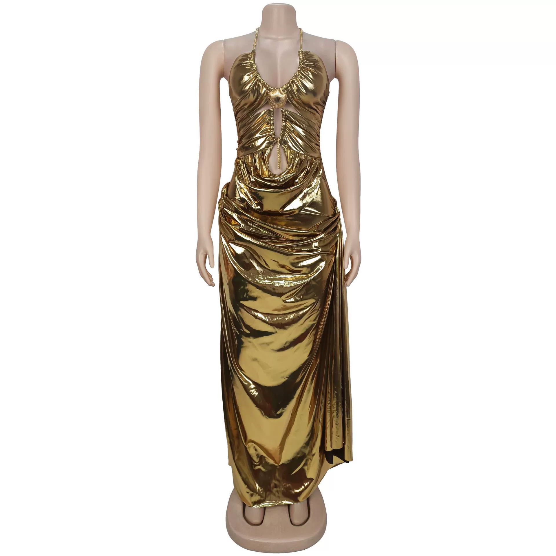 GLCMYAYA Women Sleeveless Halter Neck Ruched Stacked Bodycon Maxi Long Dress 2025 Vacation Street Sexy Party Vestidos Dresses