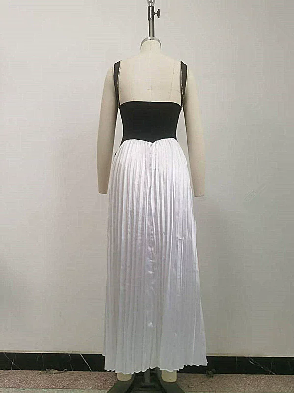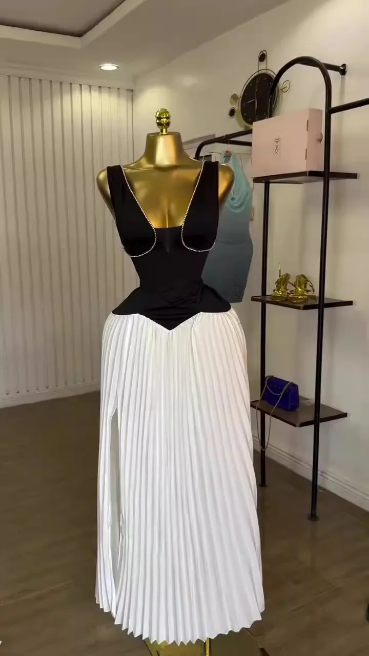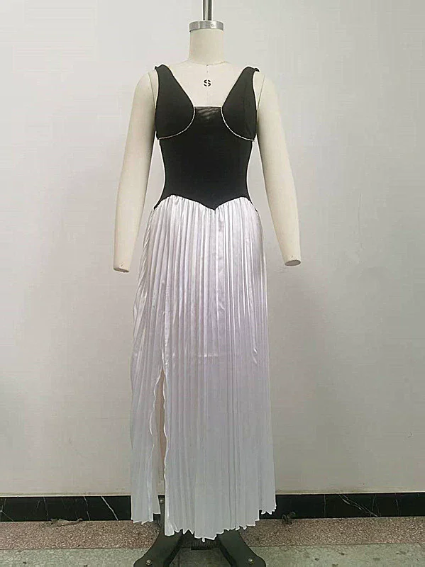 GLCMYAYA Women Sleeveless V-neck Maxi Long Pleated Dress 2025 Summer Beach Vacation Holiday Street Elegant Vestidos Dresses