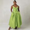 GLCMYAYA Women Strap V-neck Satin Big Swing A-line Maxi Long Dress 2025 Vacation Sexy Party Club Prom Evening Vestidos Dresses
