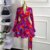 GLCMYAYA Women Tie Dye Print Flare Long Sleeve Wrap V-neck with Sashes Ruffle Dress 2026 Elegant Vacation Party Birthday Dresses