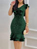 Glitter Ruffle Hem Bodycon Work Dress Women Flutter Sleeve Elegant Mermaid Dress
