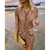 Glitter Sexy Deep V Neck Split Ruched Elegant Party Dresses for Women Spring Summer Fashion Long Sleeve Club Mini Dress Vestidos