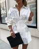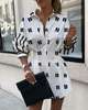Gniherii Women Letter Printing Blouses Fashion Ladies Chic V Neck Button Long Sleeve Long Shirt Tops Blouse blusas mujer de moda