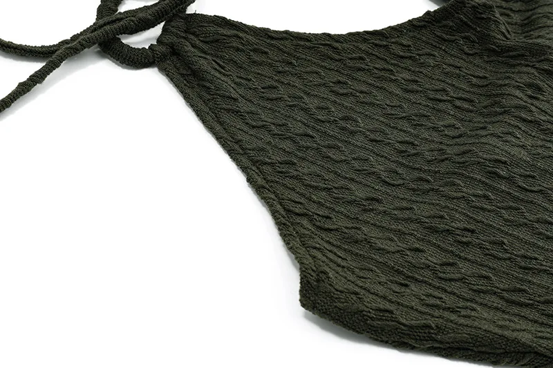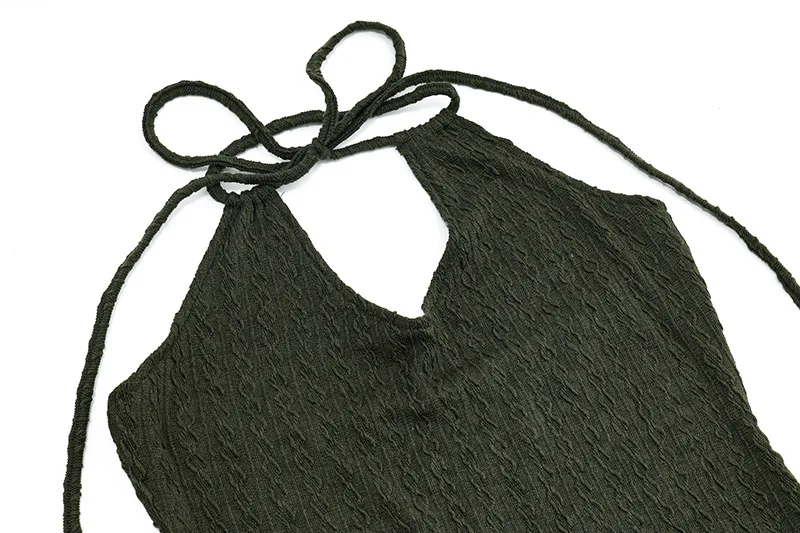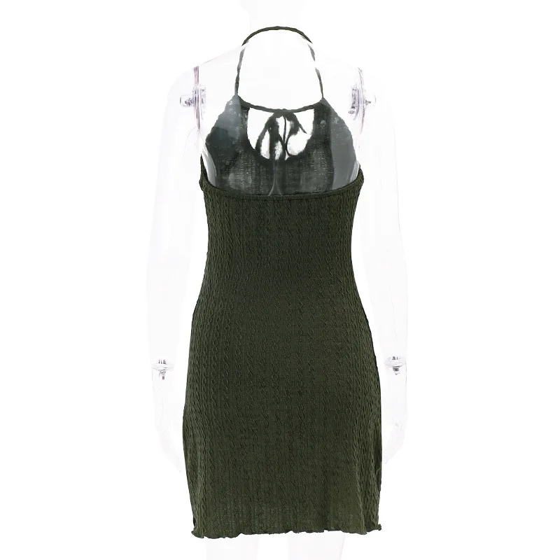 Goth Dark Knitted Fairy Grunge Green Folds Mini Dresses Gothic Retro Backless A-Line Women Dress Sexy Halter Lettuce Hem Outfits