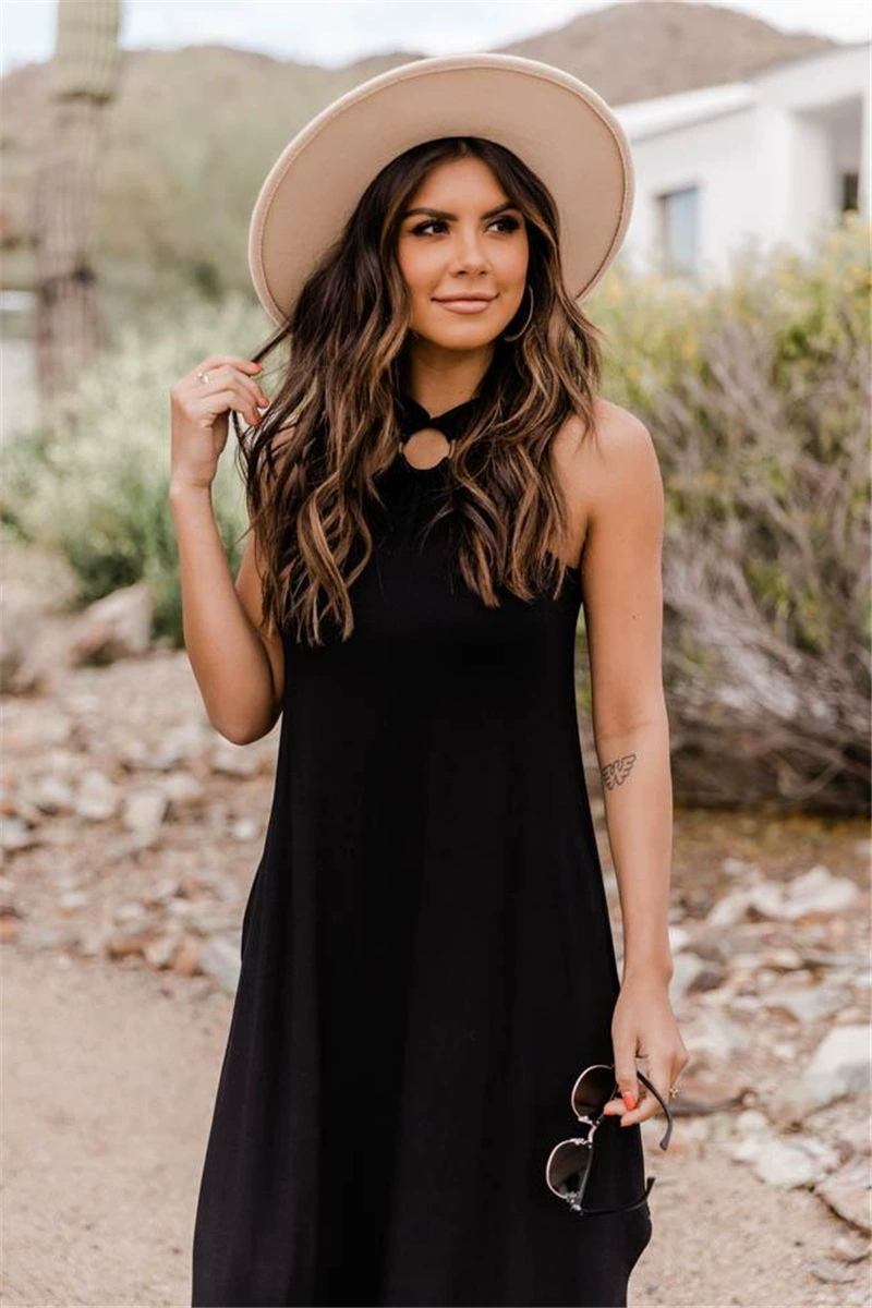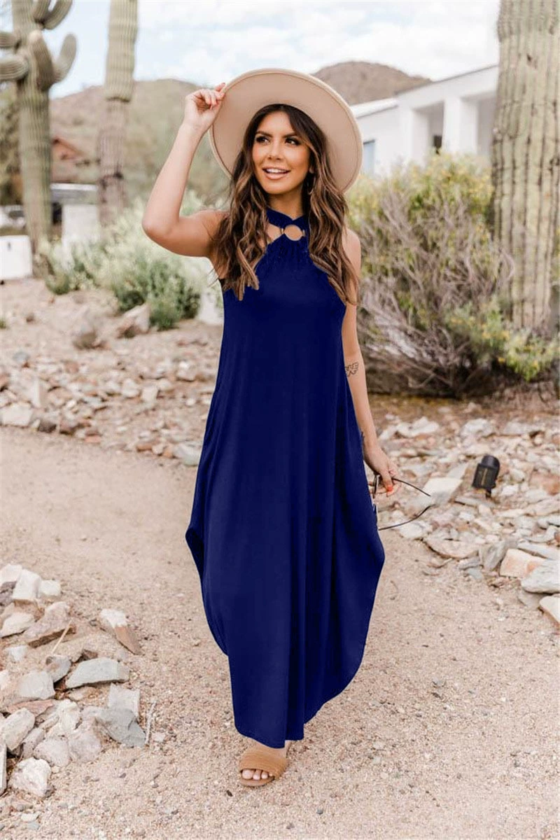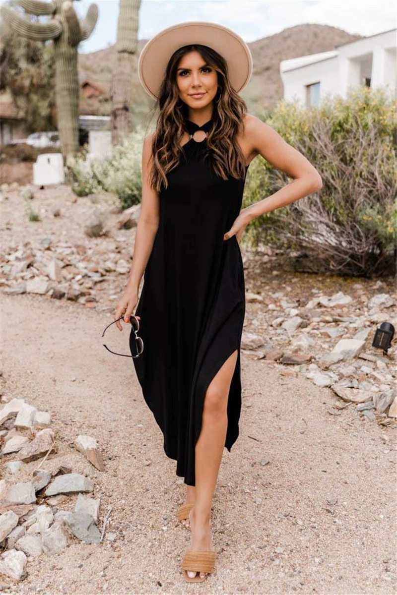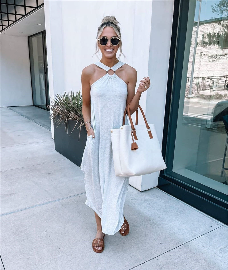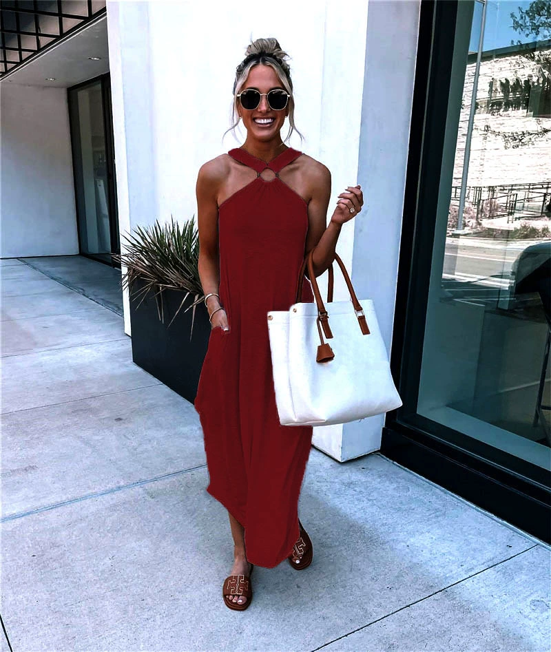 Halter Neck Sleeveless Backless Dress dresses for women 2022 Summer Sexy Party Club Elegant Solid Color Loose Long Sundress traf