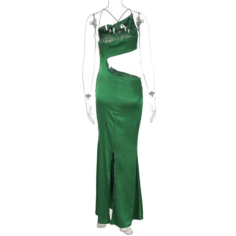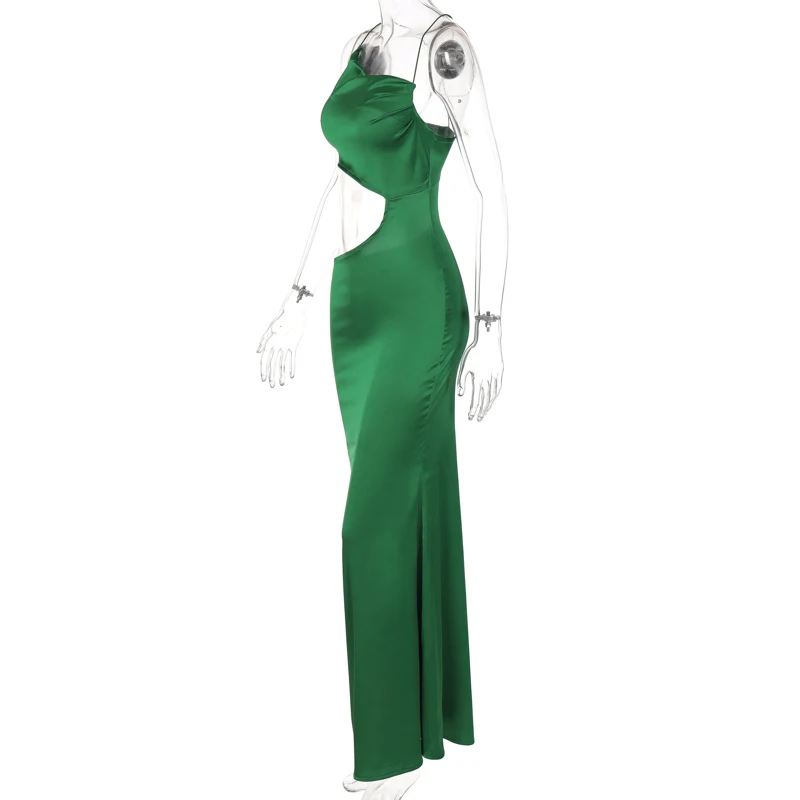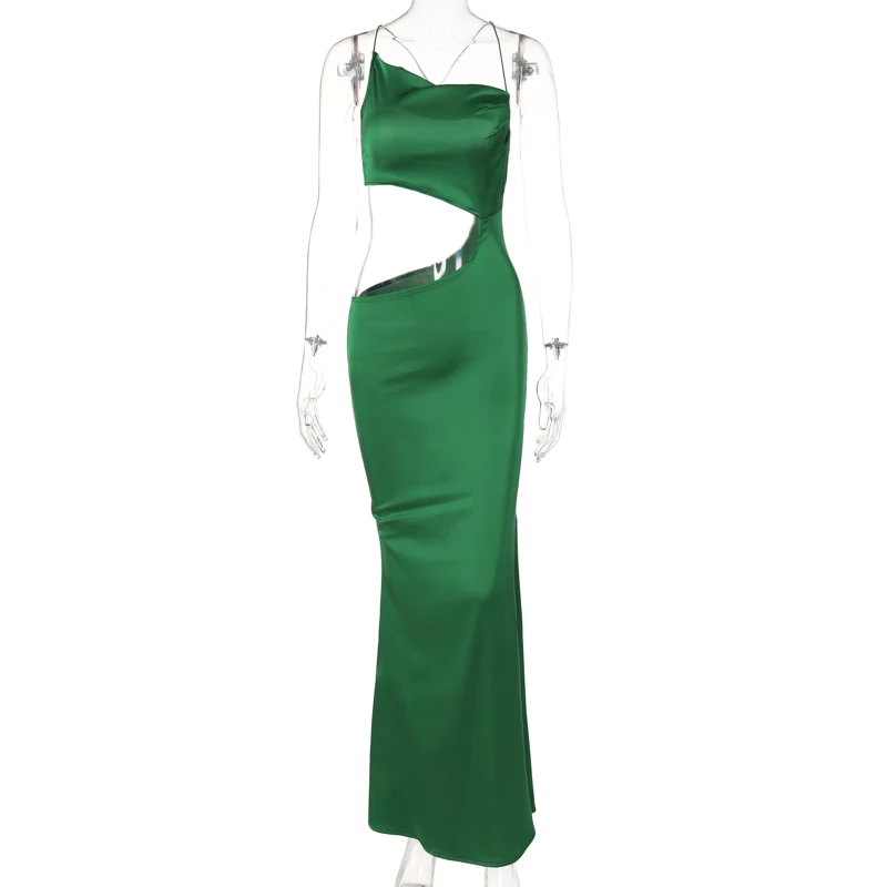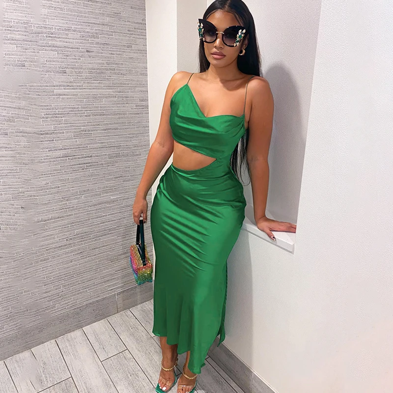 Hawthaw Women Elegant Party Club Evening Birthday Hollow Out Bodycon Stain Green Long Dress 2022 Summer Clothes Streetwear