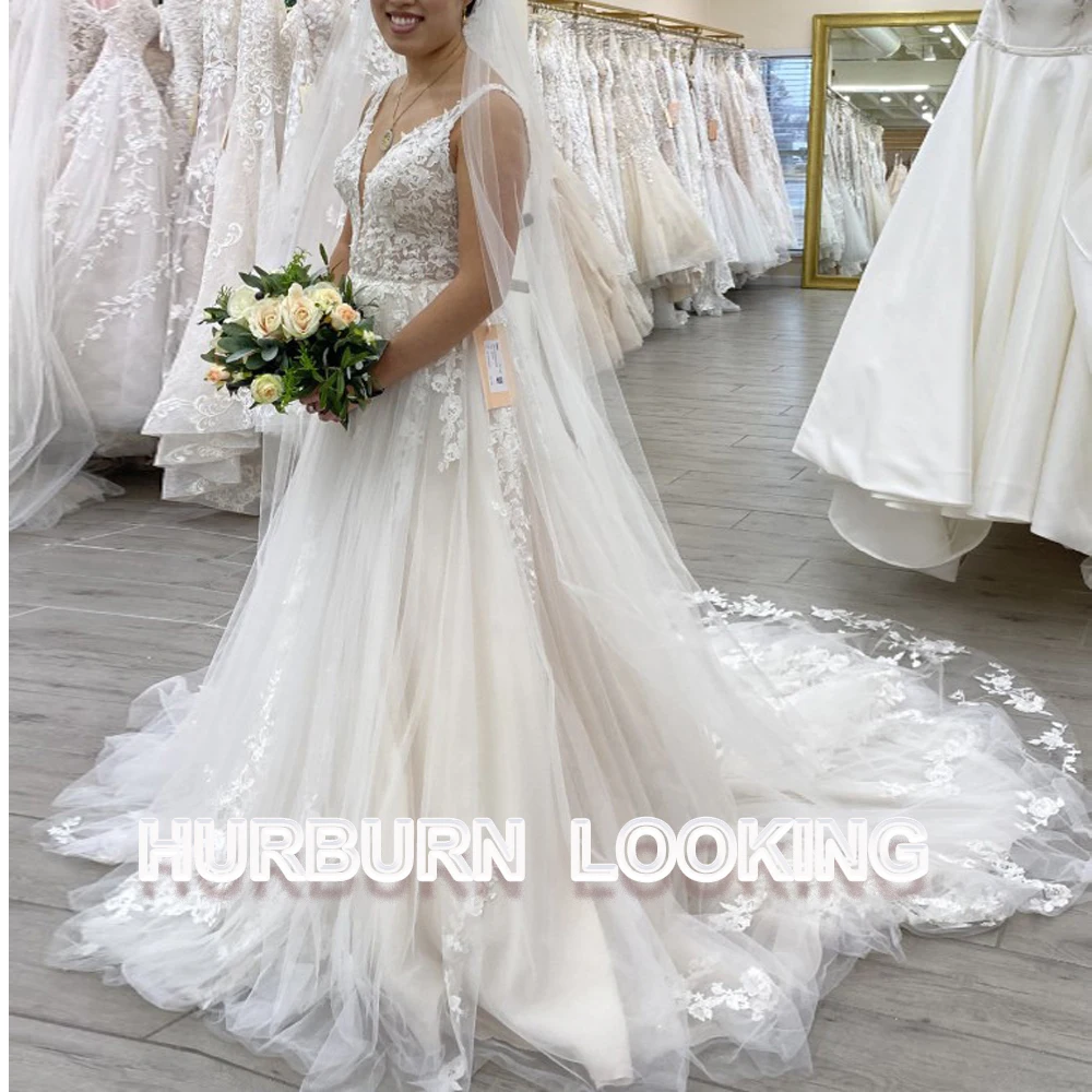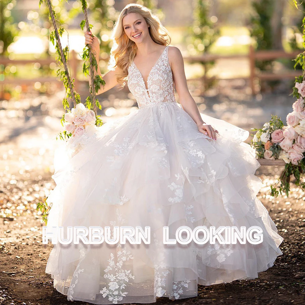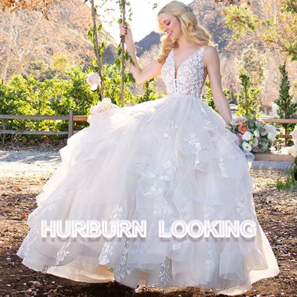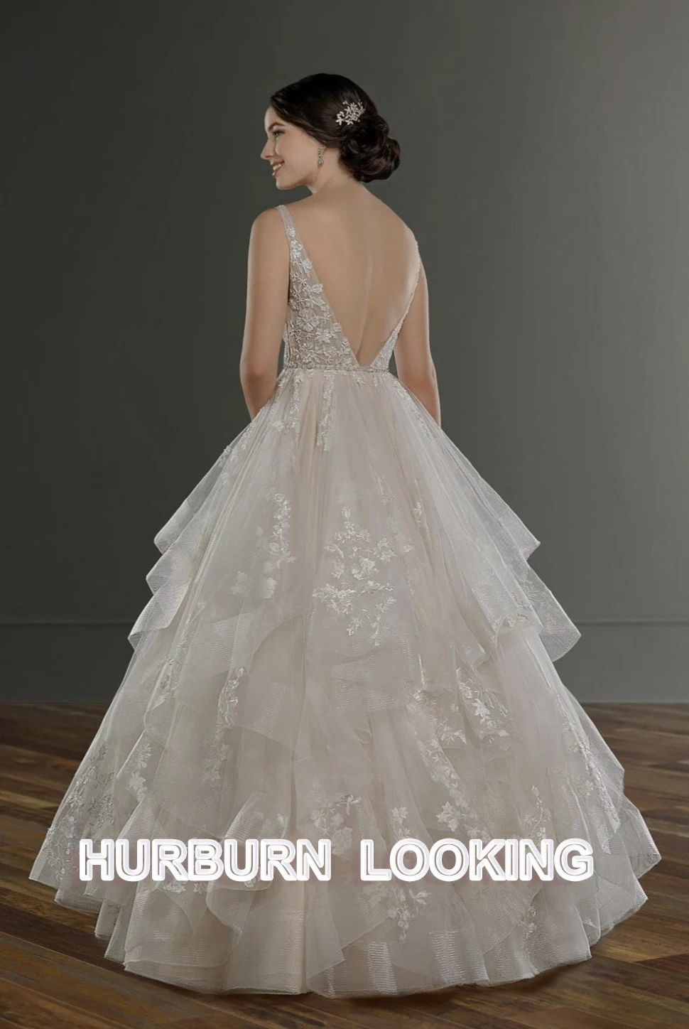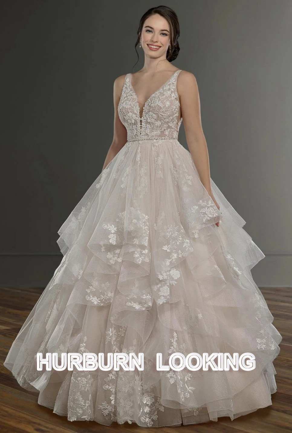 HERBURN Pastrol Layered Tulle Wedding Dresses Puff Sleeveless Backless Lace Delicate 2024 Marriage Bride Gown Drop Shipping