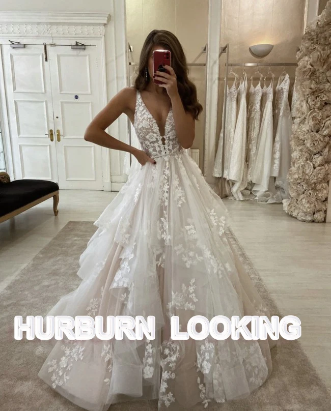 HERBURN Delicate Wedding Dresses Sexy Deep V-Neck … HERBURN Exquisite Wedding Dresses Lace Appliques V… HERBURNL Princess Custom Made Gorgeous Wedding Dre… HERBURN Geogeous Wedding Dresses Tank A-Line V-Nec…