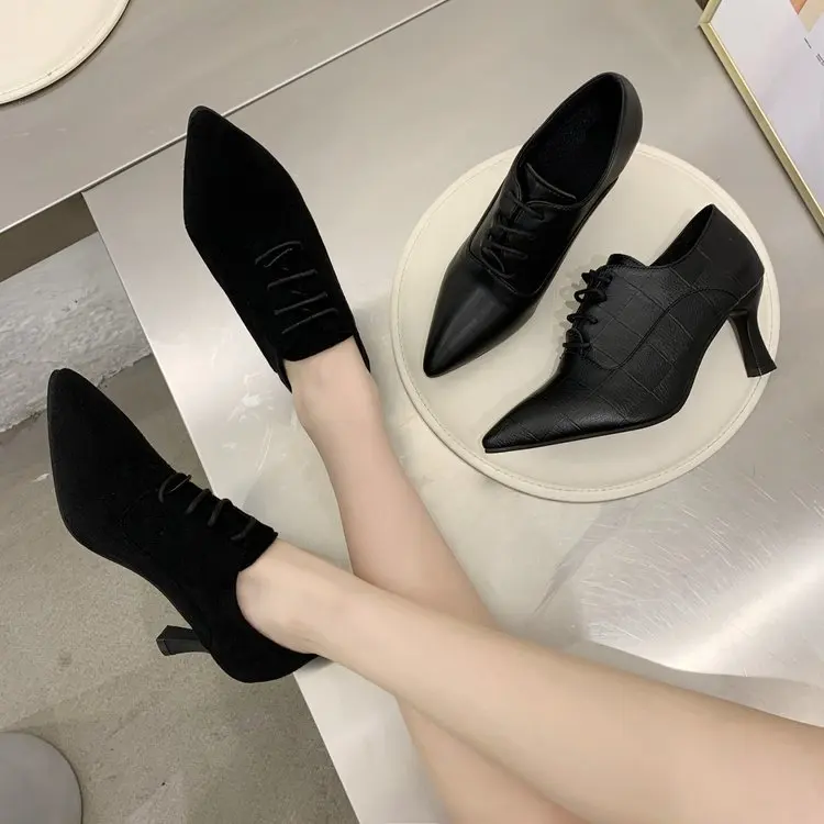 High Heels Pointed Toe Sexy Ankle Boot 2023 New Winter Mujer Fashion Cross Lace Up Party Heels Casual Chelsea PU Leather Oxfords