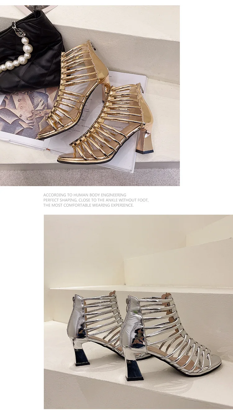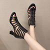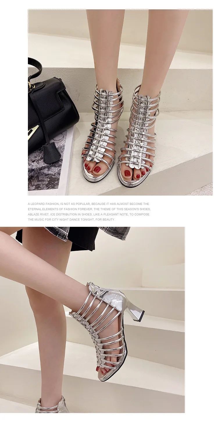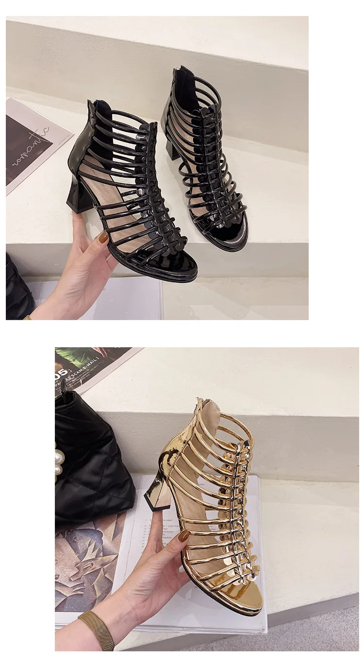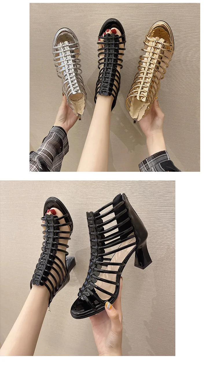 High Quality Women Casual Sandals Summer Ladies Fashion High Heel Zip Boots Straps Retro Buckle Shoes Female Hollow Out Sandals