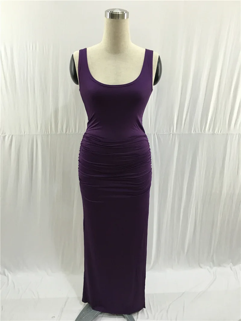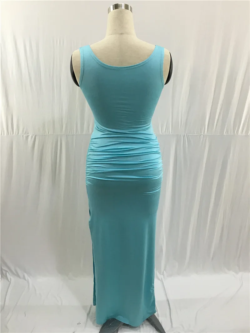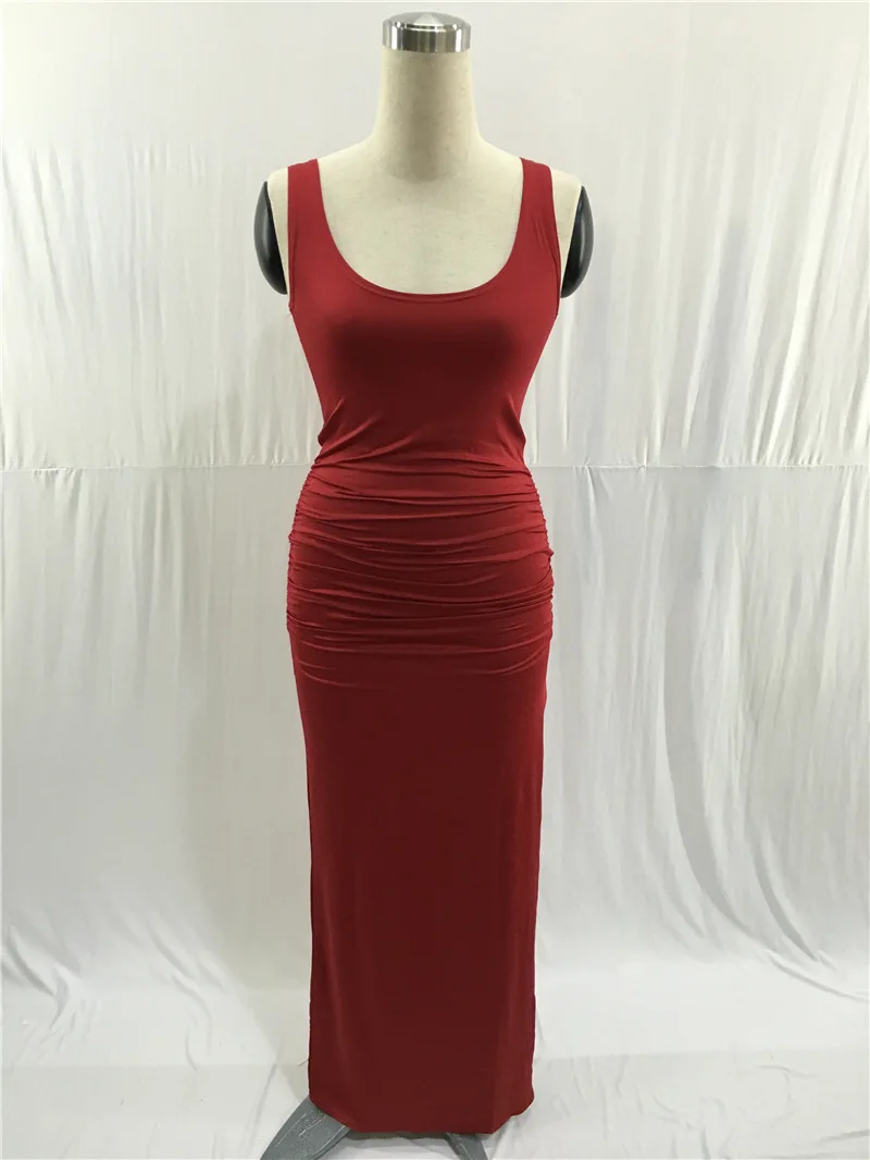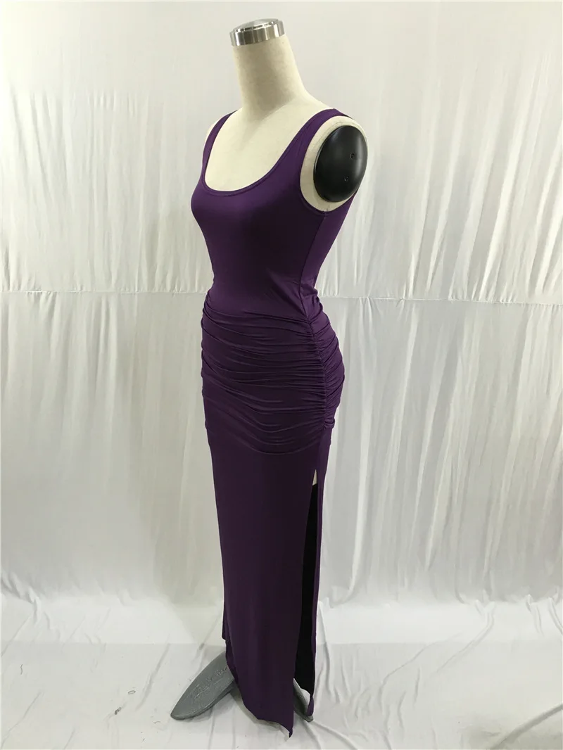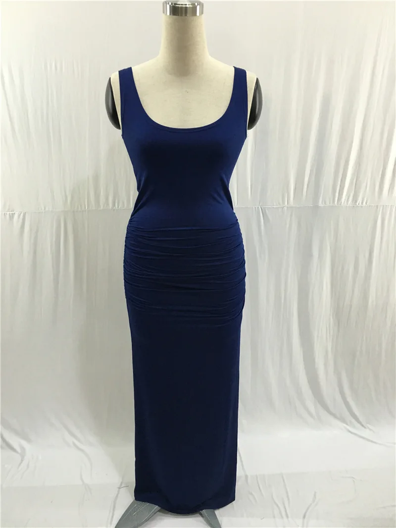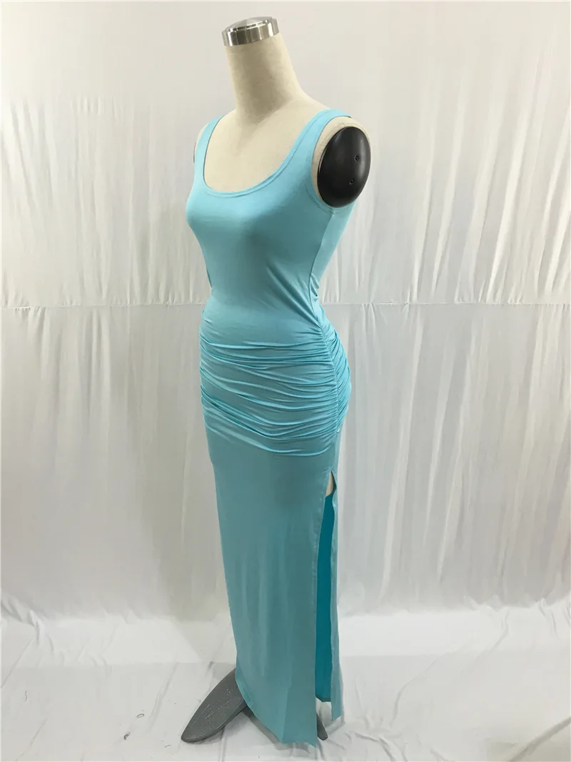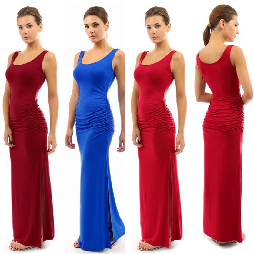 High Stretch Tank Robe Summer 2019 Elegant Women Sexy Dress O-neck Sleeveless Maxi Dress Hem Split Red Blue Long Dress Vestidos