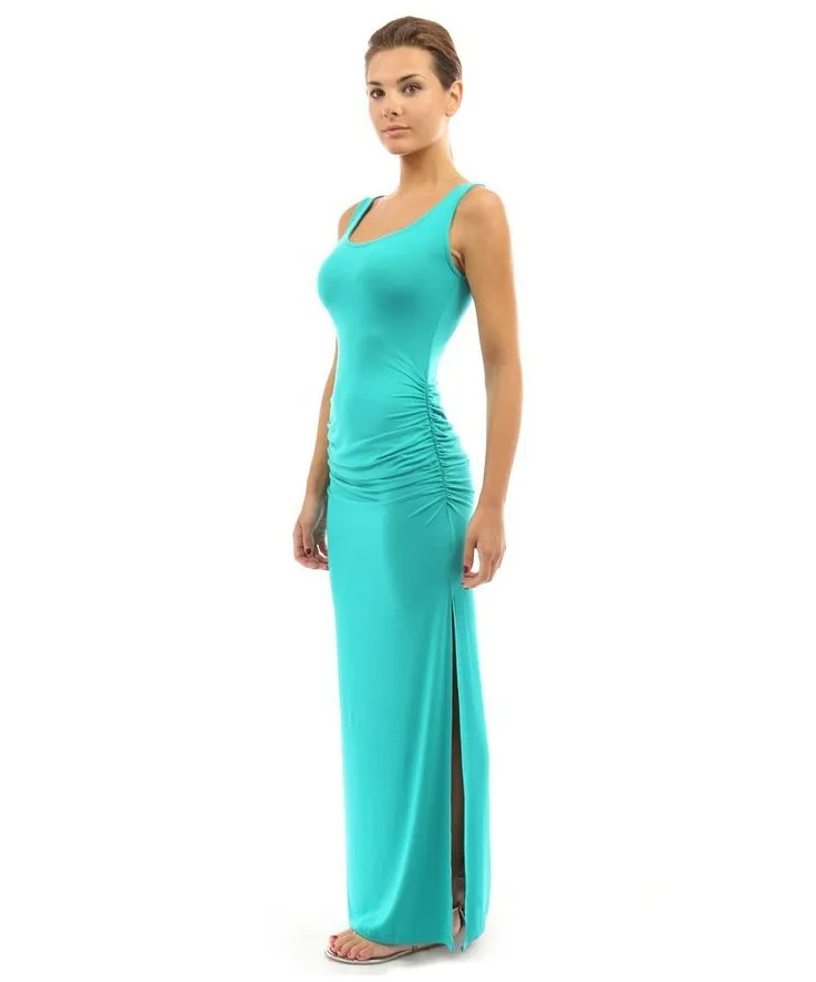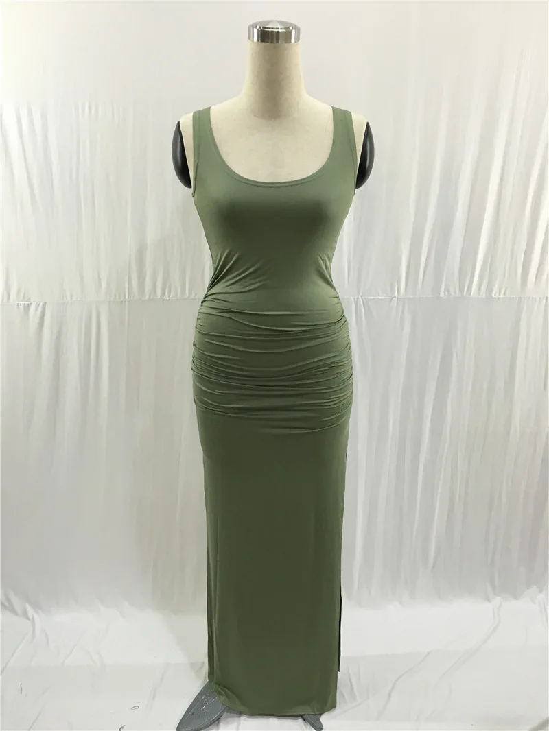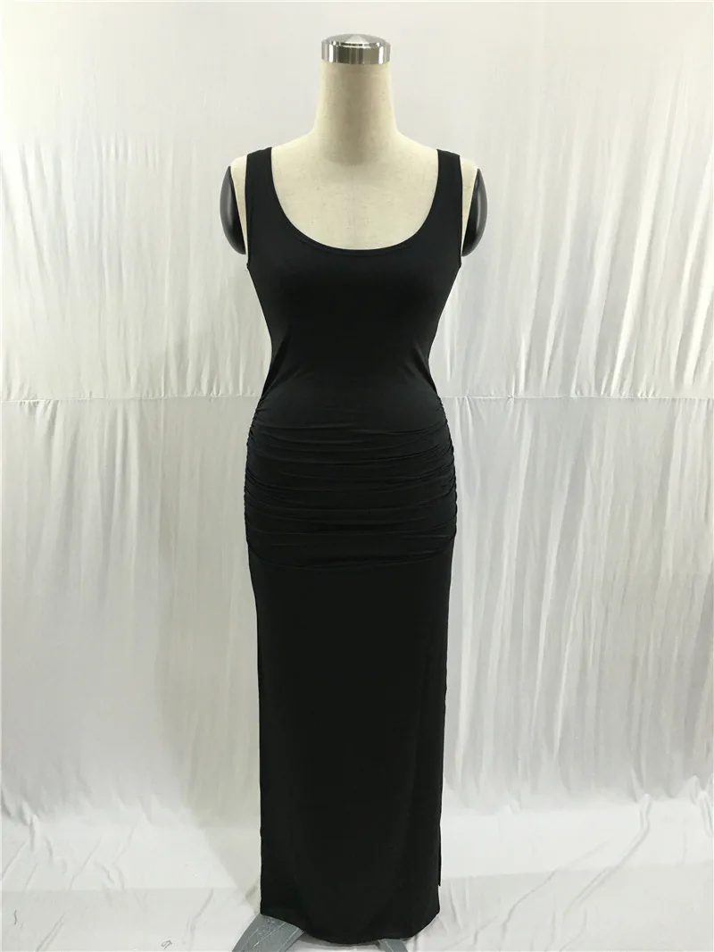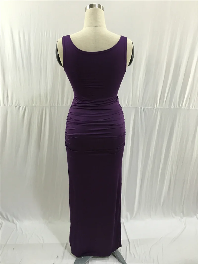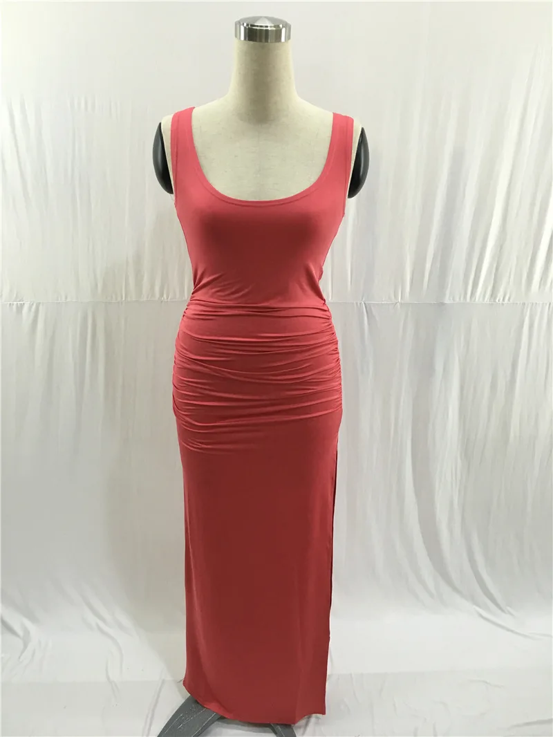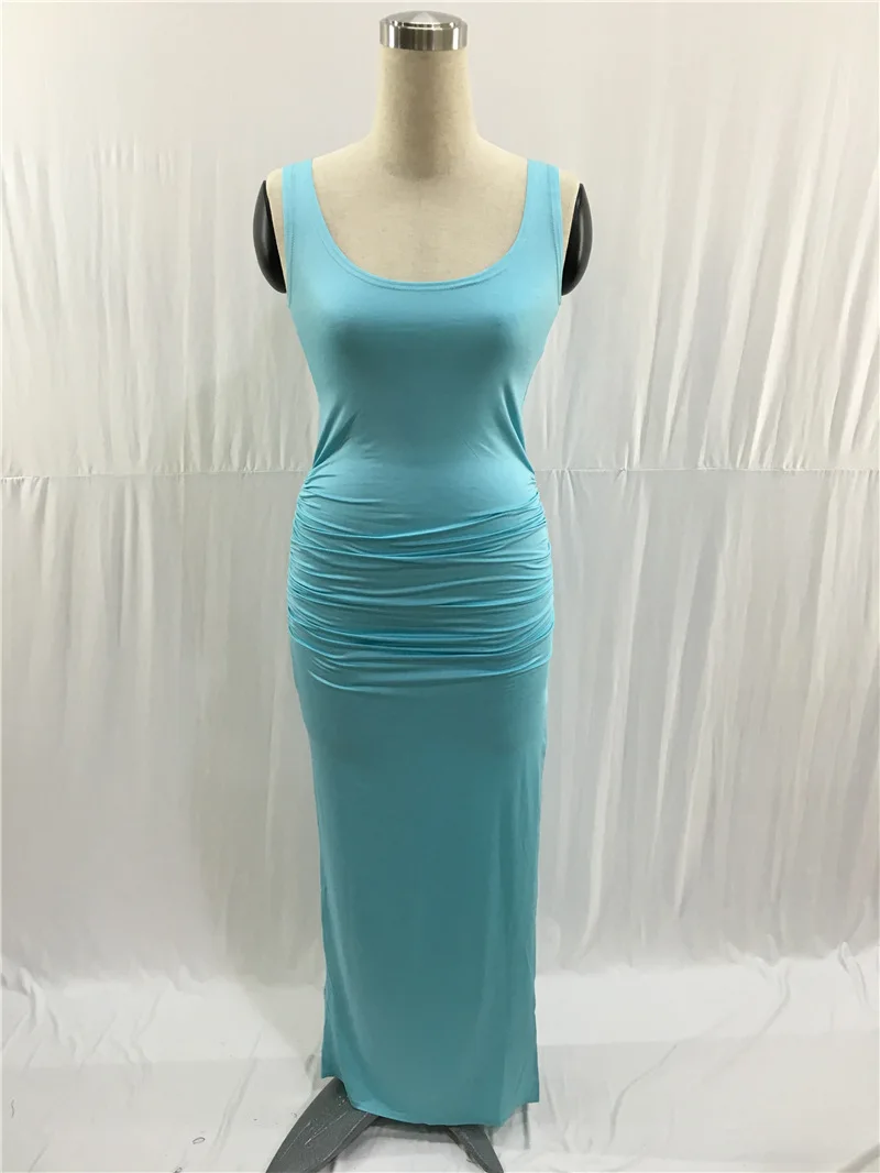 High Stretch Tank Robe Summer 2019 Elegant Women Sexy Dress O-neck Sleeveless Maxi Dress Hem Split Red Blue Long Dress Vestidos