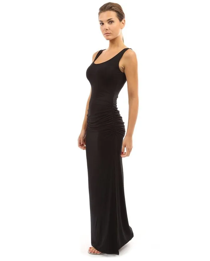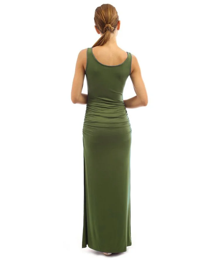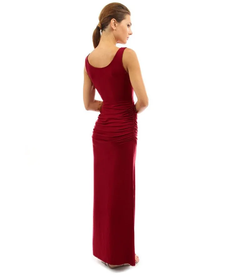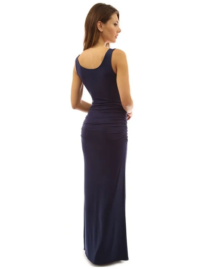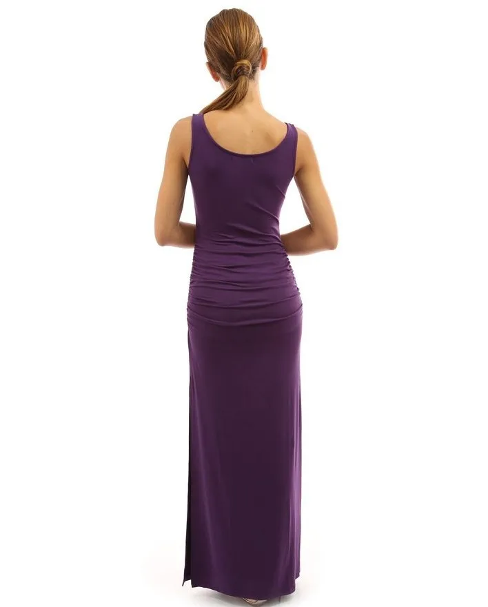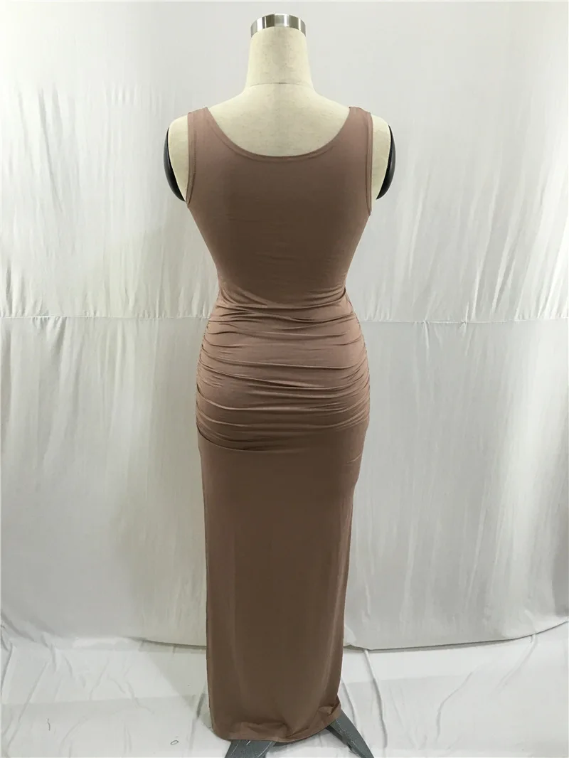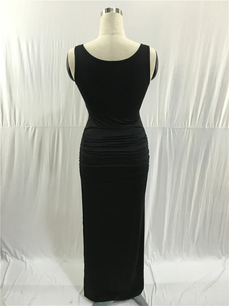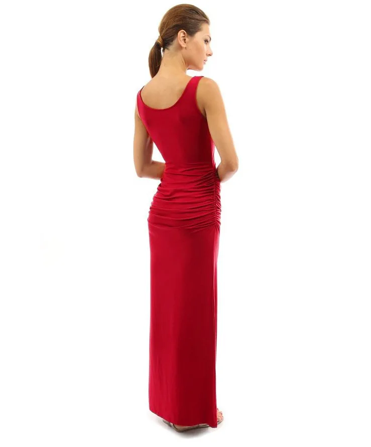 High Stretch Tank Robe Summer 2019 Elegant Women Sexy Dress O-neck Sleeveless Maxi Dress Hem Split Red Blue Long Dress Vestidos