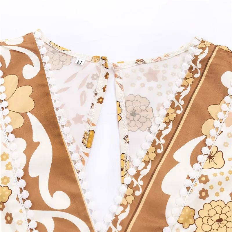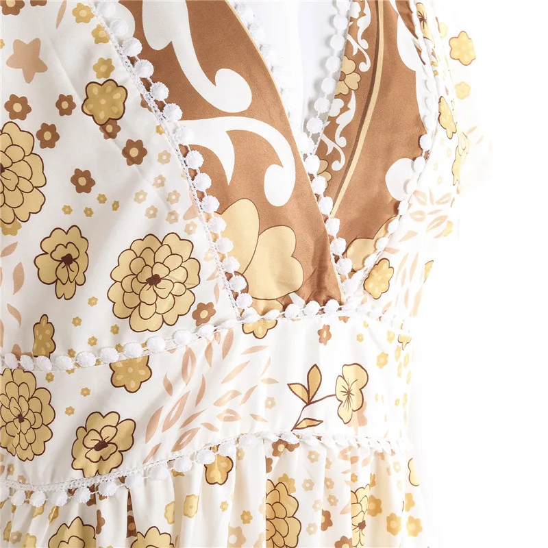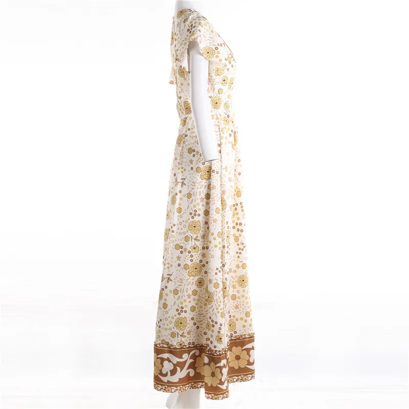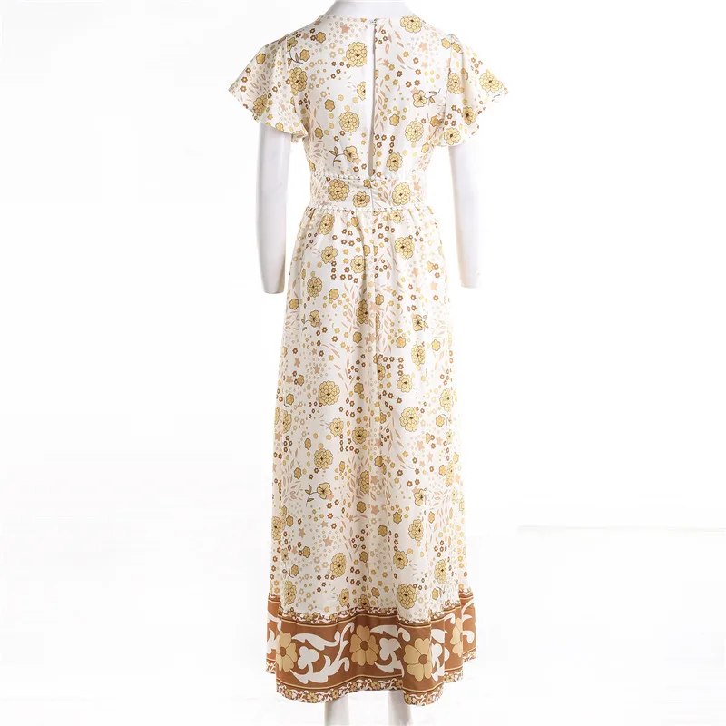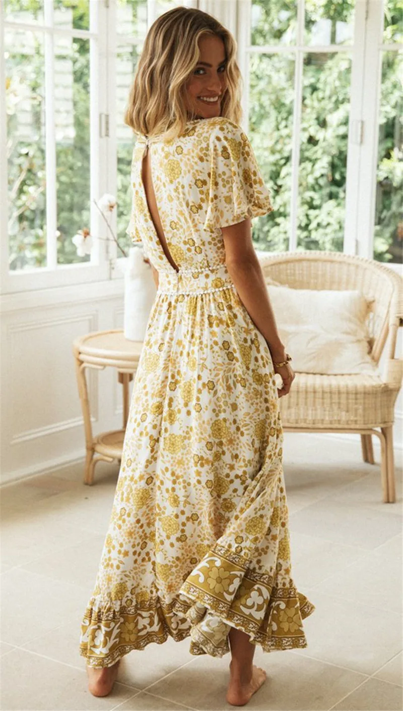 hirigin Dresses Woman Summer Undefined Sexy Beach Holiday Boho Long Dress Print Short Sleeve Deep-V Maix Dress Robe Vestidos