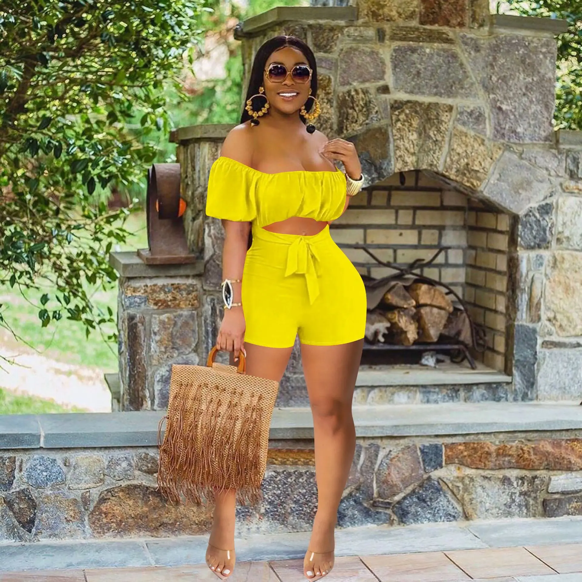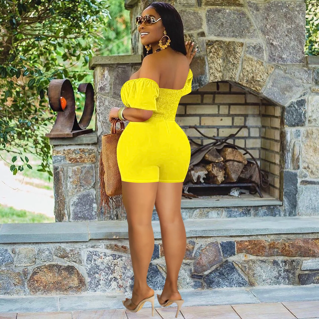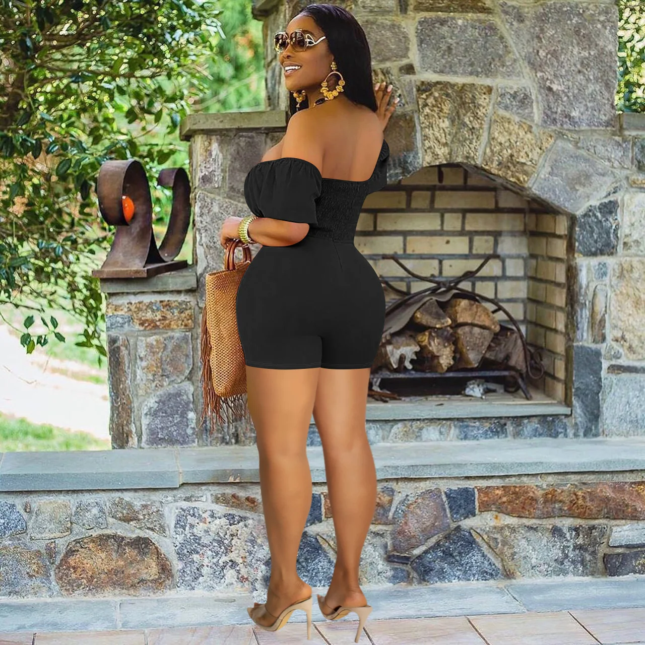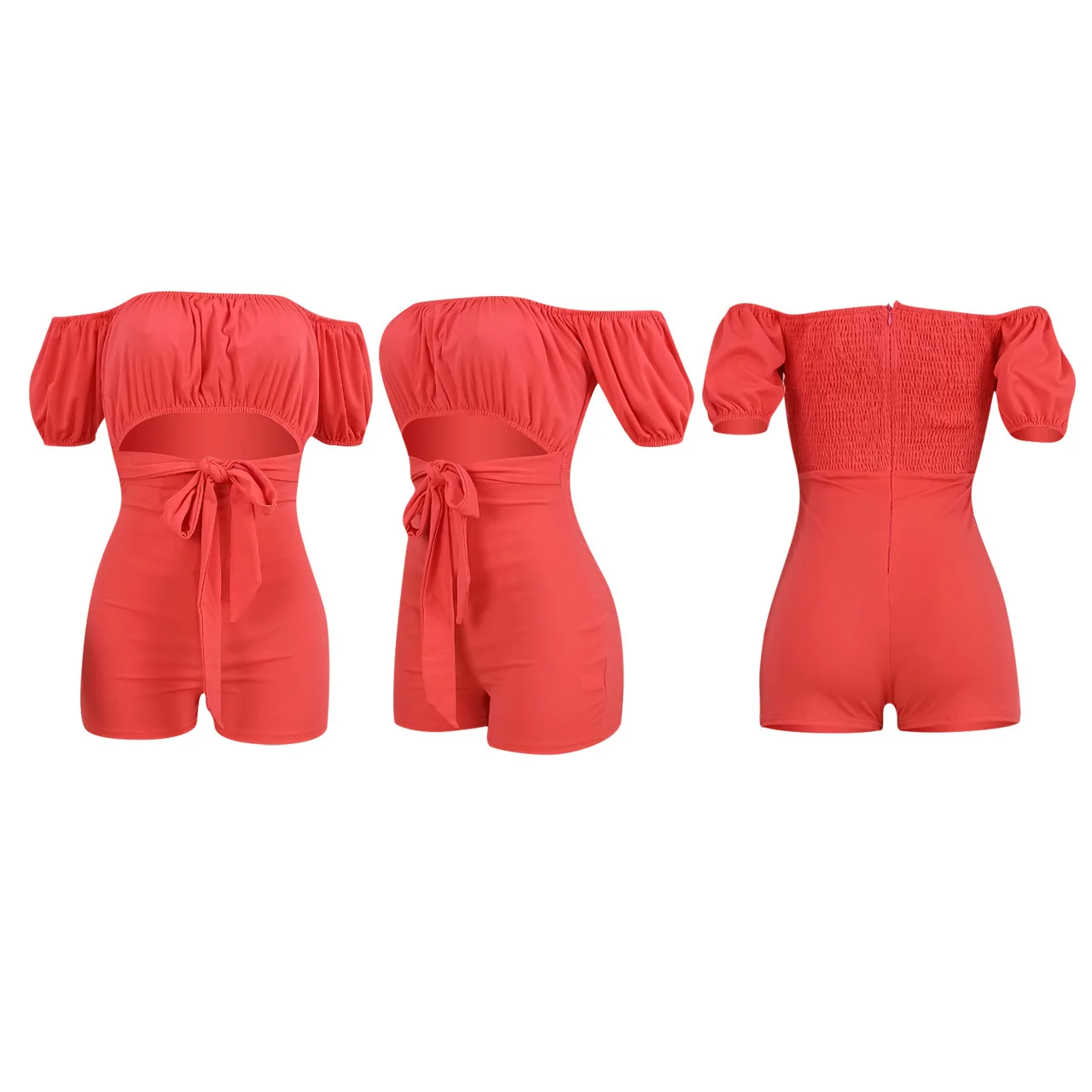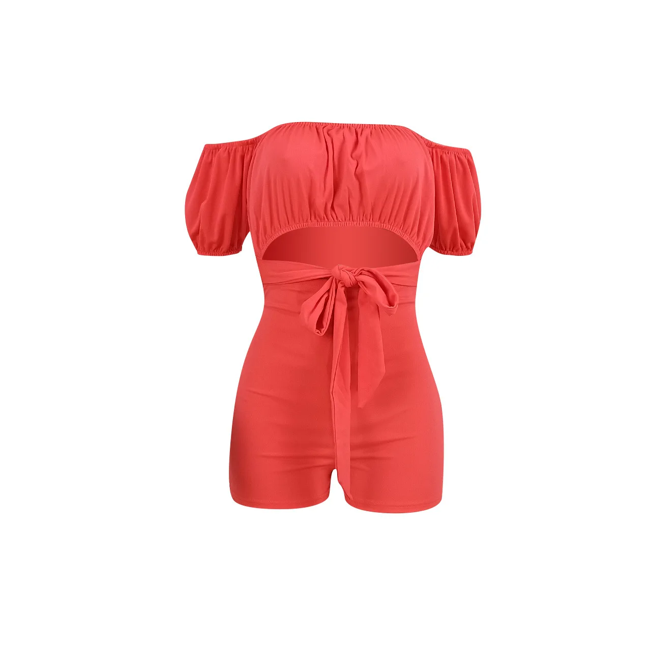 hirigin Waist Band Cut Out Short Rompers Women Jumpsuit Cold Shoulder Short Sleeve Slim Fit Playsuit Lady Backless Beach Outfit