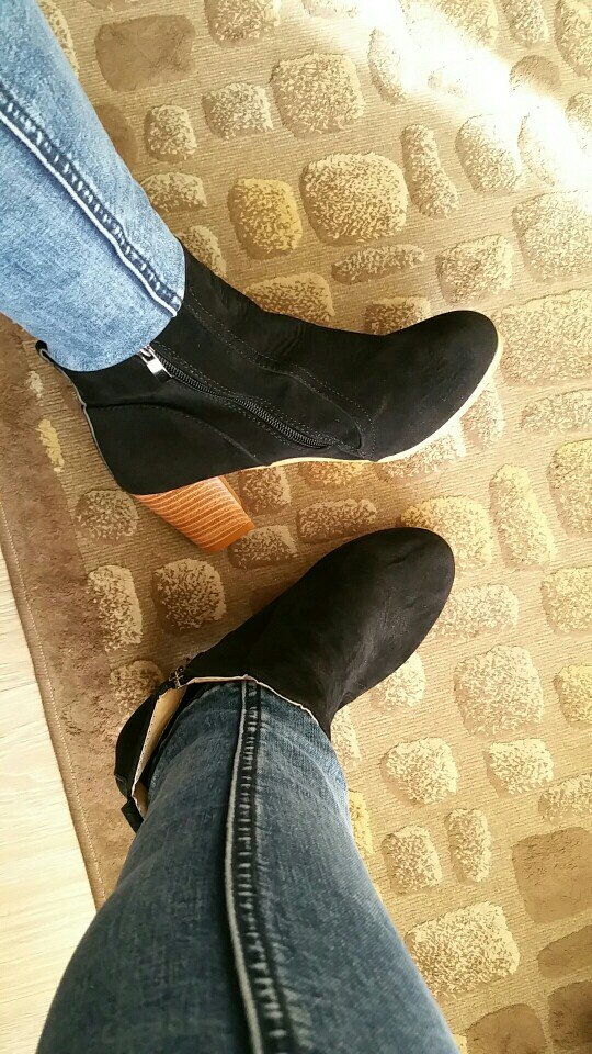 They do not fit the leg as tightly as in the photo. The upper part is very wide even for my leg (they are not thin). Upper material for Suede, I think, with it it is necessary to be very neat. Legs in them are convenient, but "breathe" with difficulty, will sweat.
