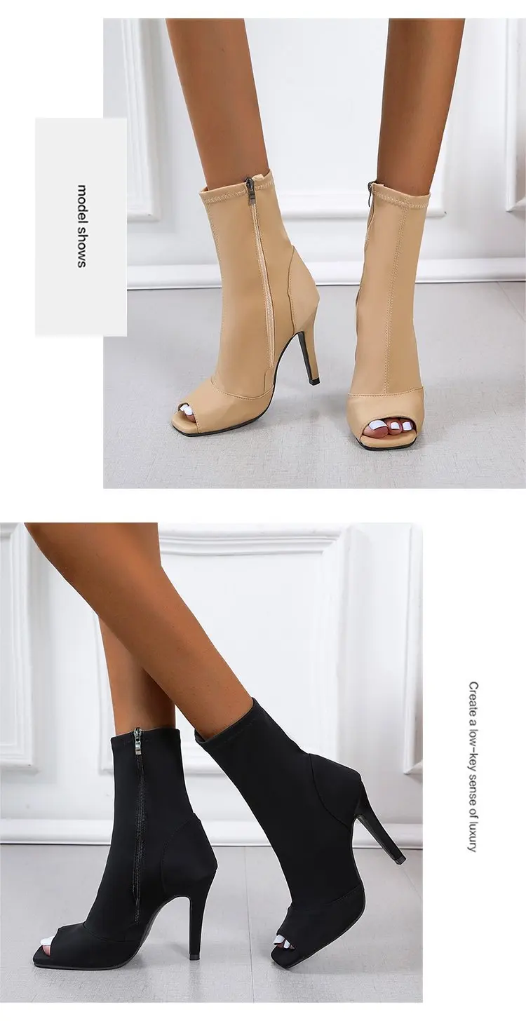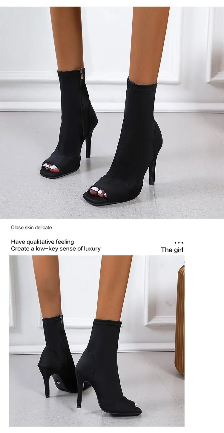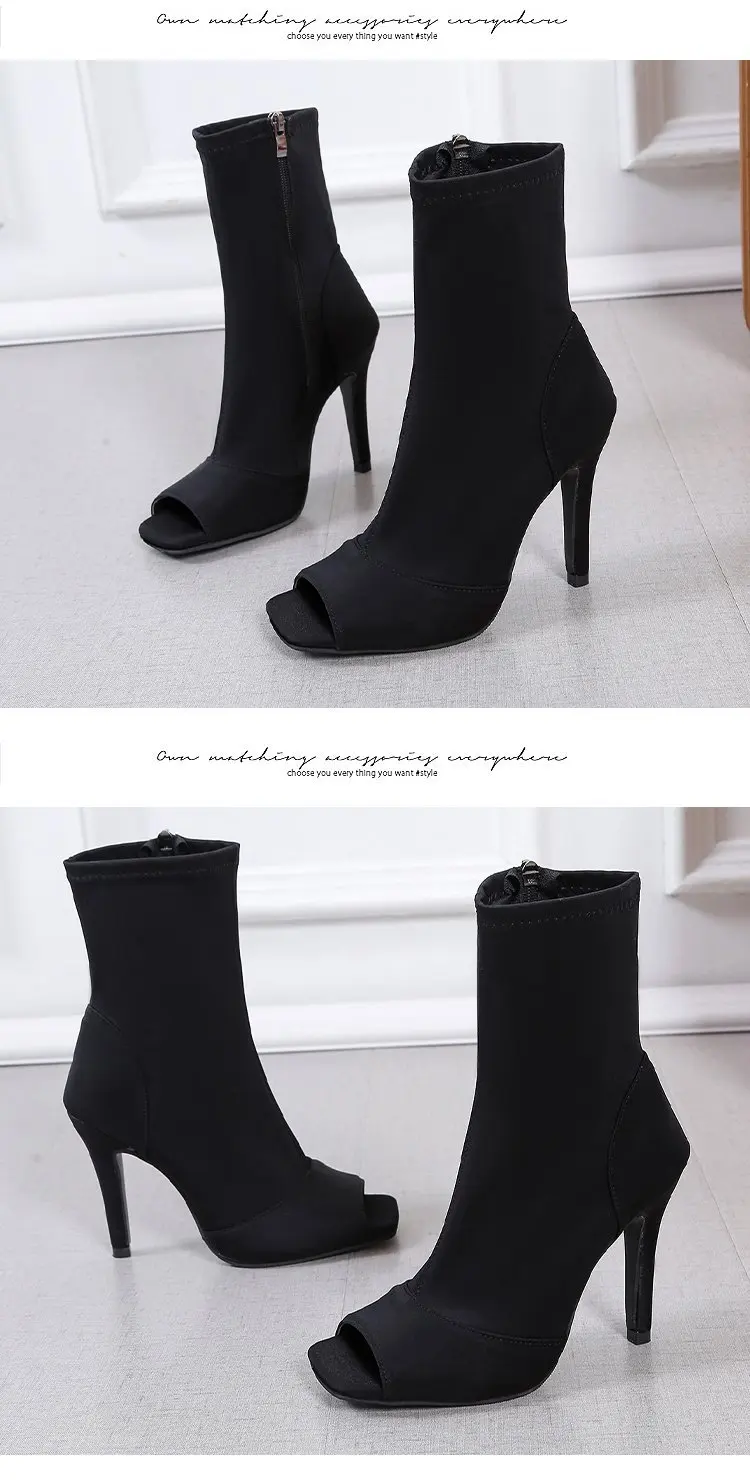 Hot Selling Outdoor Indoor Plus Size Latin Dance Shoes for Dancing Women Teachers High Heels Nylon Boots Black