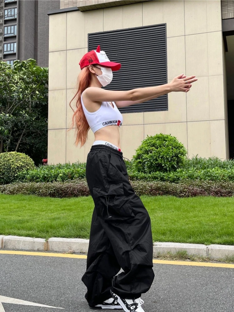 HOUZHOU Y2K Parachute Pants Women Hippie Streetwear Oversize Pockets Cargo Trousers Harajuku Techwear Wide Pantalone Egirl Style