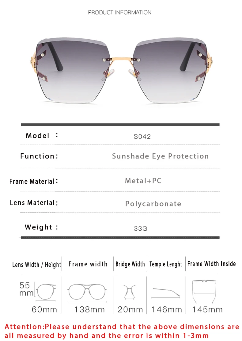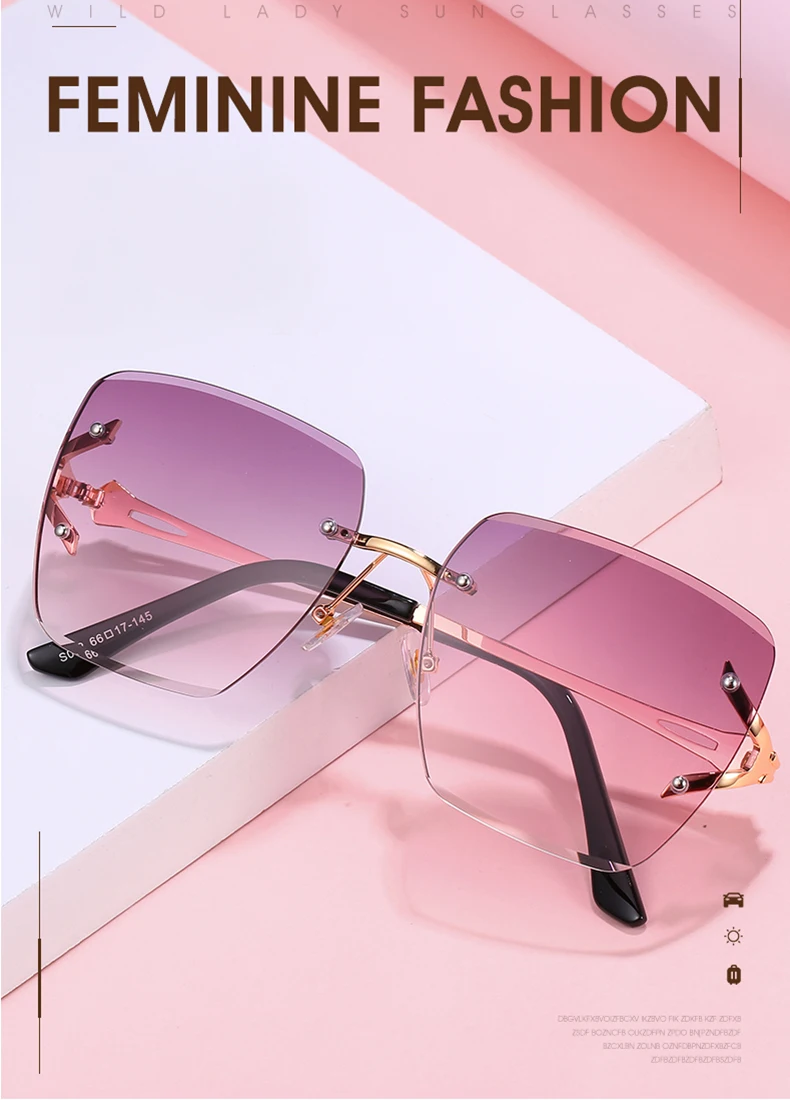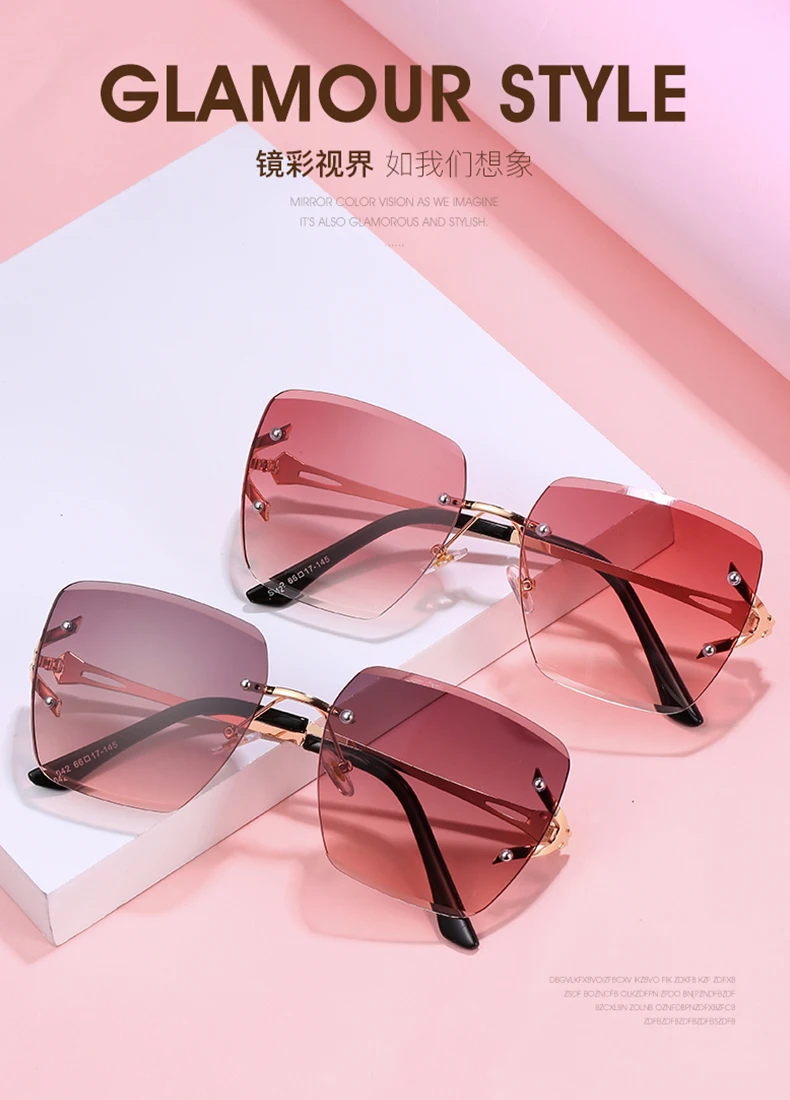 Rimless Brand Designer Sunglasses Women Fashion Luxury Sunshade Decoration