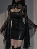 InsGoth Gothic Punk Balck Faux Leather 2Pcs Dress Vintage Flare Sleeve Crop Tops Women Sexy Backless Bodycon Nightclub Dresses