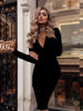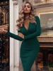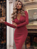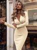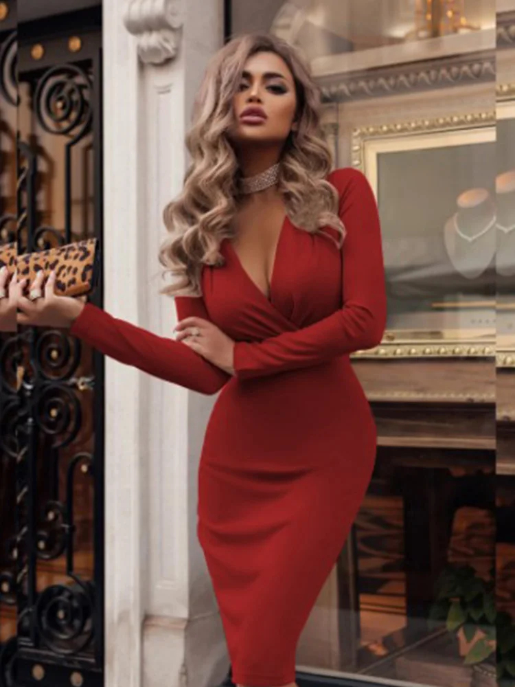 InstaHot Knitted Women V Neck Midi Dress Long Sleeve Autumn Bodycon Sexy Fashion Elegant Office Lady Party Female Clothing 2021