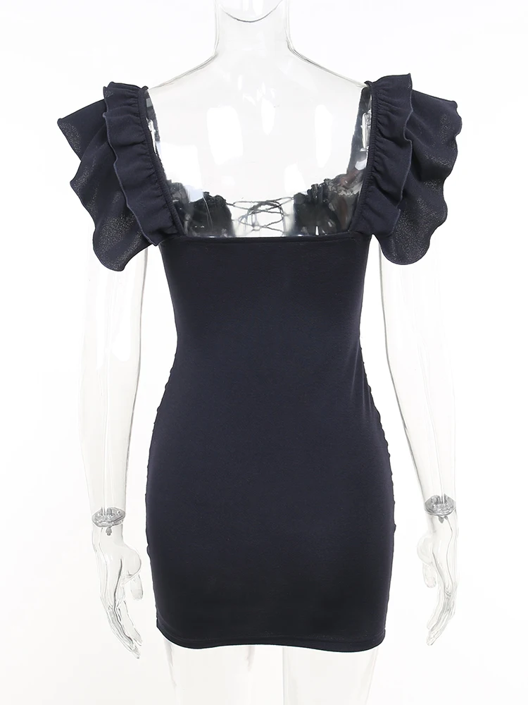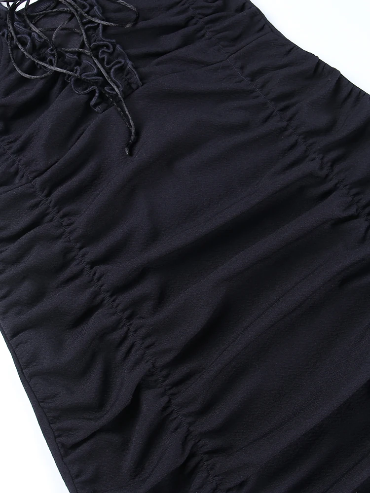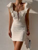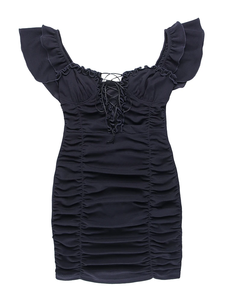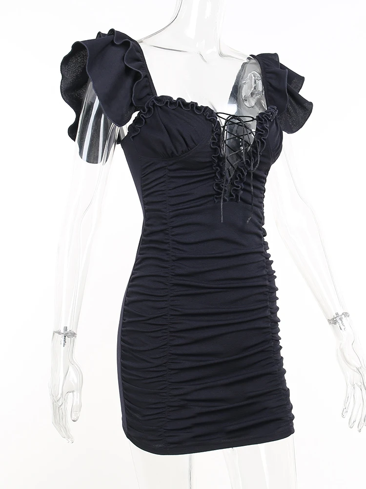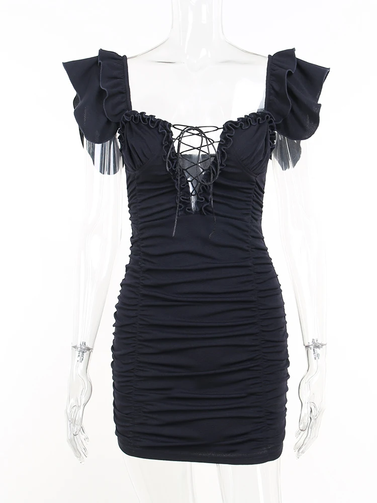 InstaHot Lace Up Women Mini Dress Hollow Out Ruched V Neck Summer Bodycon Sexy Party Club Wedding Casual Clothing 2022 Trends