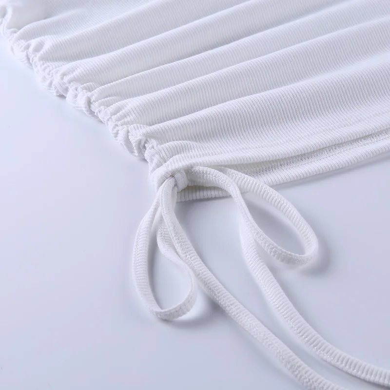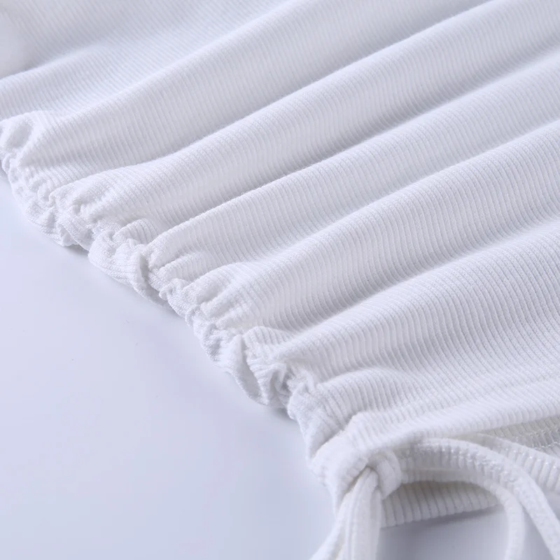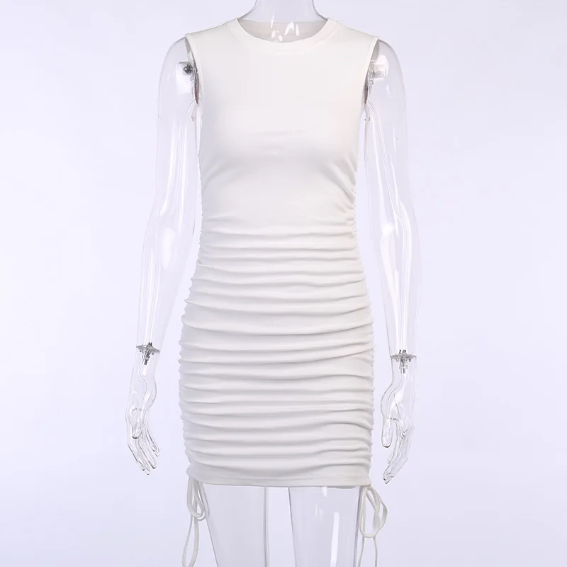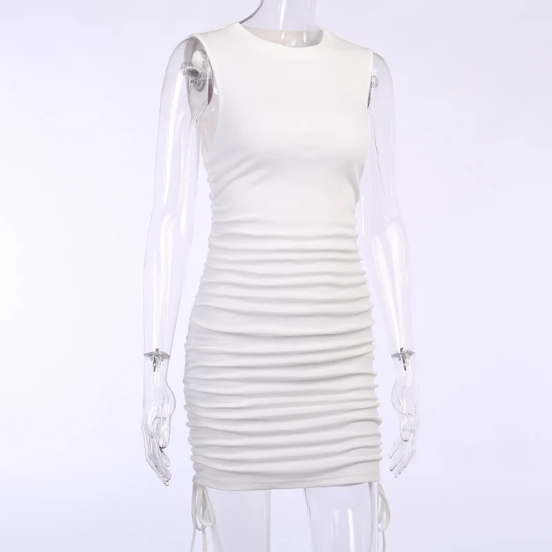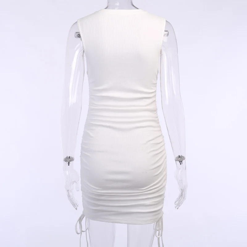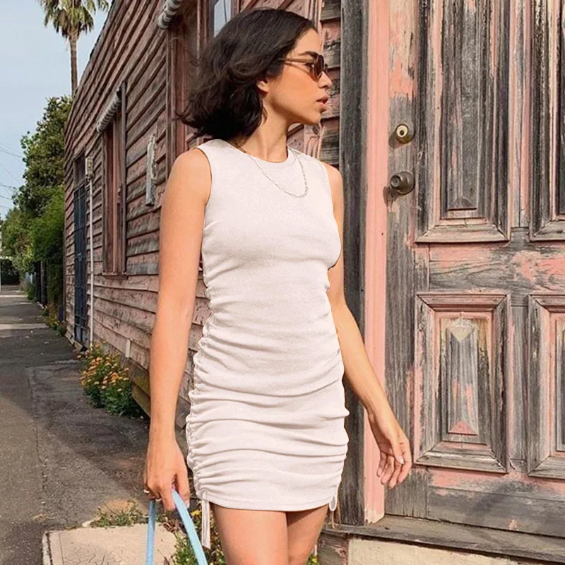 InstaHot Rib Knit Tank Dress Sleeveless Summer Female Drawstring Side Elegant Casual Party Bodycon Slim Mini Dresses Women 2020