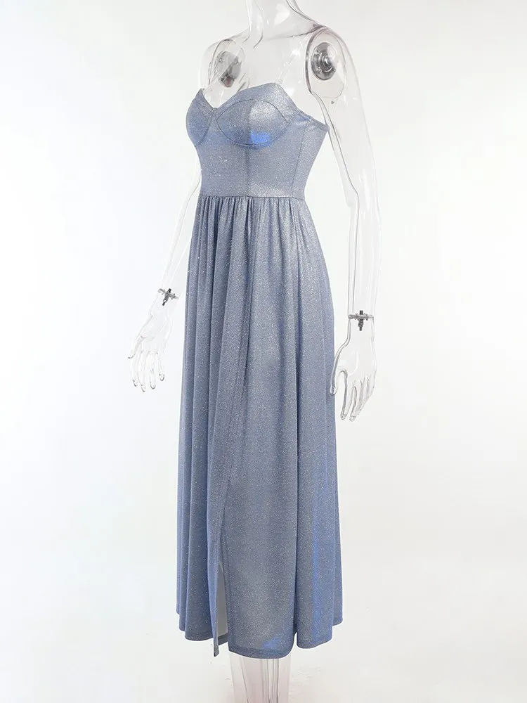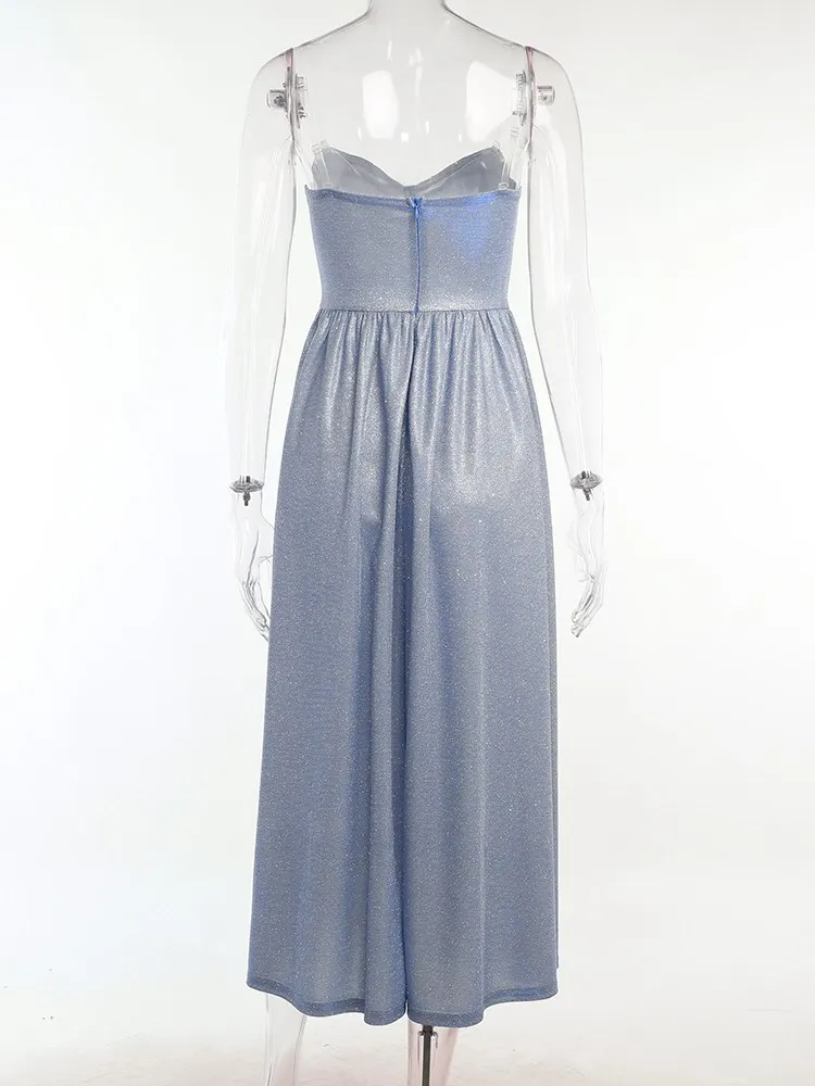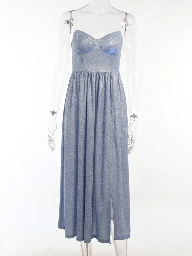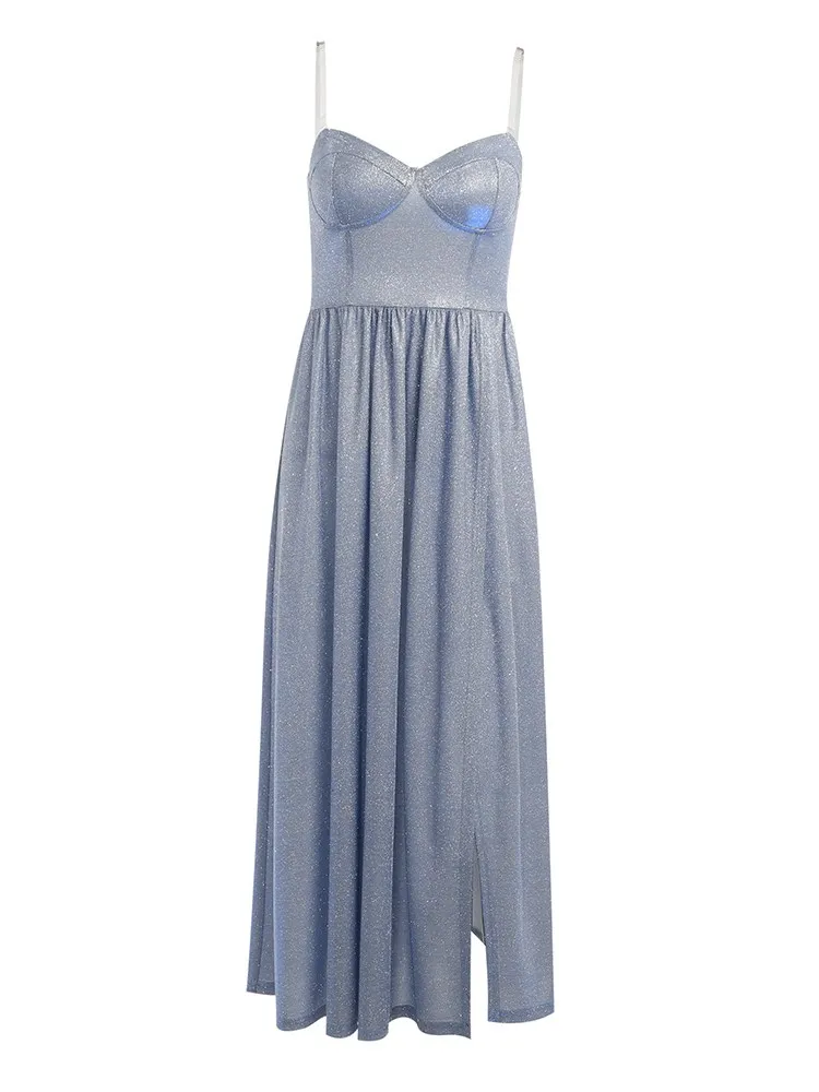 InstaHot Sequin Women Cami Mini Dress Pleated Backless Slit Summer Bodycon Sexy Elegant Party Prom Club Fashion Clothing 2022