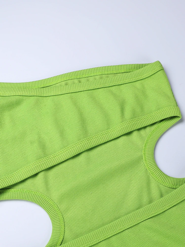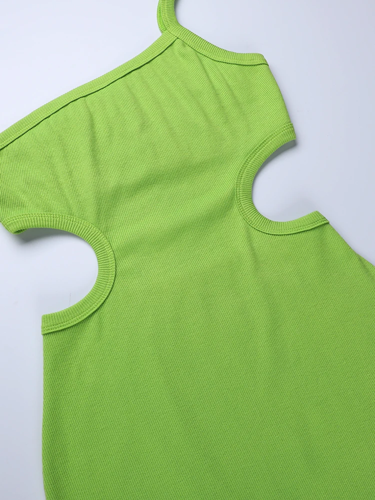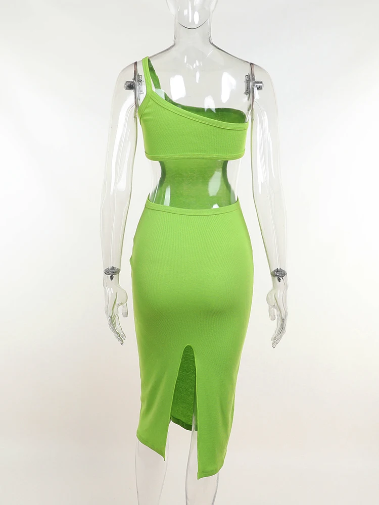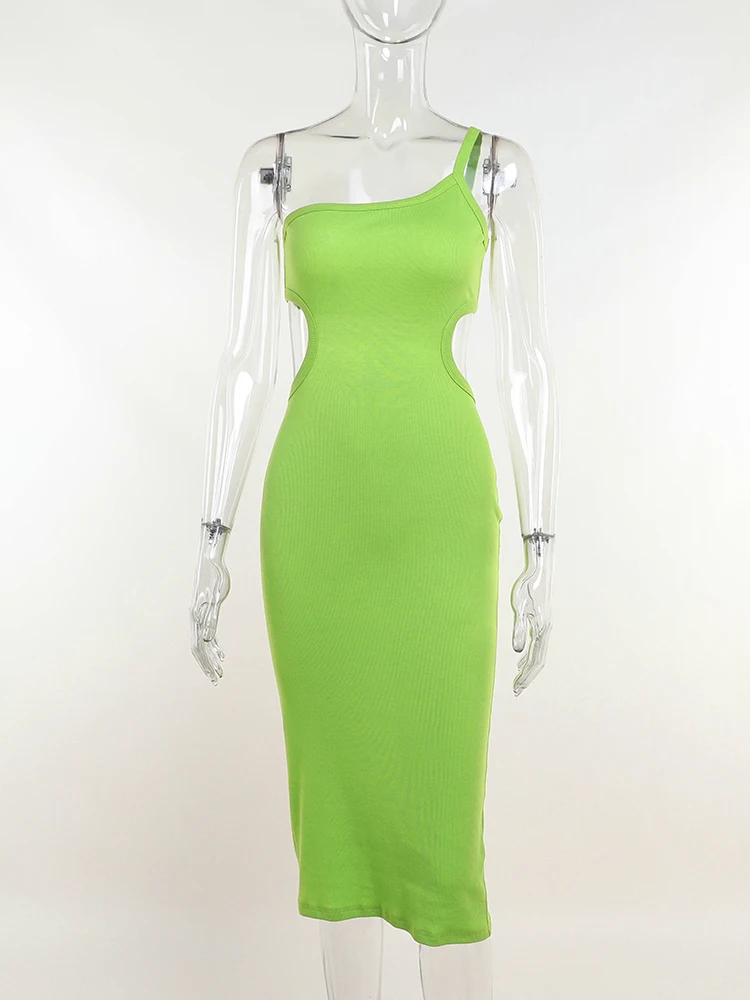 InstaHot Sexy Cut Out Knit Midi Dress For Women Backless One Strap Bodycon Dresses Summer Casual Green Party Club Beach Outfits