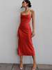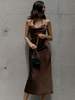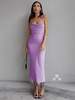 InstaHot Stain Pile Collar Lace Up Dress Vintage Casual Party Solid Backless Slim 2021 Summer Elegant Sleeveless Straps Dress