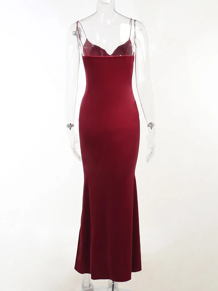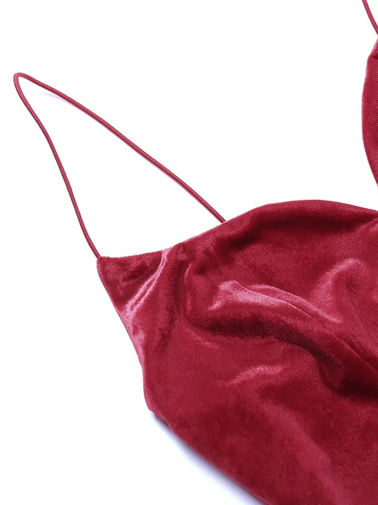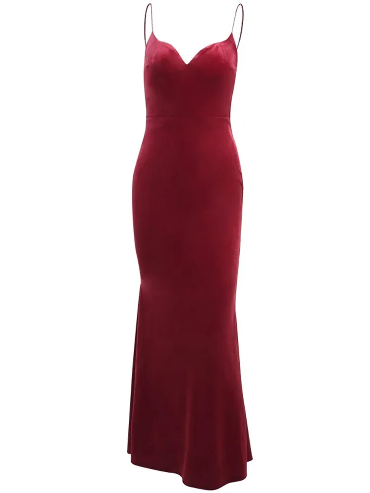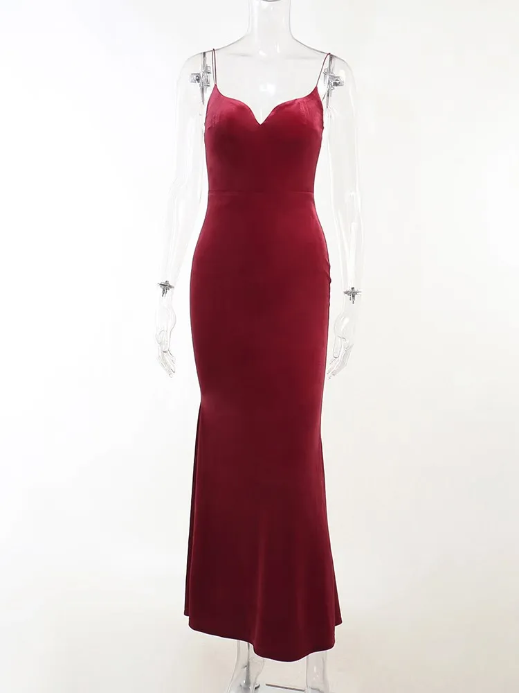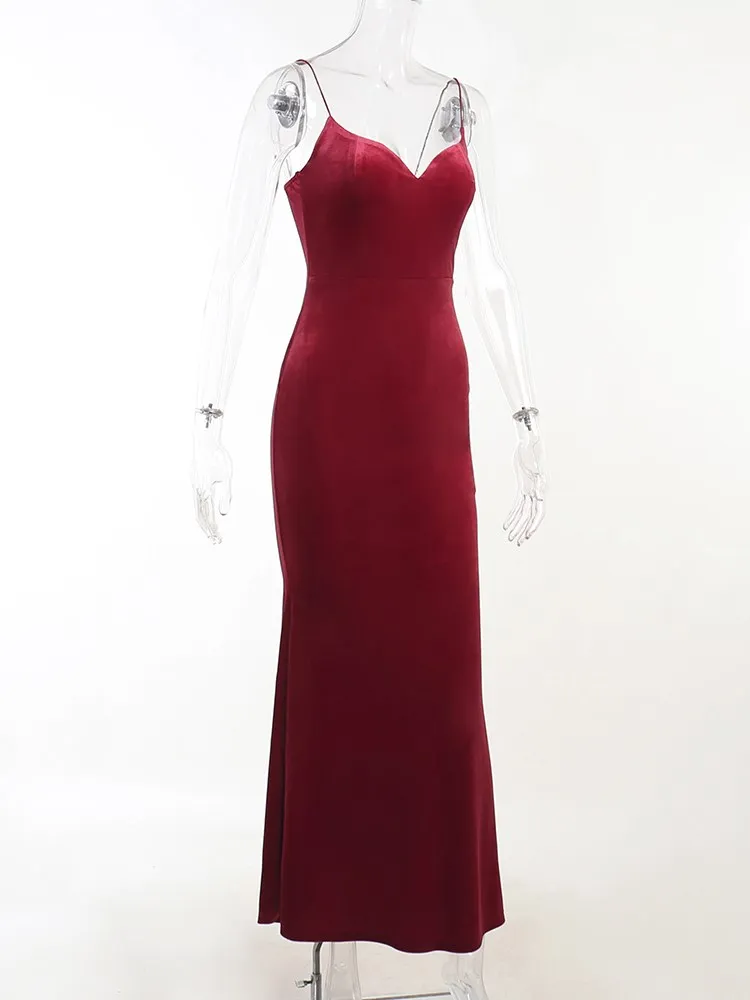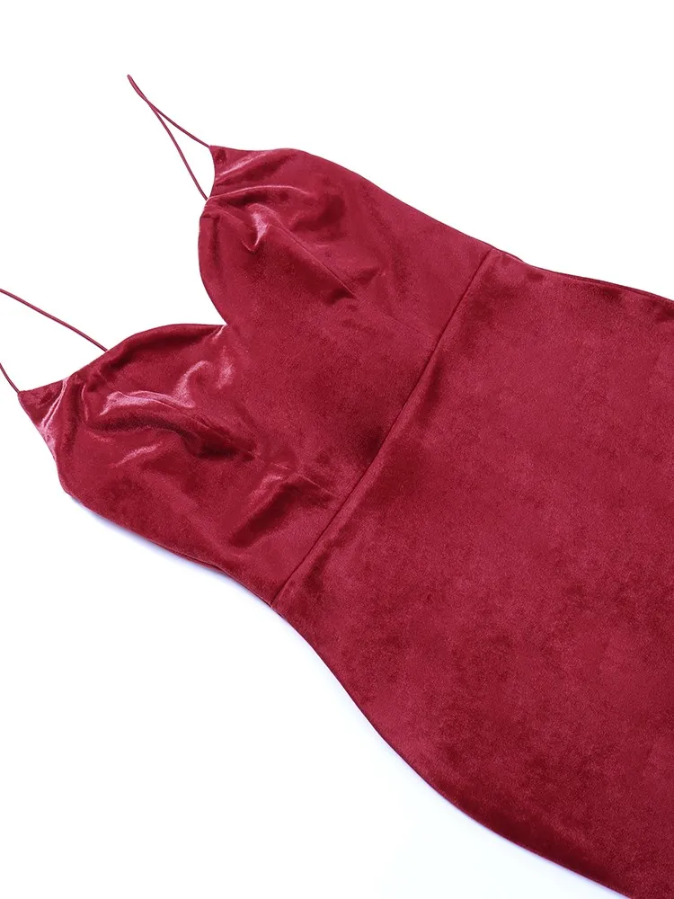 InstaHot Velvet Elegant Women's Dress Backless V Neck Spaghetti Strap Evening Gala Dresses Nightclub Party Aesthetic Sleeveless