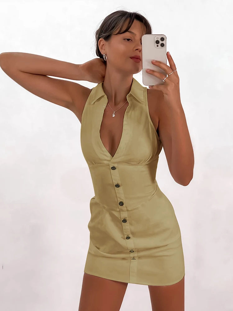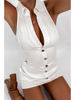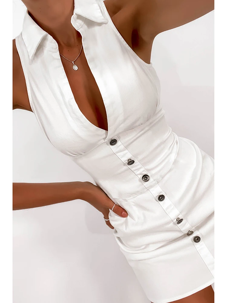 InstaHot White Cotton Women Shirt Mini Dress V Neck Folds Sleeveless Summer Bodycon Sexy Casual Office Lady Chic Clothing 2022