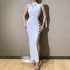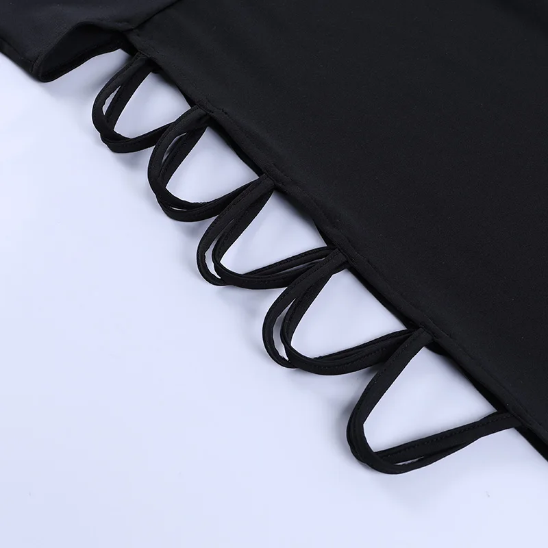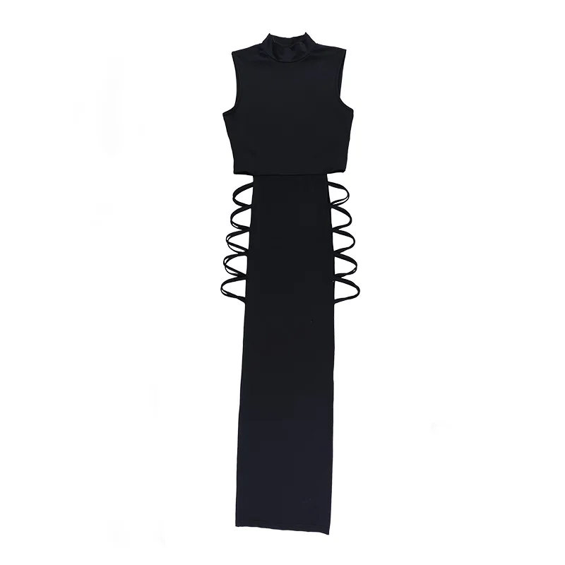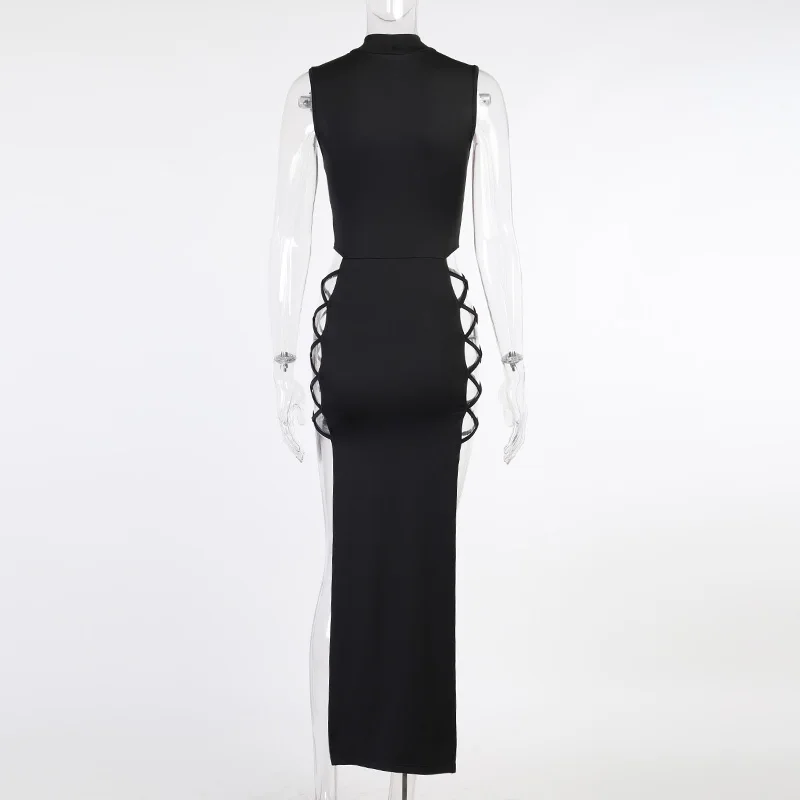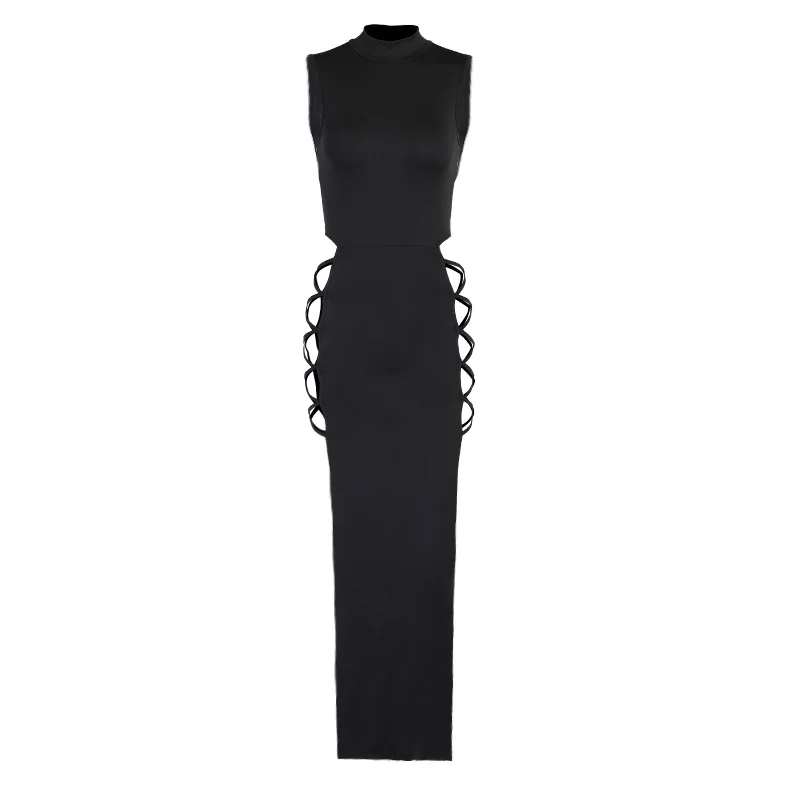 InstaHot Women Hollow Out Bandage Casual Sexy Dress Sleeveless Solid Splitted Vintage Summer 2021 Bodycon Streetwear Party Dress