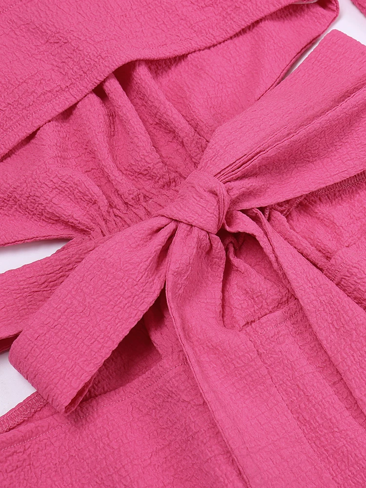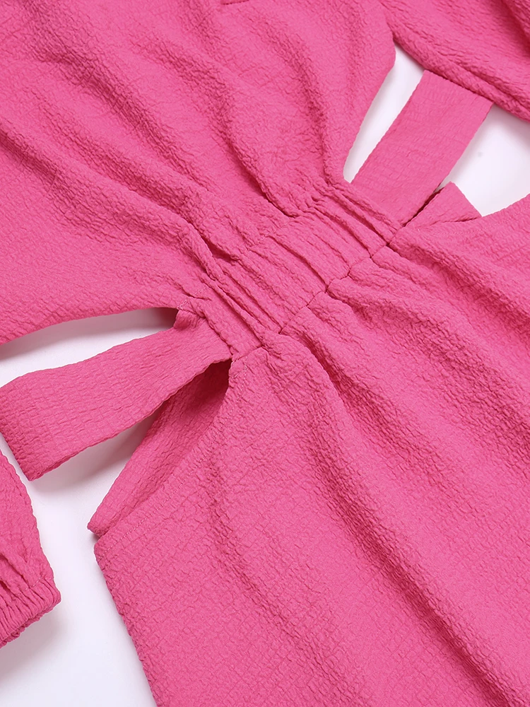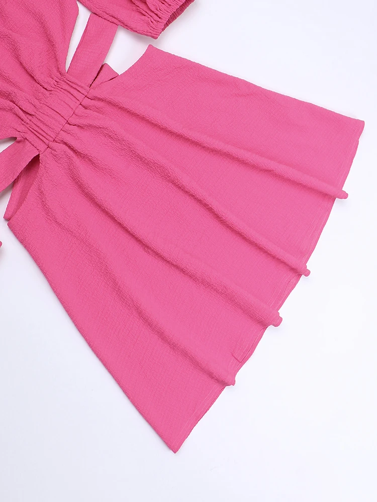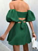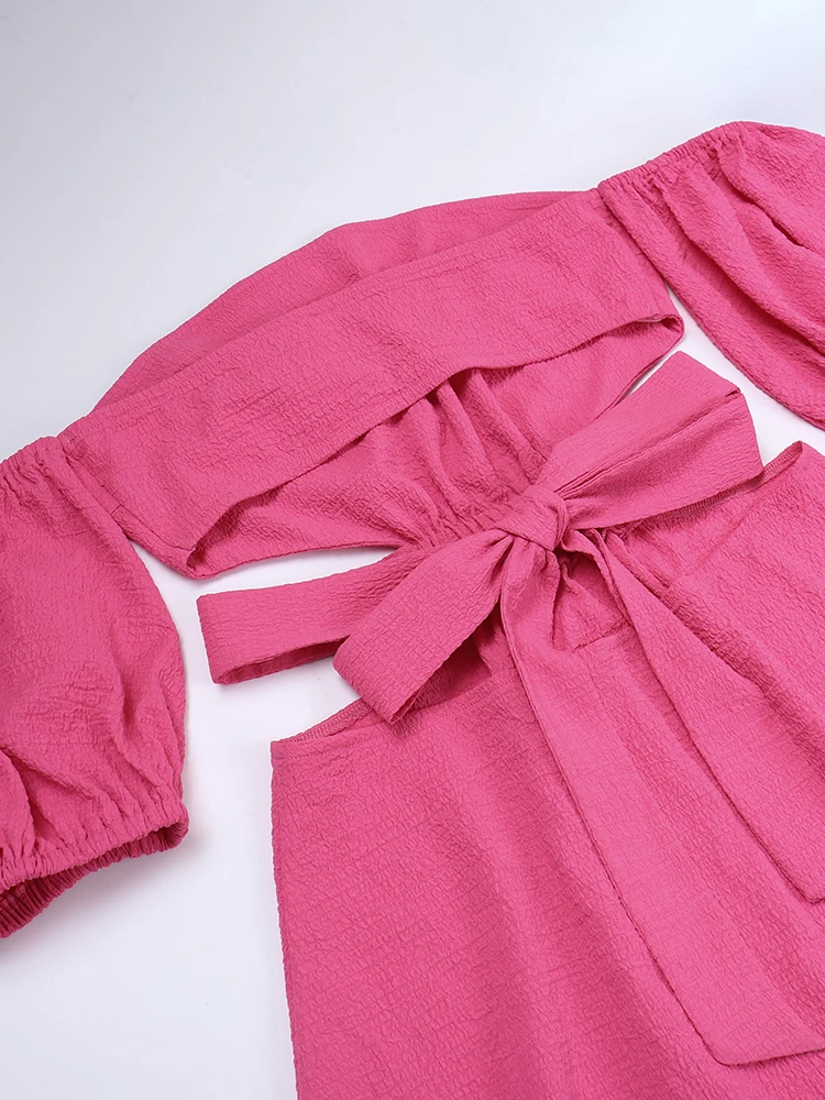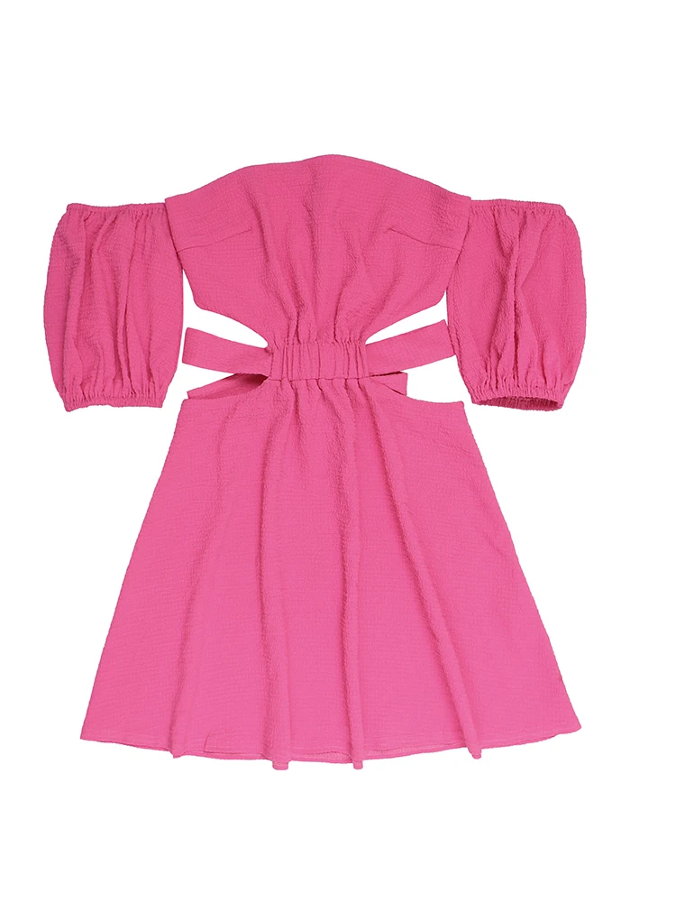 InstaHot Women Off The Shoulder Mini Dress Puff Sleeve Hollow Out Summer Lace Up Bodycon Sexy Elegant Party Night Chic Clothes