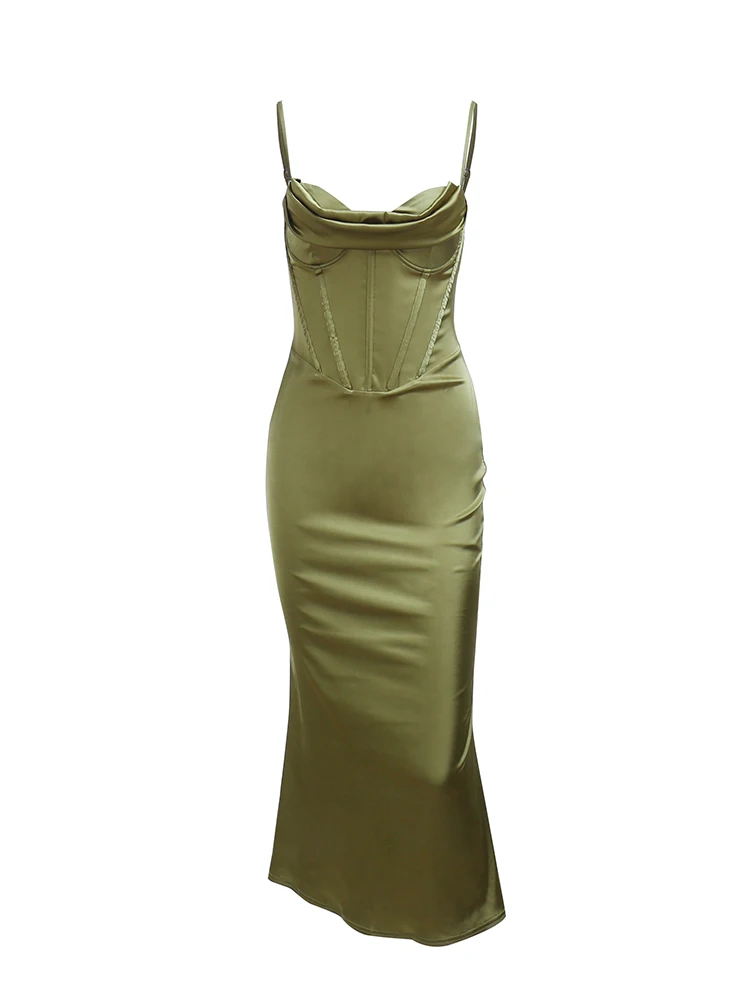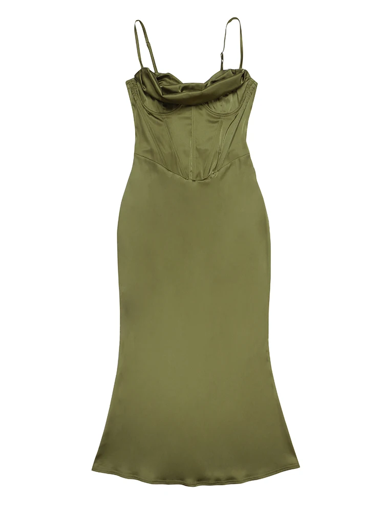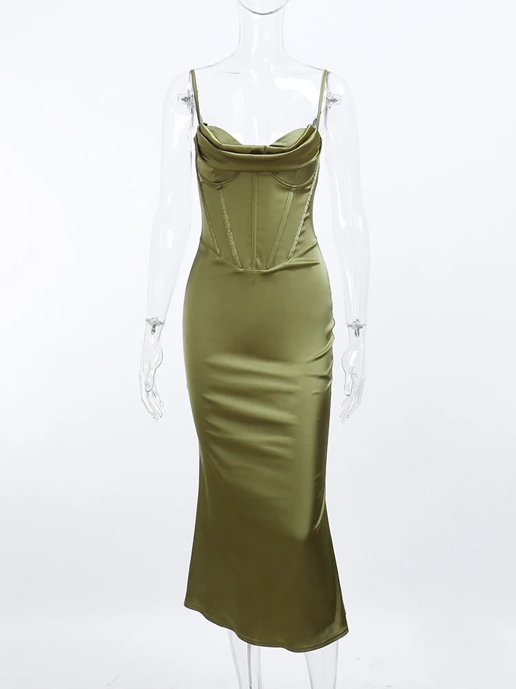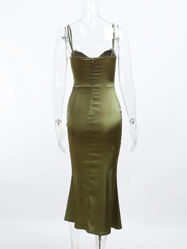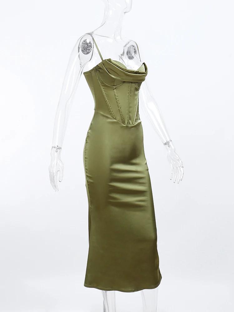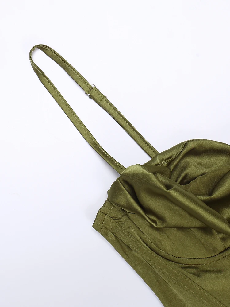 InstaHot Y2K Satin Cami Women Midi Dress Folds Sleeveless Summer Skinny Sexy Streetwear Party Fashion Solid Female Clothing 2022