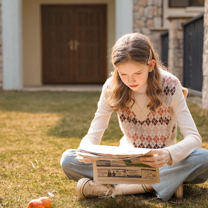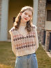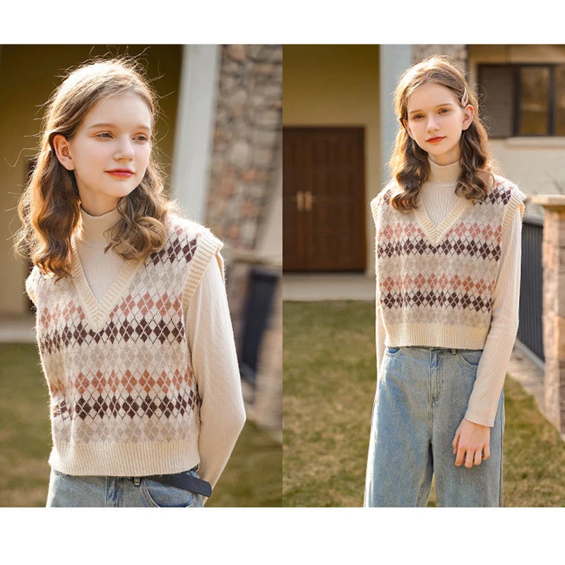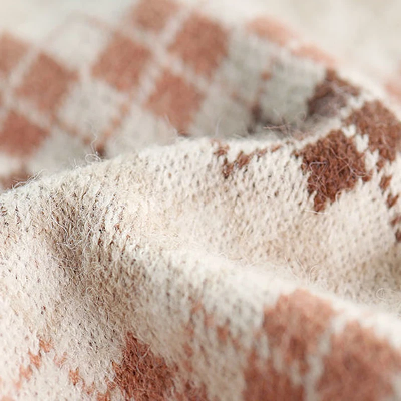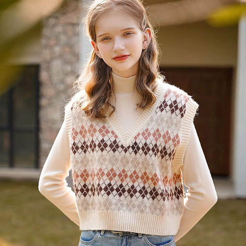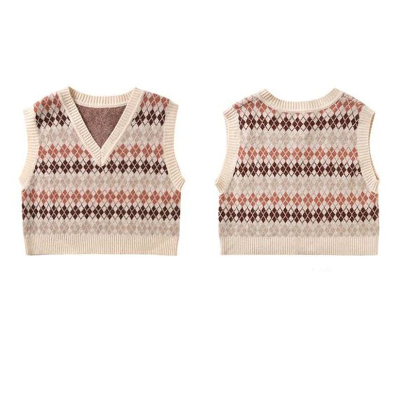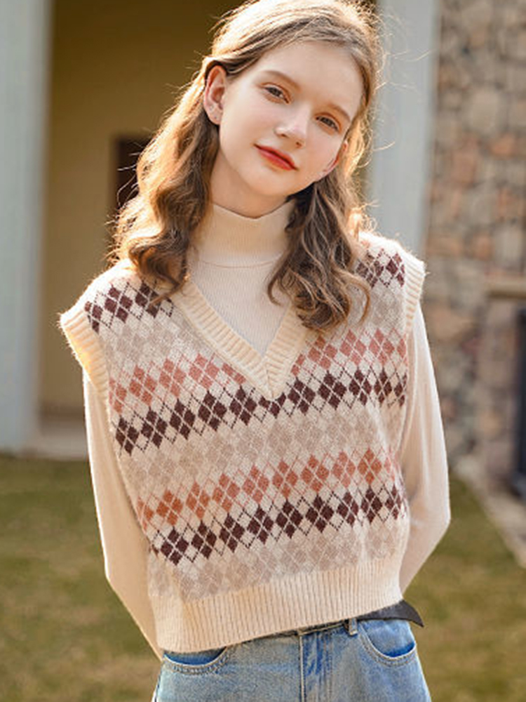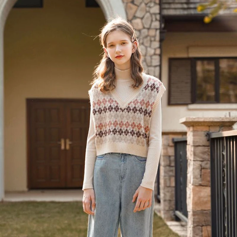 JMPRS Argyle Women Vest Sweater V Neck Fashion Knitted Plaid Jumper Pullover Fall Preppy Style Student Casual Sleeveless Tops