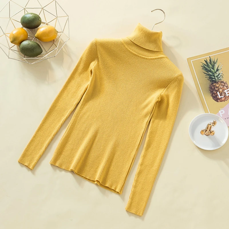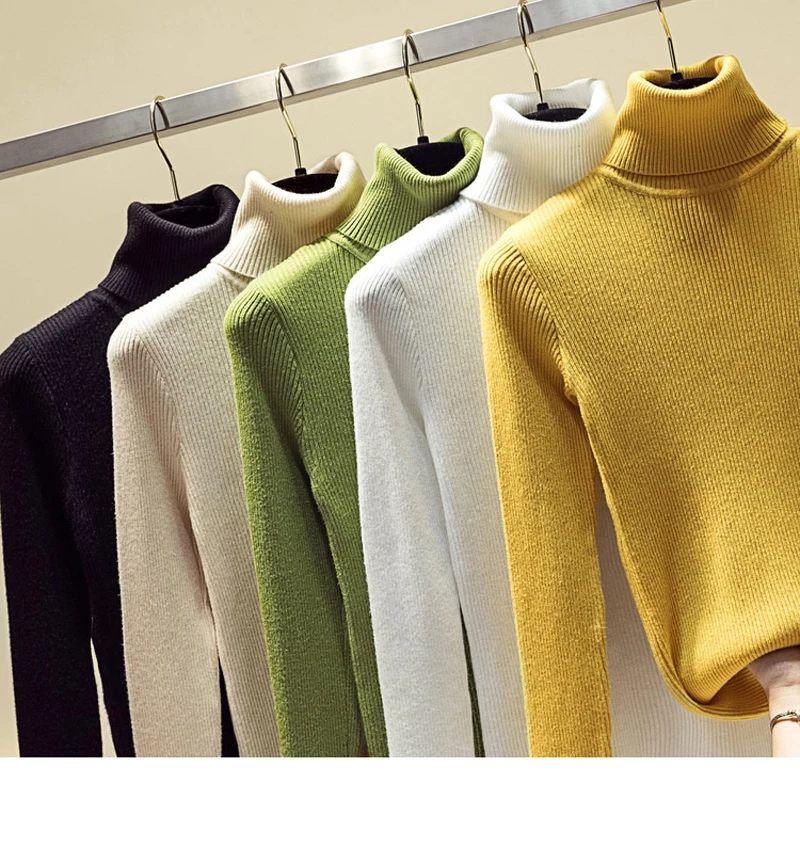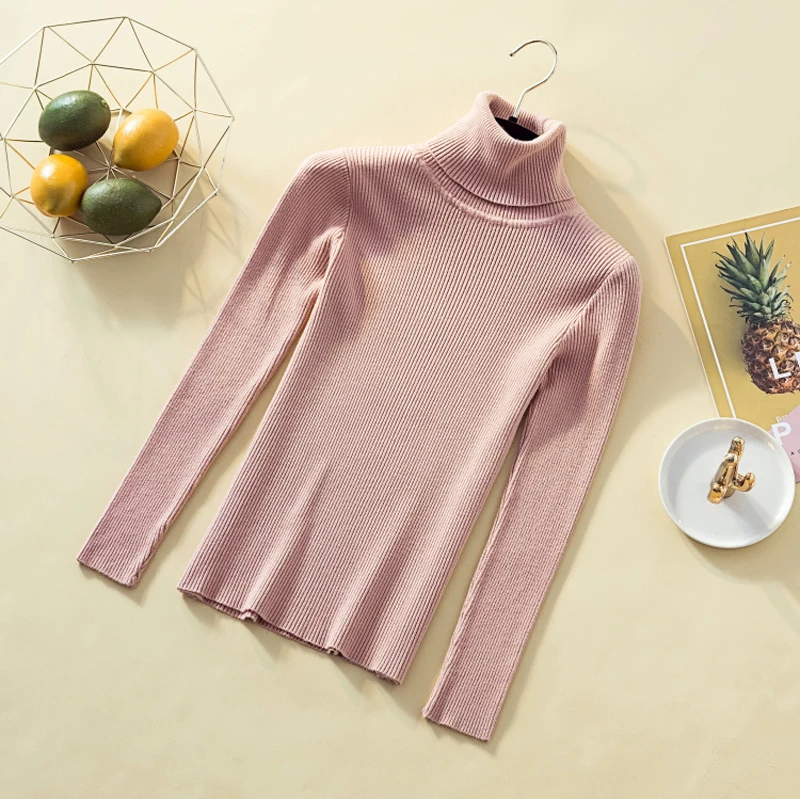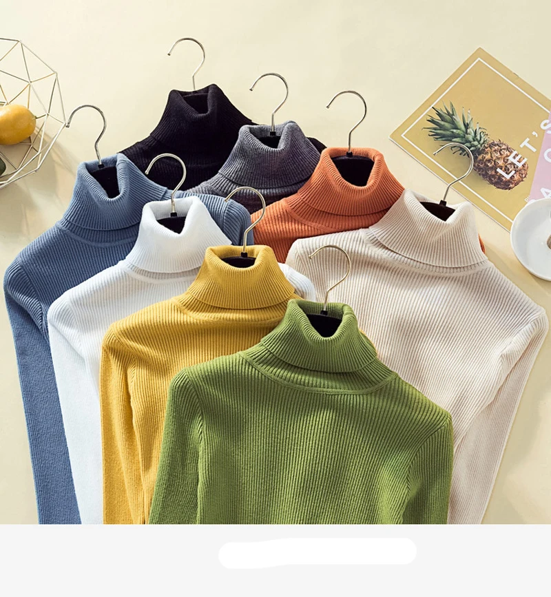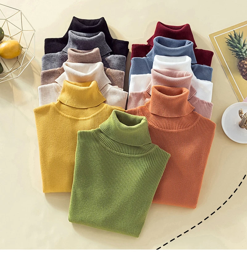 JMPRS Fashion Turtleneck Pullover Sweater Long Sleeve Winter Basic Jumper Knit Top Casual Soft Solid Slim Korean Sweater