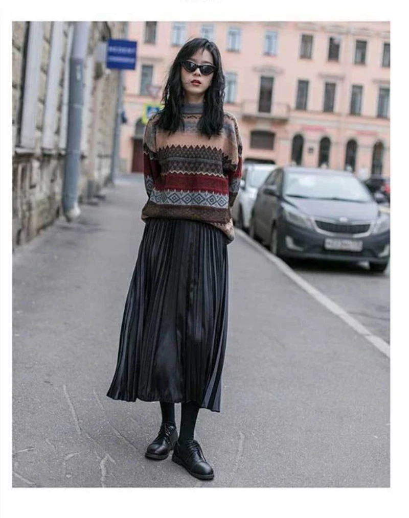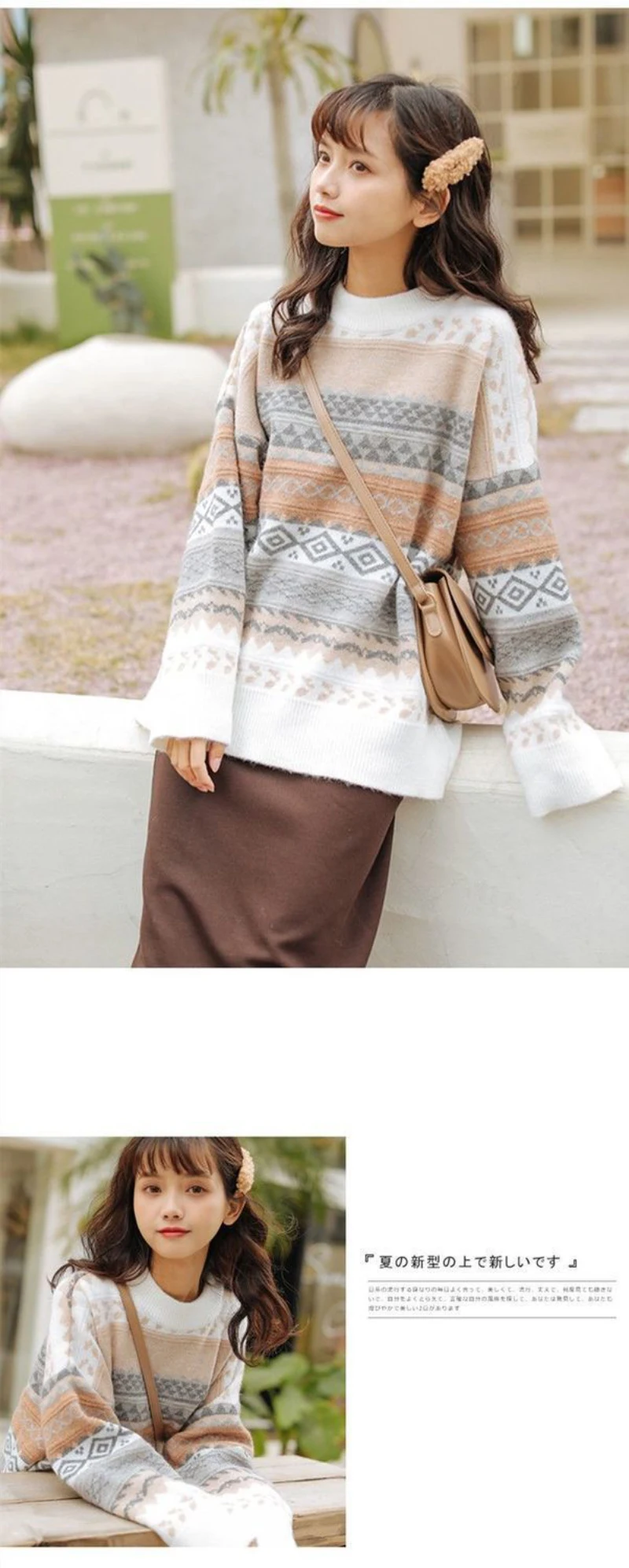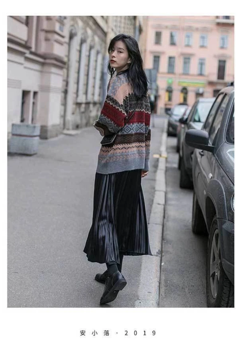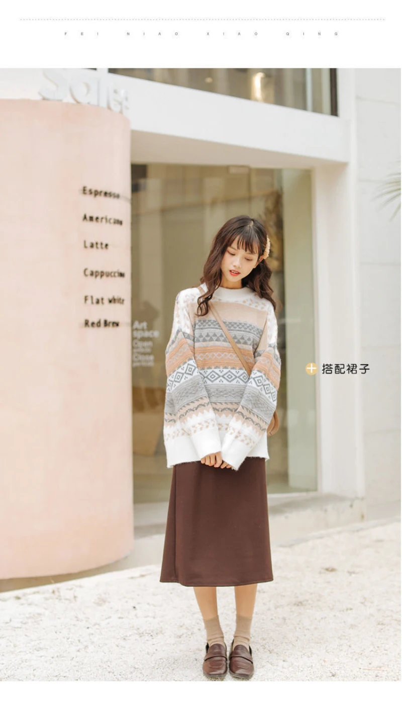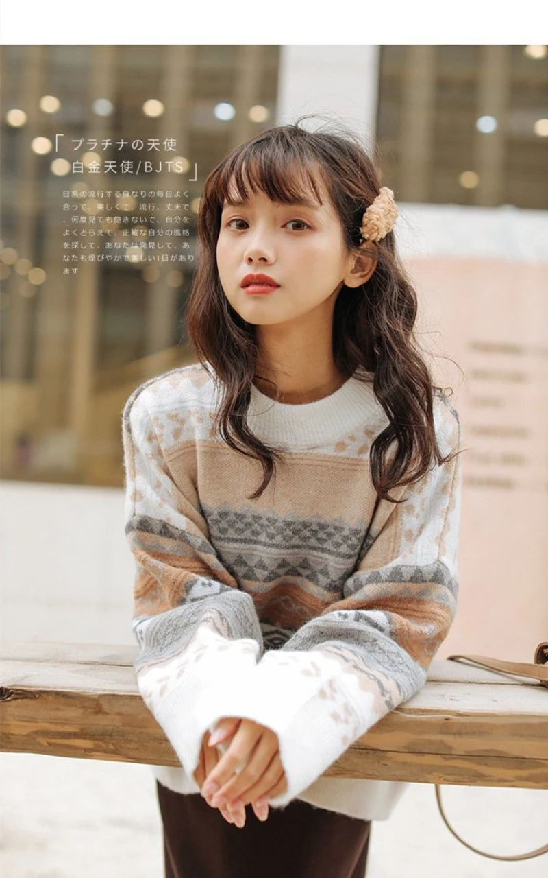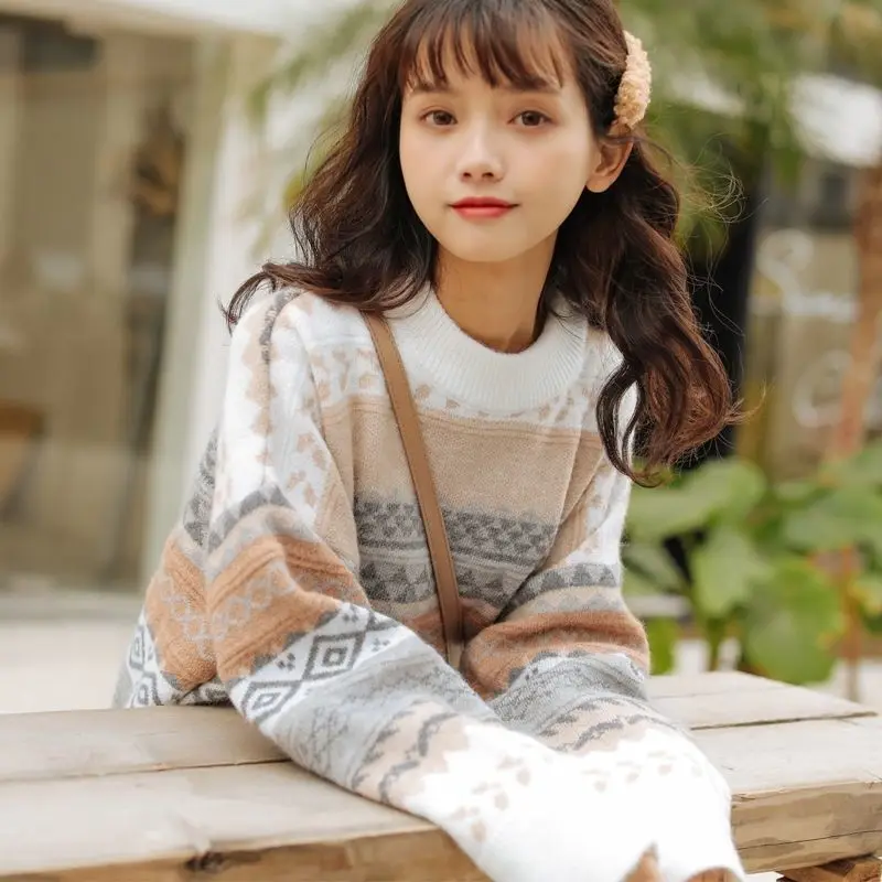 JMPRS Pullover Women Sweater Vintage Loose Casual Geometric Retro Lazy Female Harajuku Korean Style Knit Jumper Ulzzang Chic Top