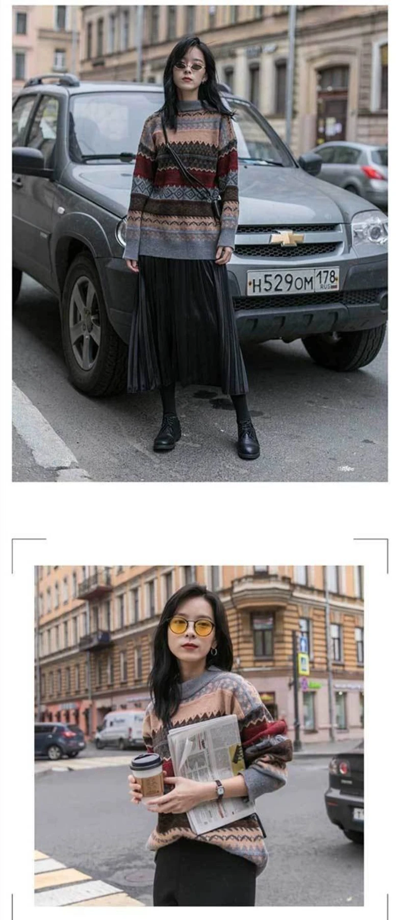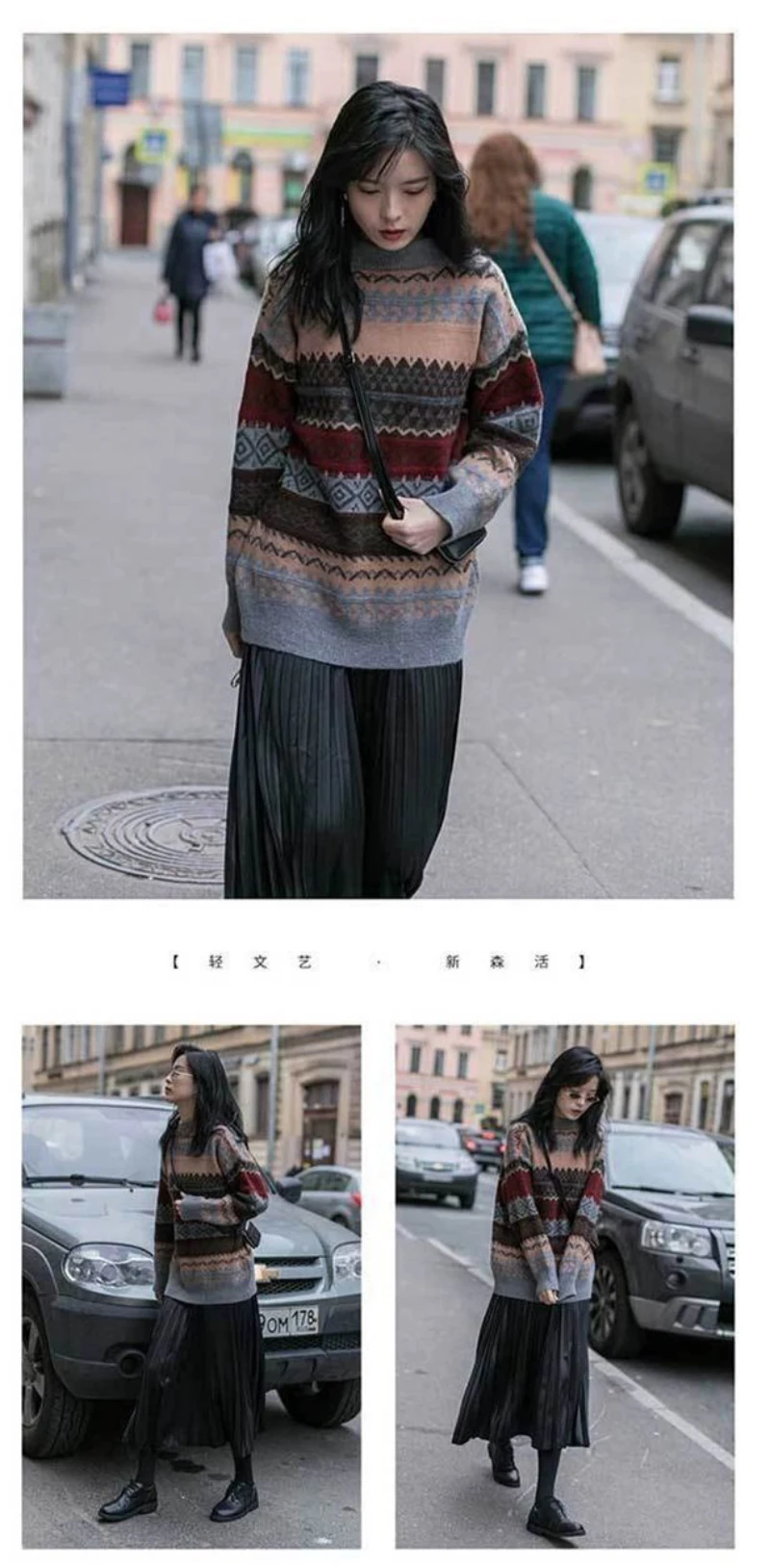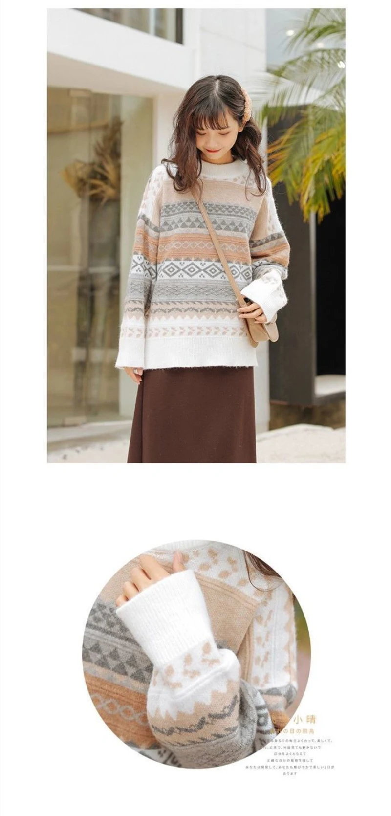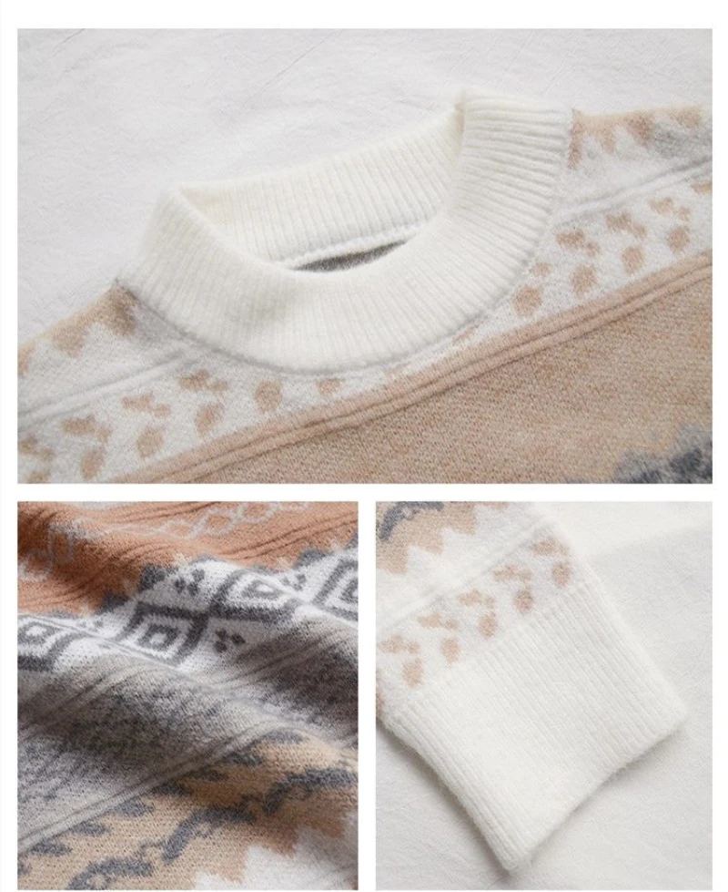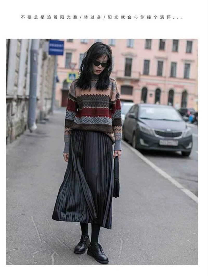 JMPRS Pullover Women Sweater Vintage Loose Casual Geometric Retro Lazy Female Harajuku Korean Style Knit Jumper Ulzzang Chic Top