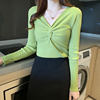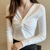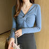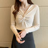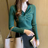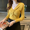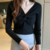 JMPRS Sexy V Neck Women Sweater Fashion Long Sleeve Knitted Pullover Jumper Slim Autumn Elastic Soft Female Knotted Basic Top