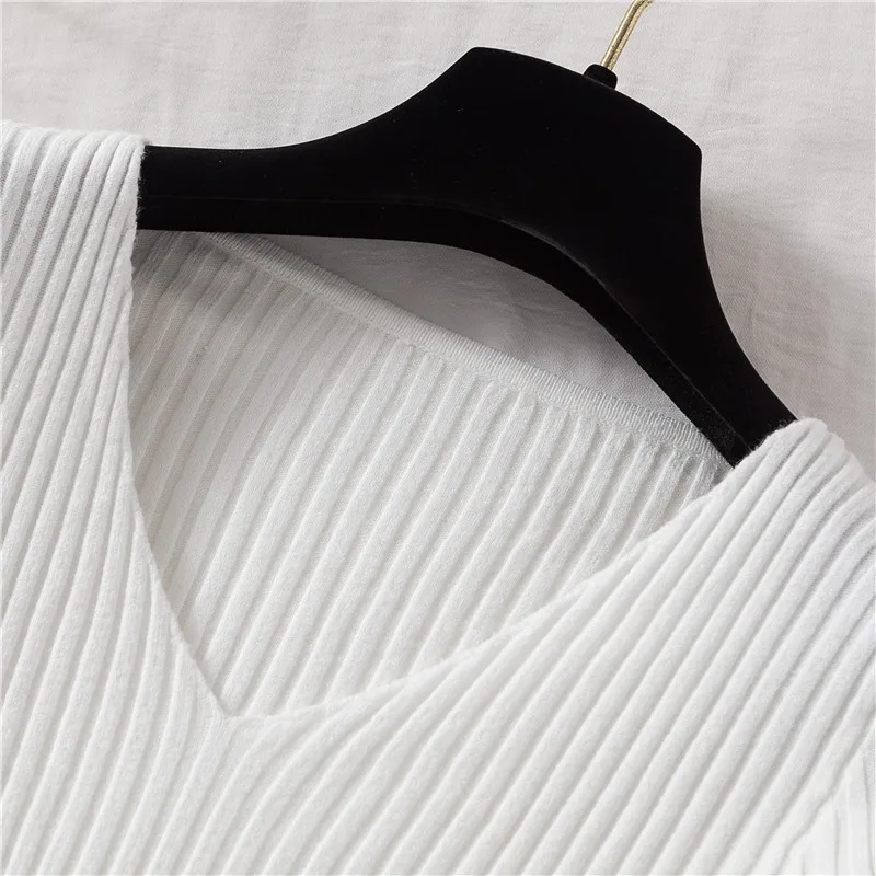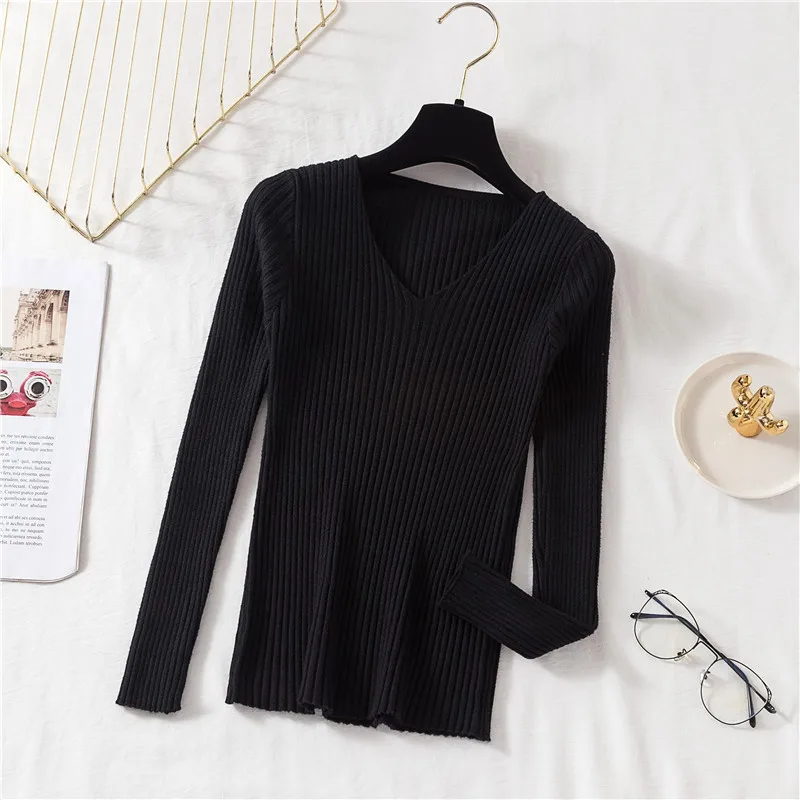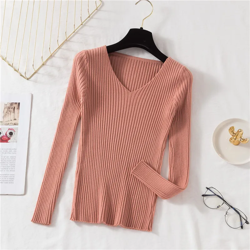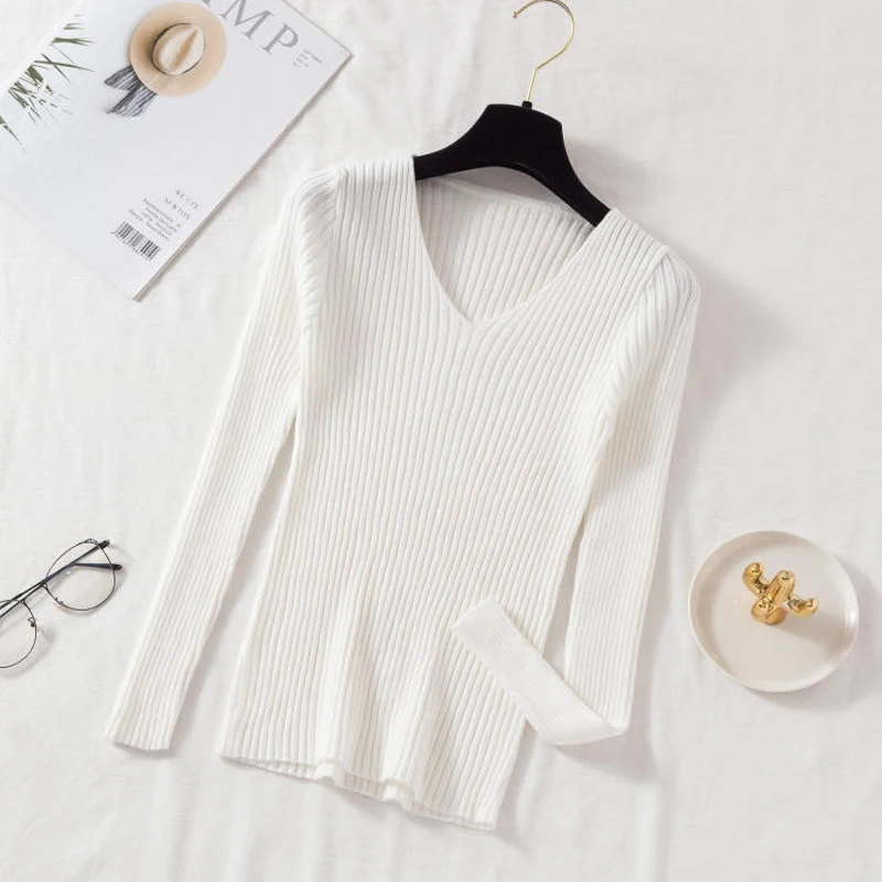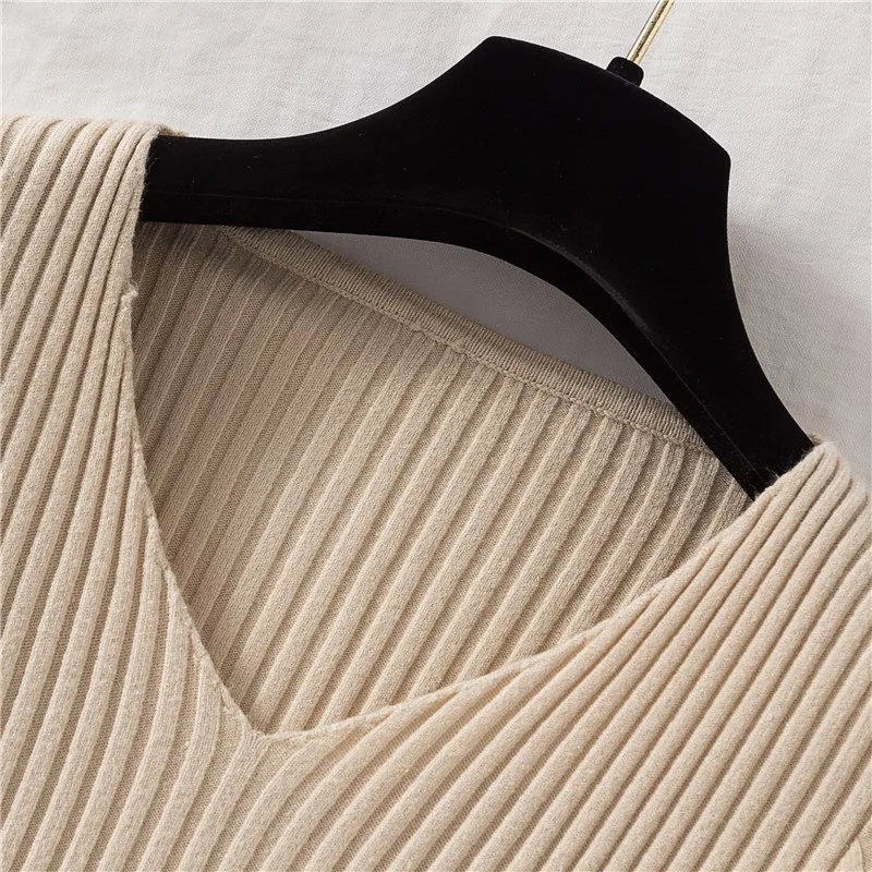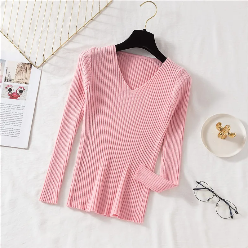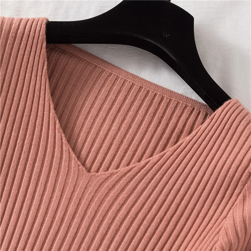 JMPRS Sexy Women Sweater Autumn V Neck Long Sleeve Knitted Jumper Pullover Winter Female Basic Blouse Casual Elastic Top