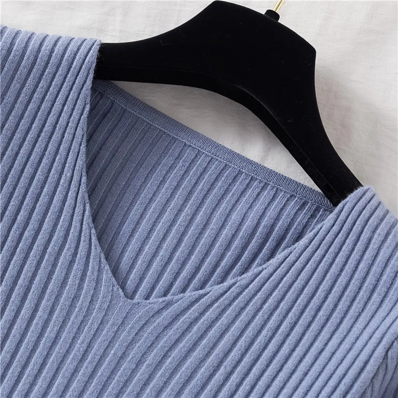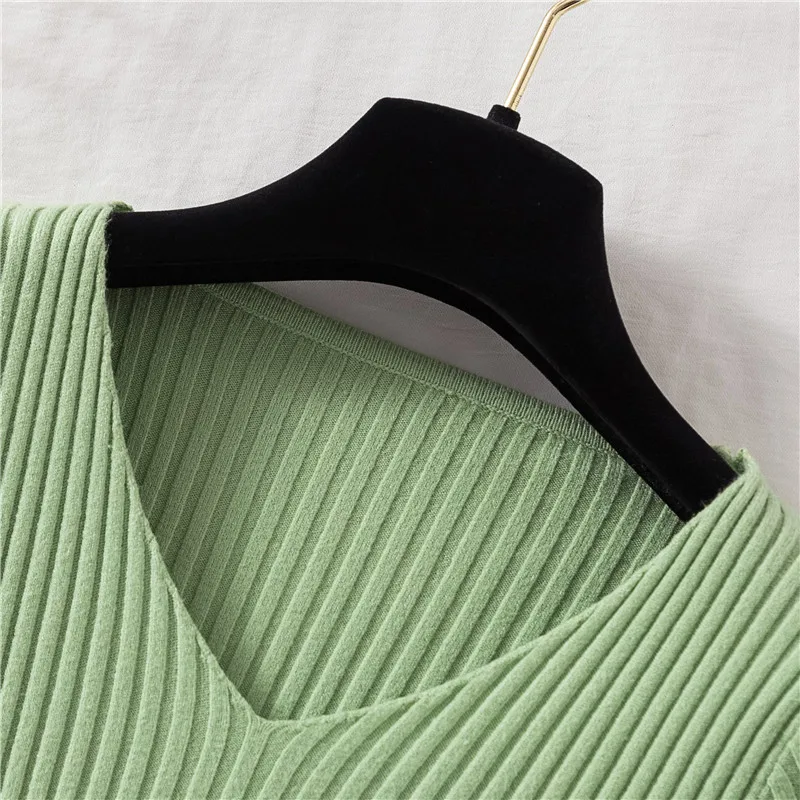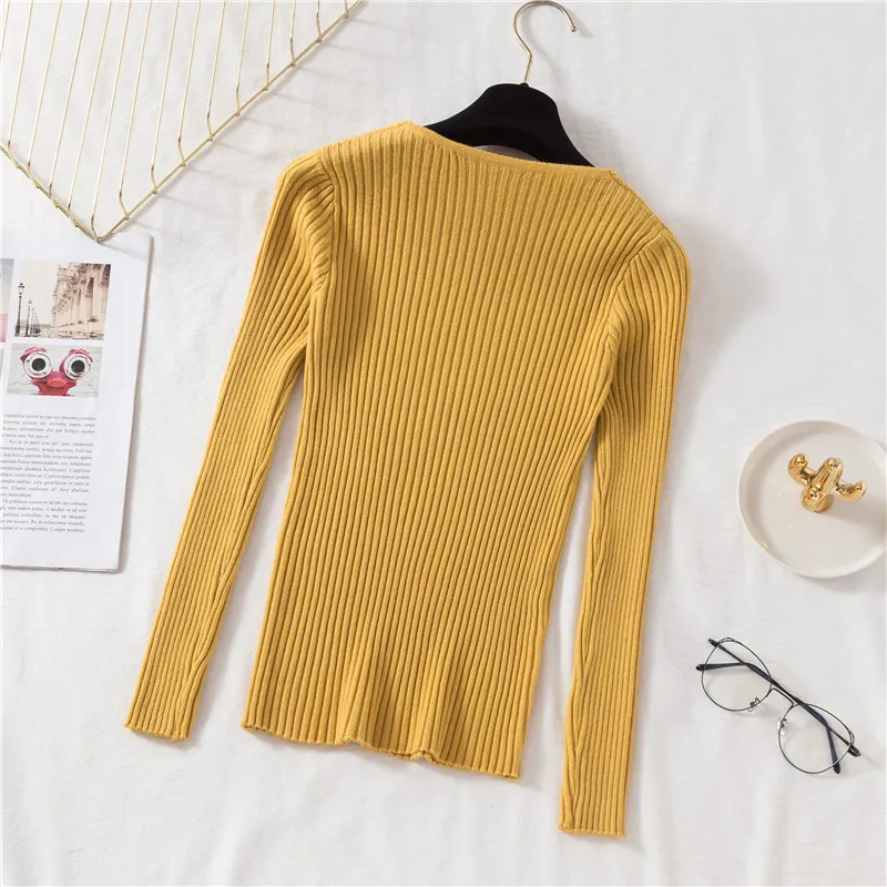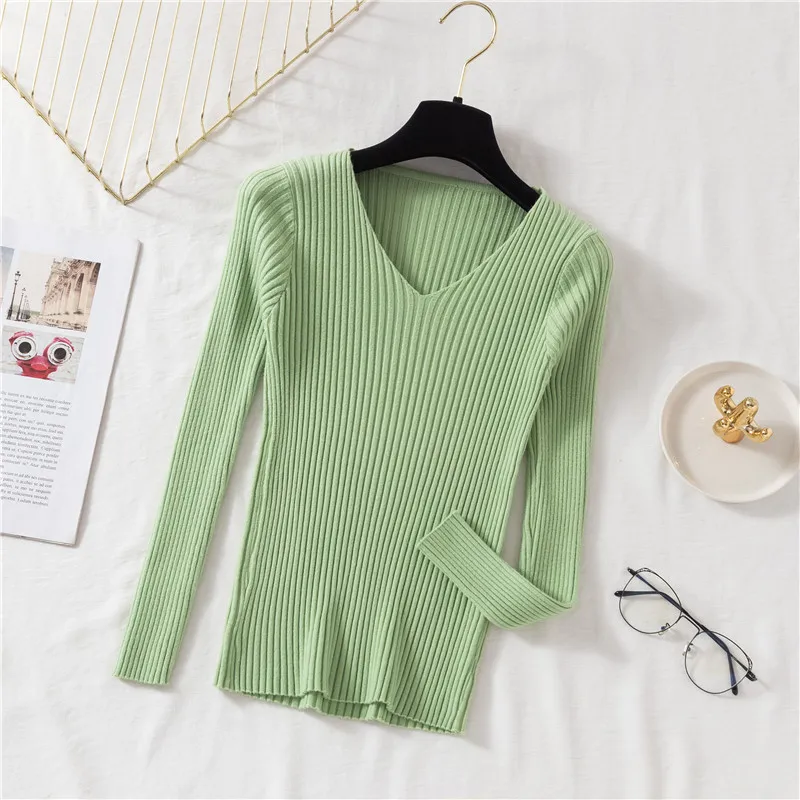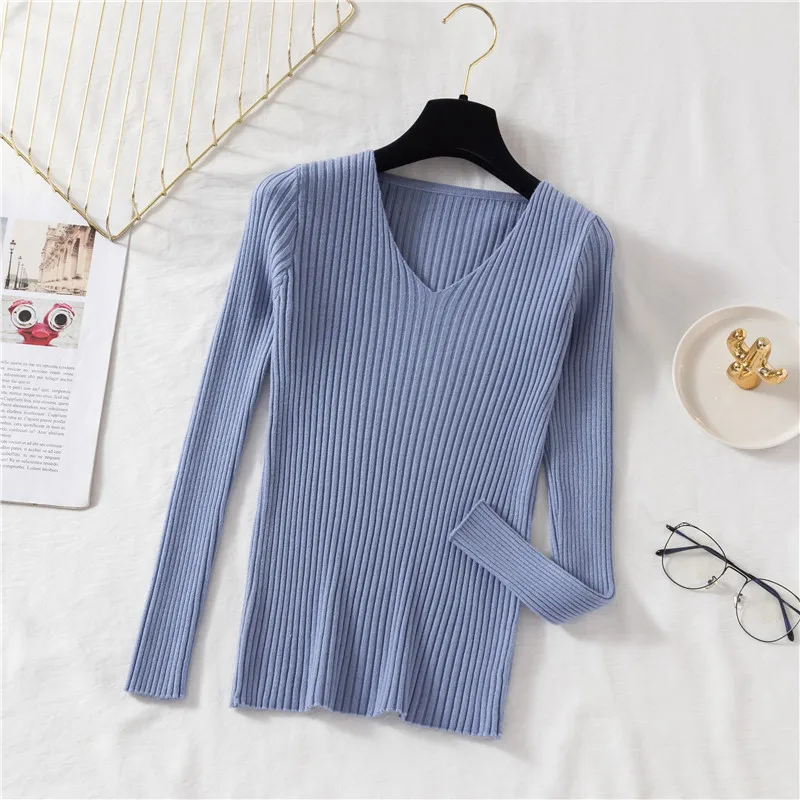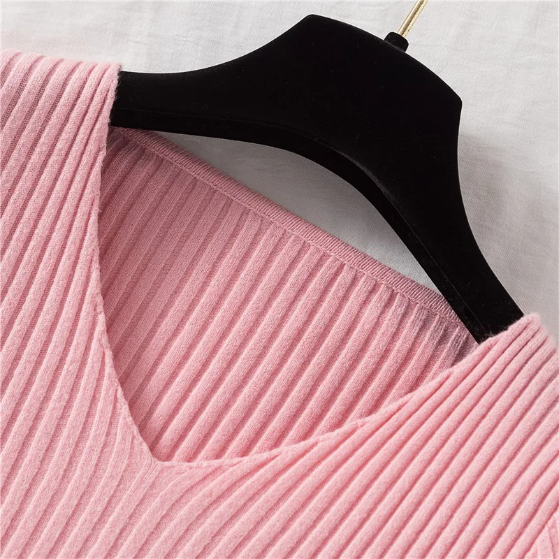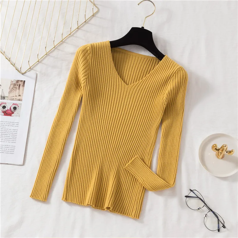 JMPRS Sexy Women Sweater Autumn V Neck Long Sleeve Knitted Jumper Pullover Winter Female Basic Blouse Casual Elastic Top