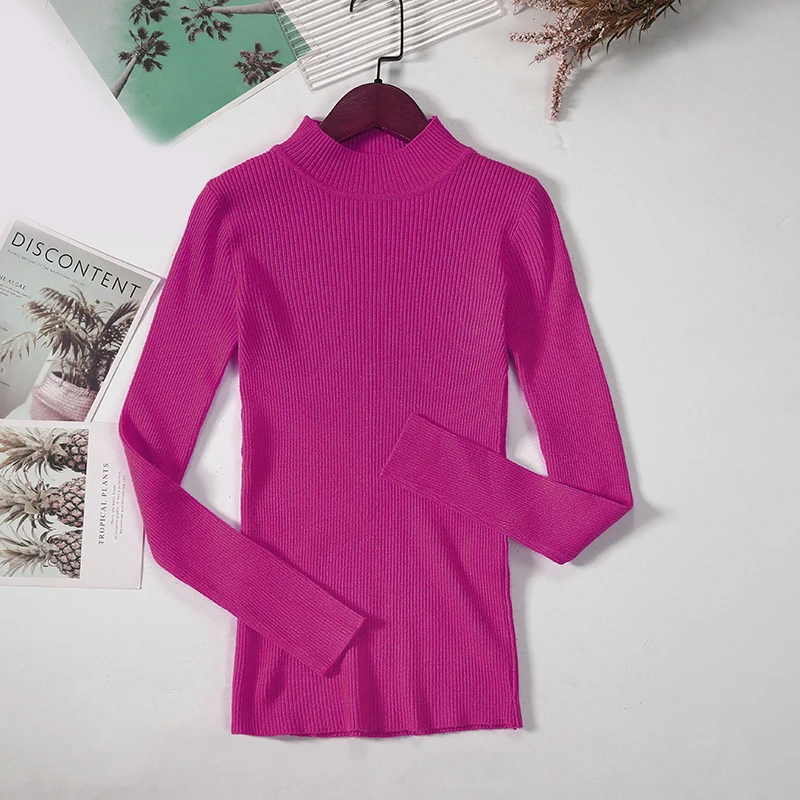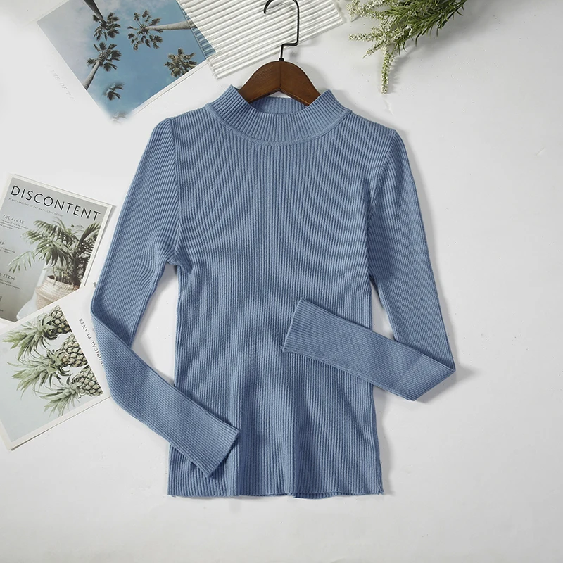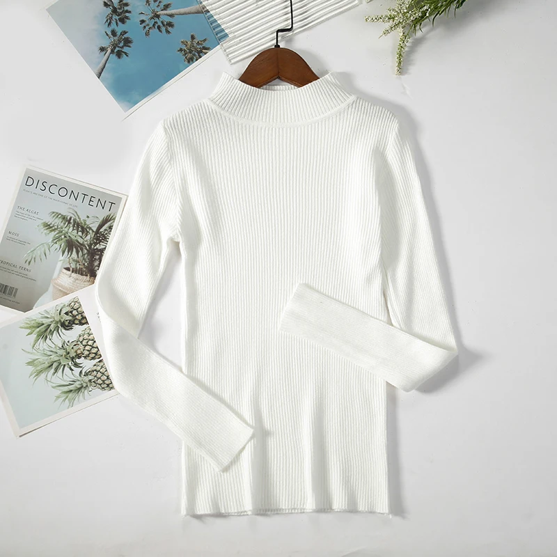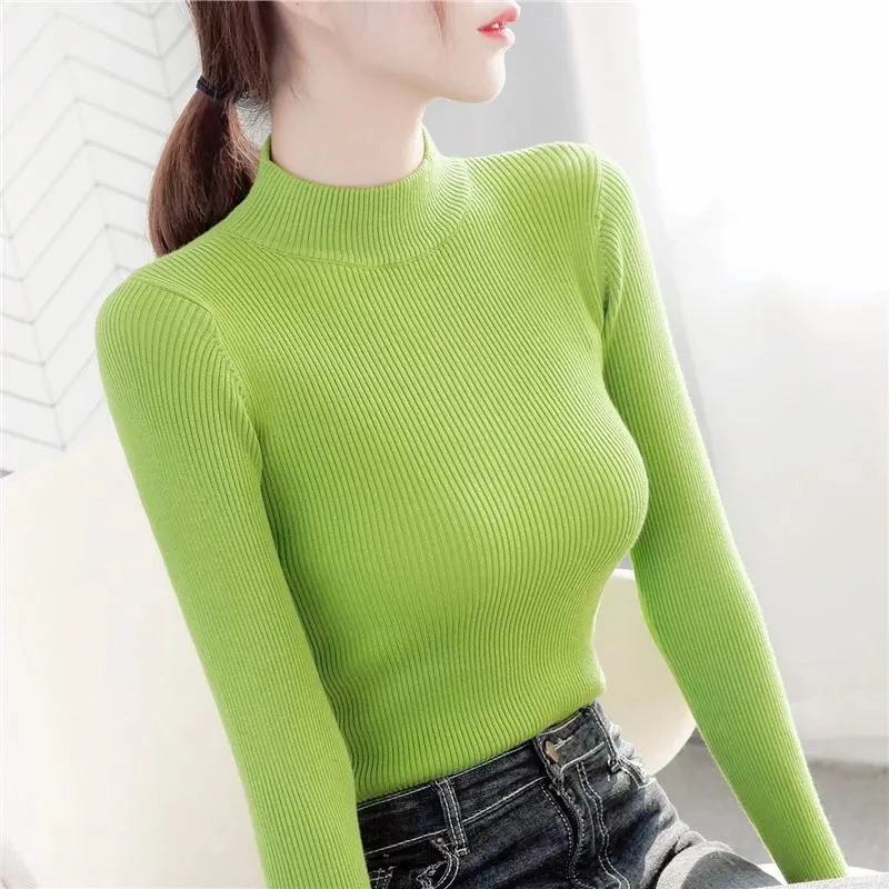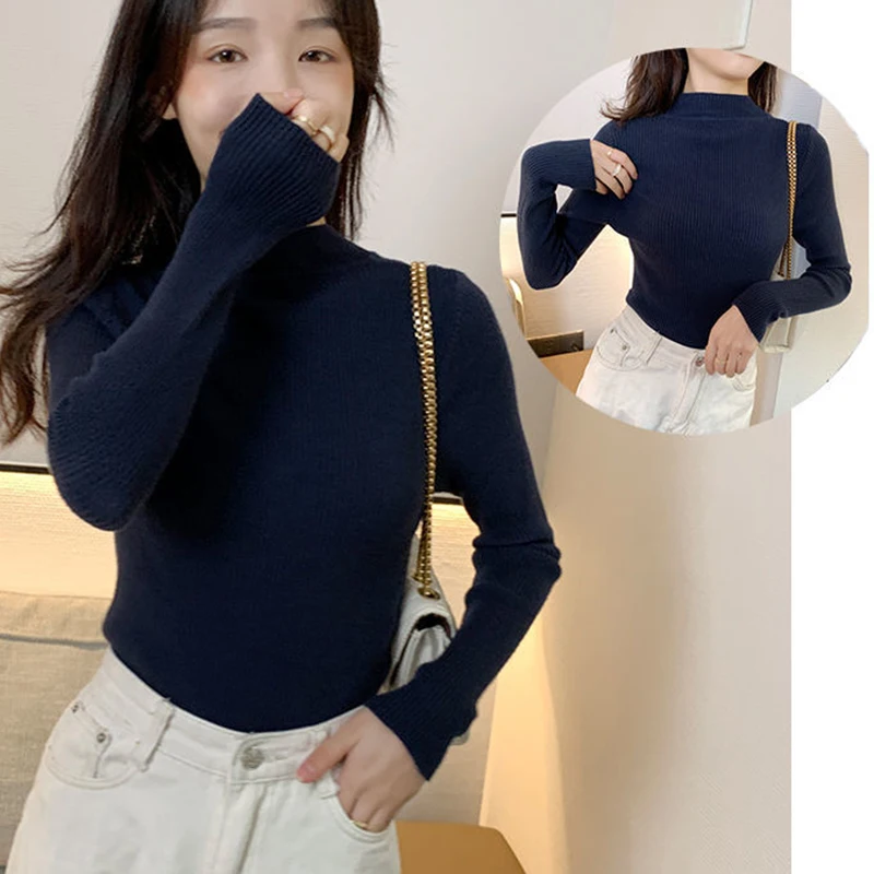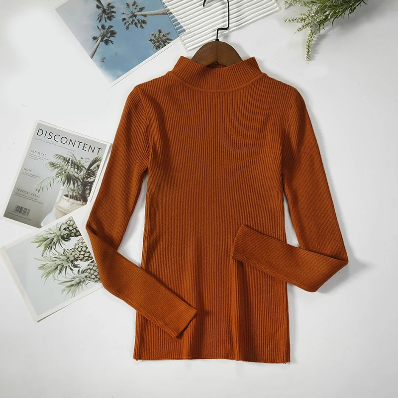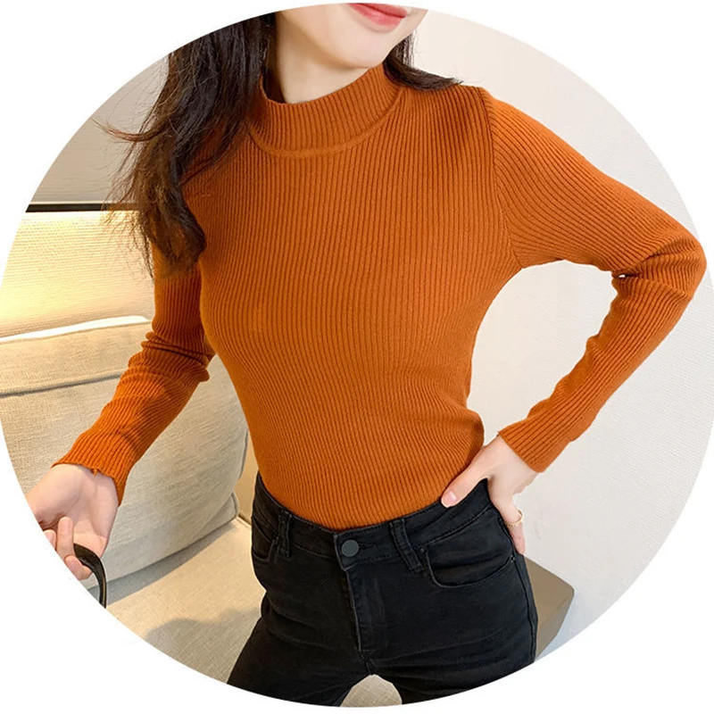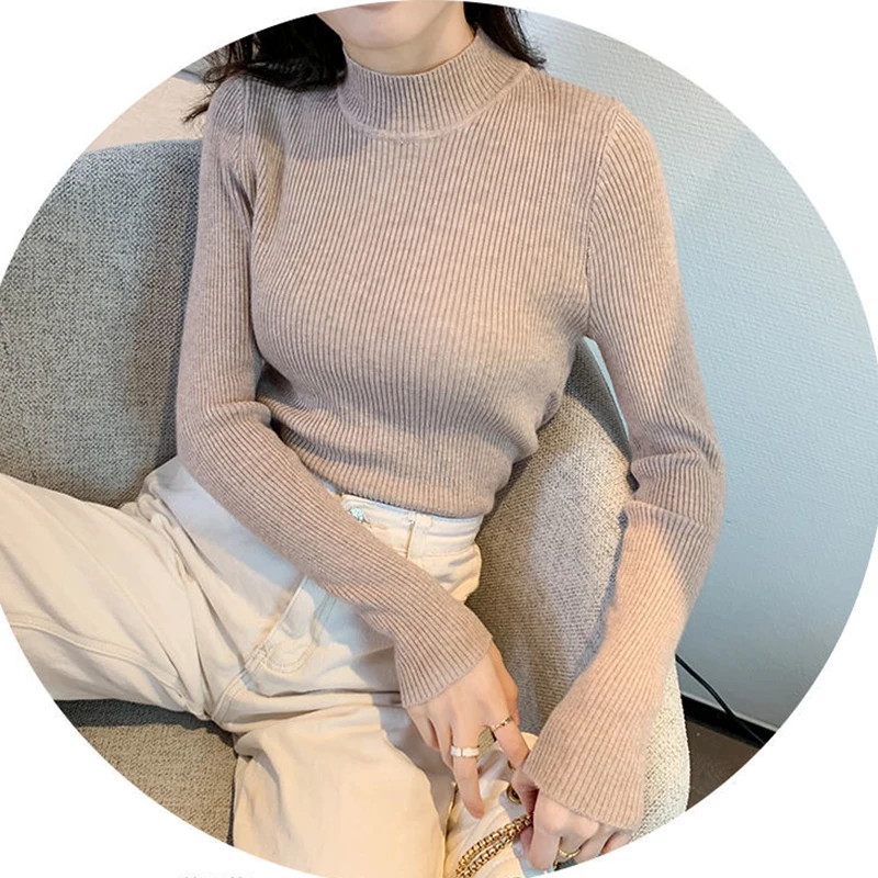 JMPRS Simple Women Sweater Winter Stand Collar Fashion Pullover Elastic Knit Ladies Jumper Casual Solid Black Female Basic Tops