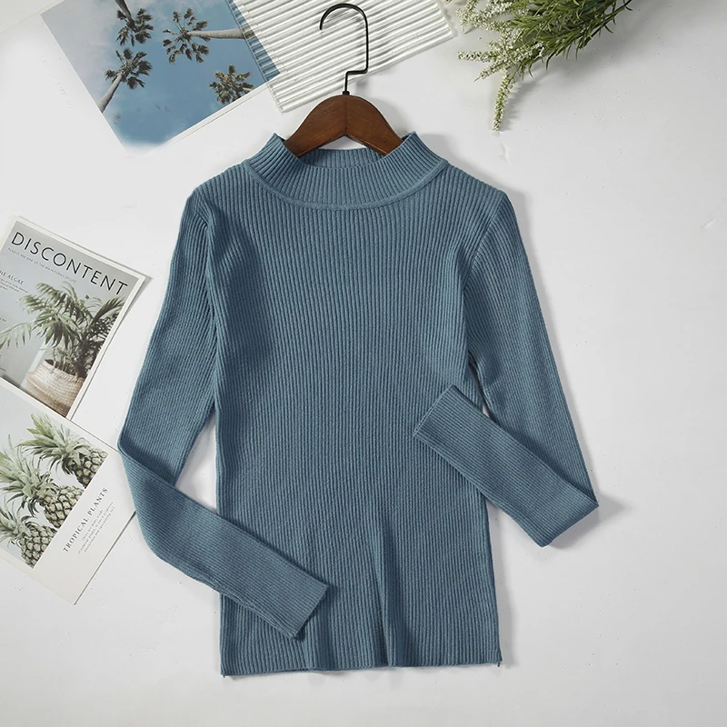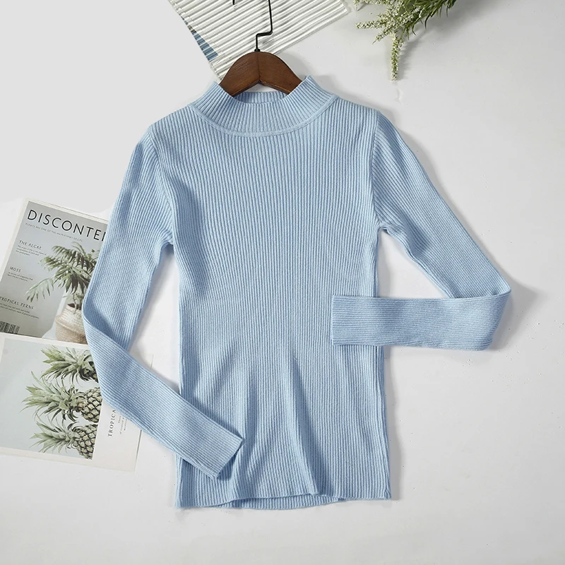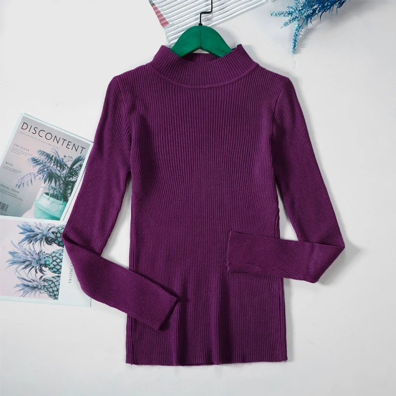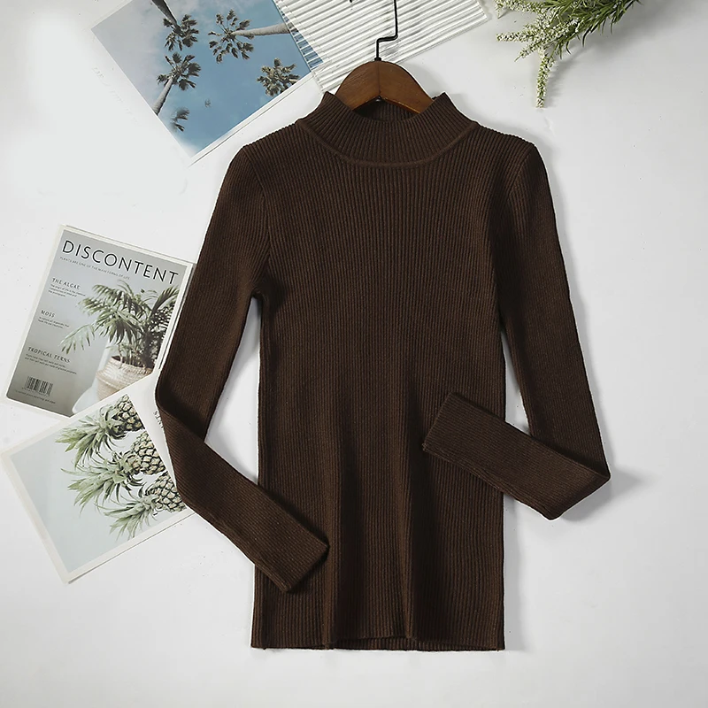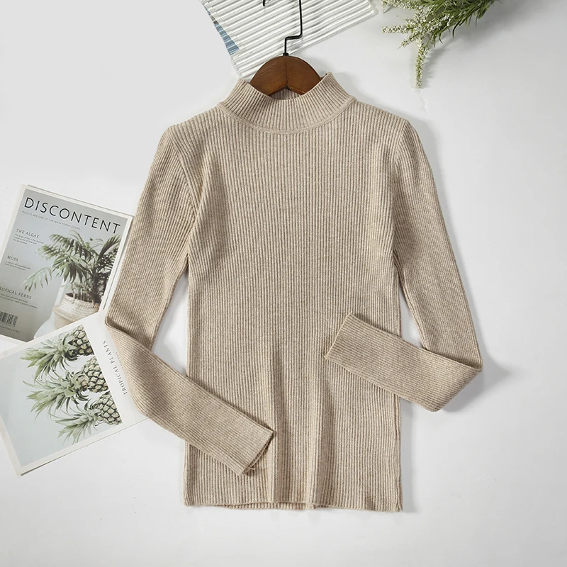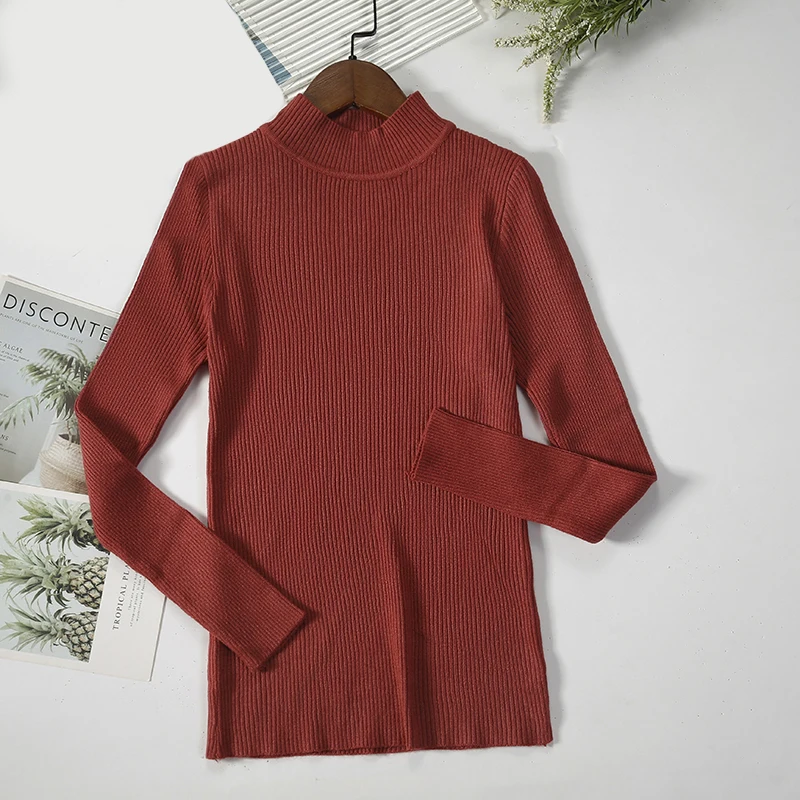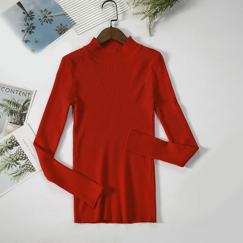 JMPRS Simple Women Sweater Winter Stand Collar Fashion Pullover Elastic Knit Ladies Jumper Casual Solid Black Female Basic Tops