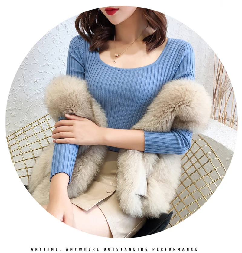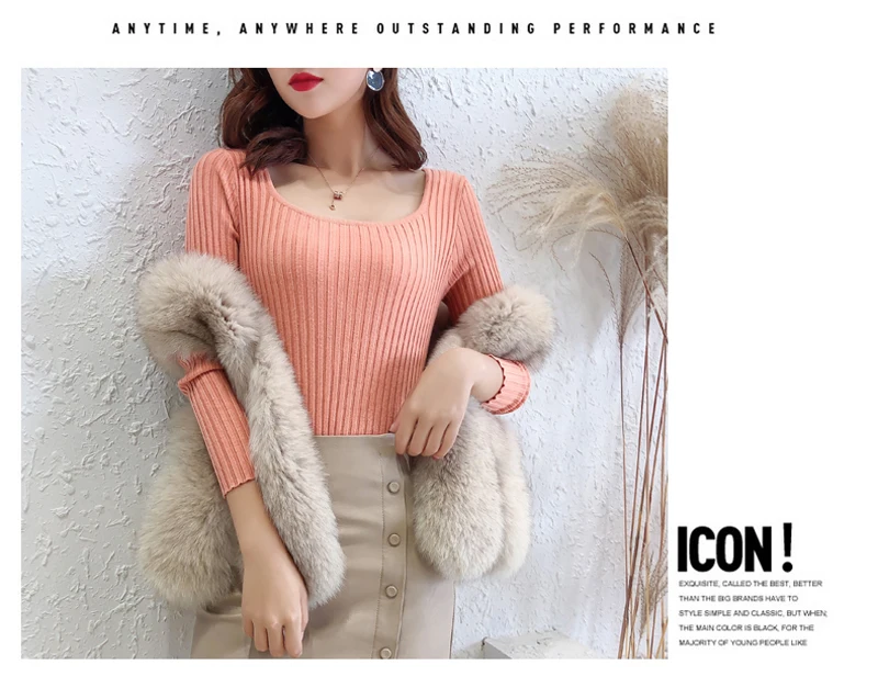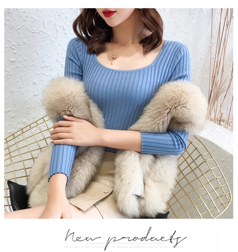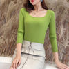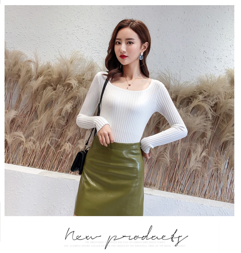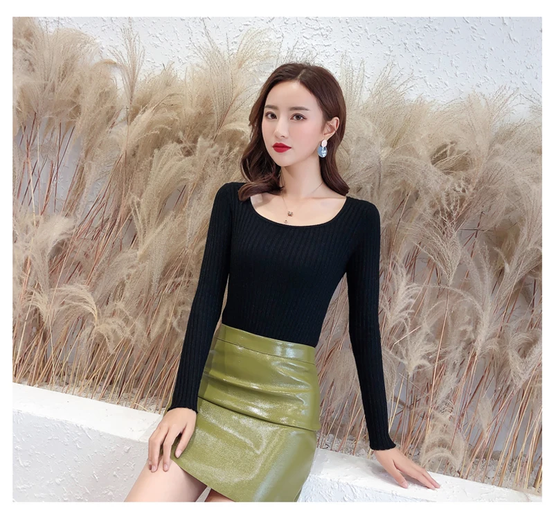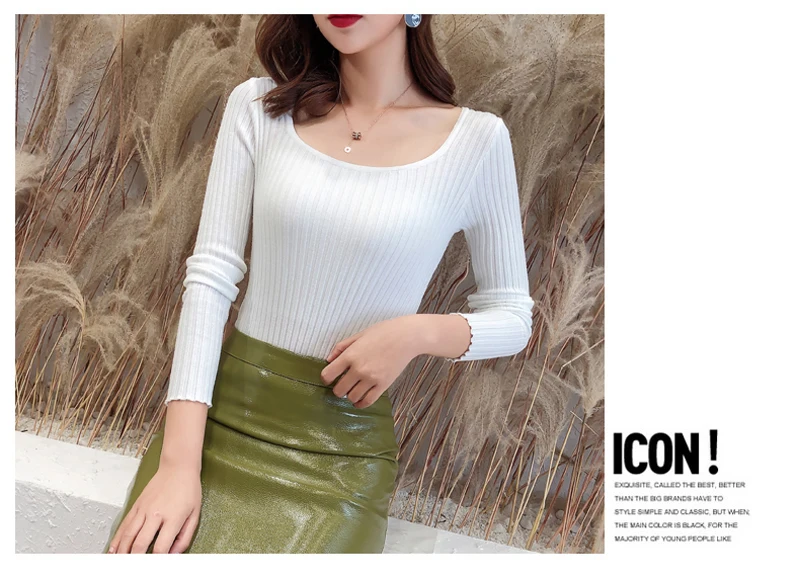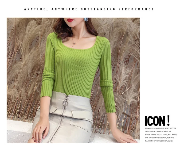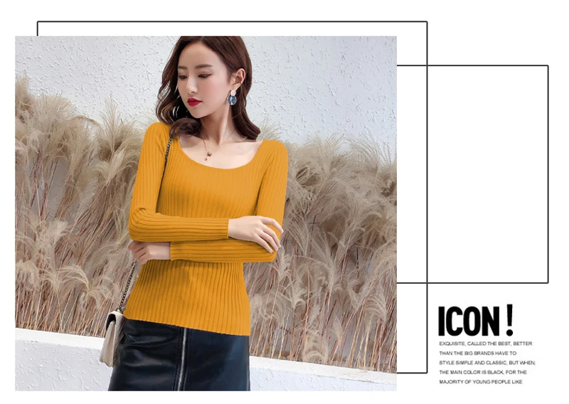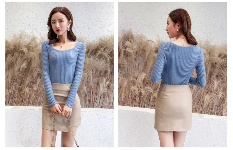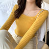 JMPRS Soft Women Pullover Sweater Autumn Long Sleeve Square Collar Knitted Korean Slim Elastic Jumper Casual Winter Basic Top