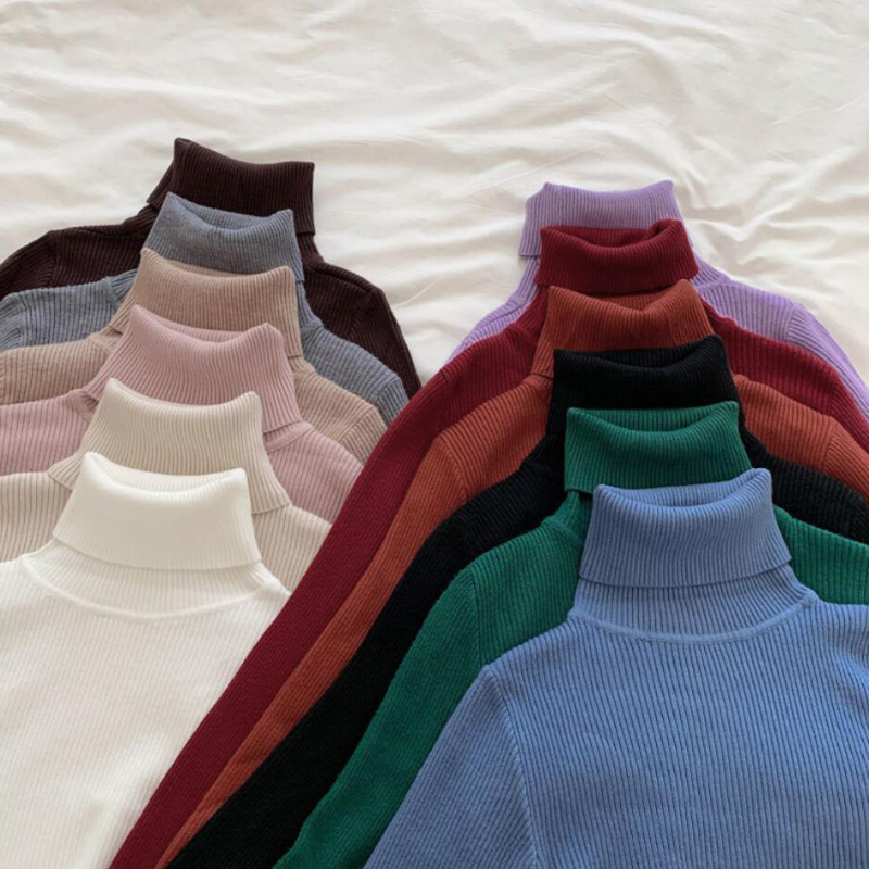JMPRS Spring 2022 Women Turtleneck Sweater Pullover Long Sleeve Knitted Solid Jumper Casual Fall Basic Ladies Cheap Tops