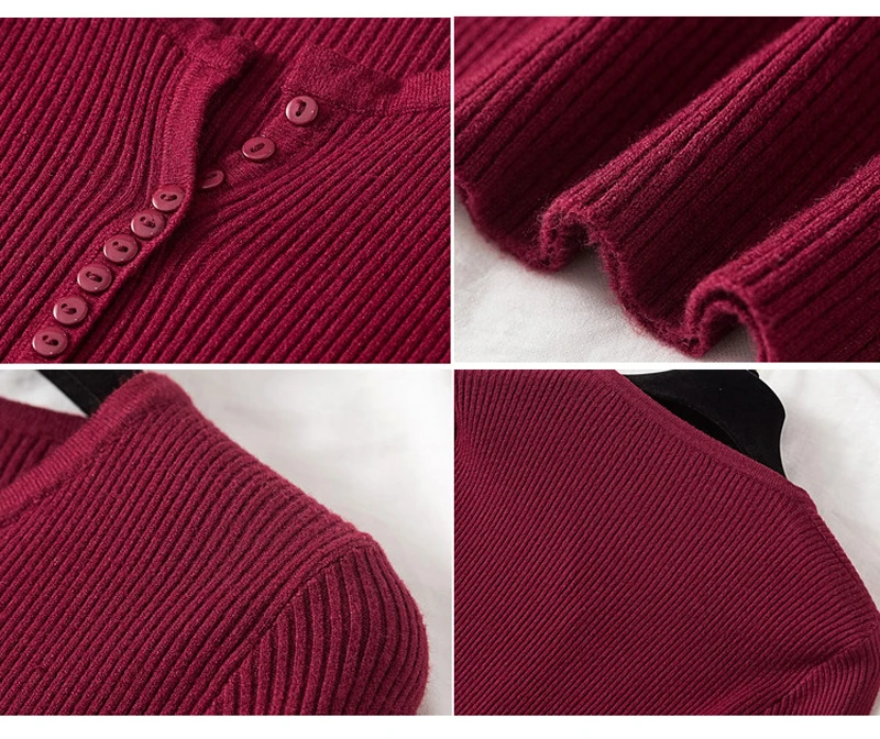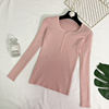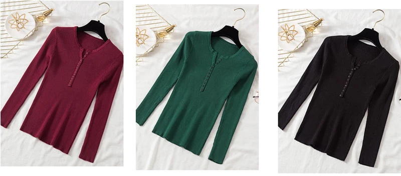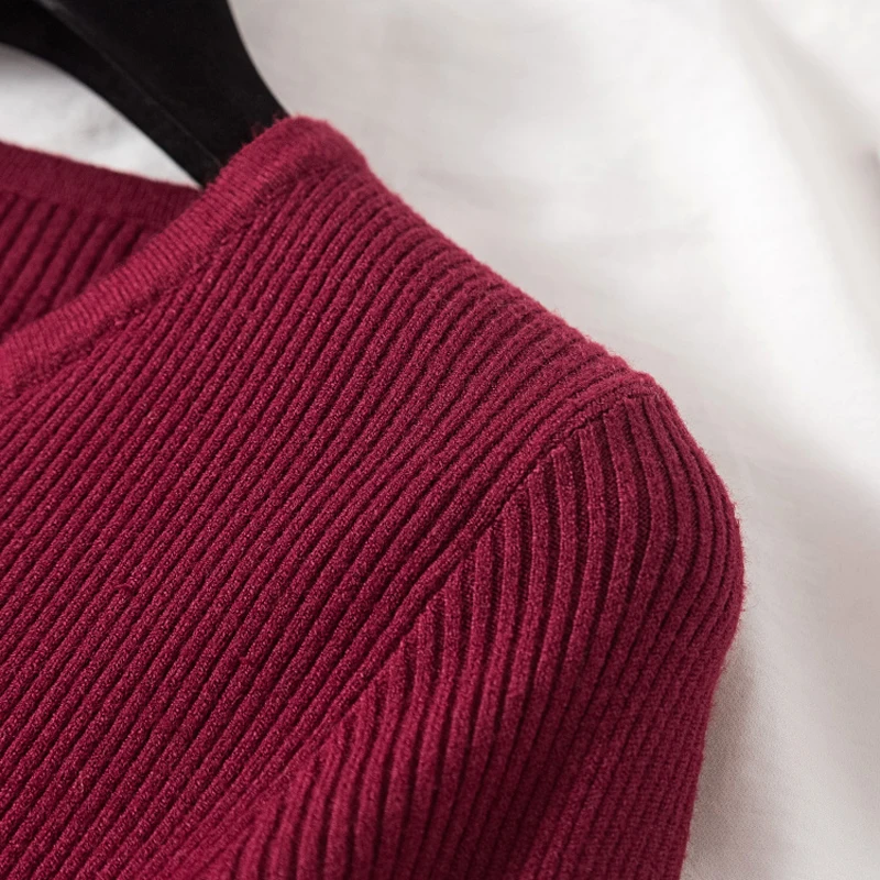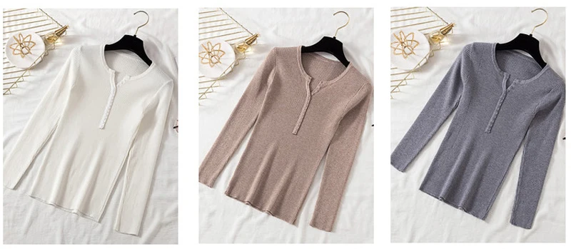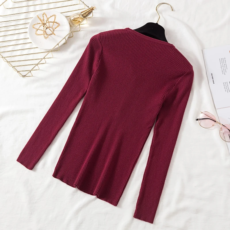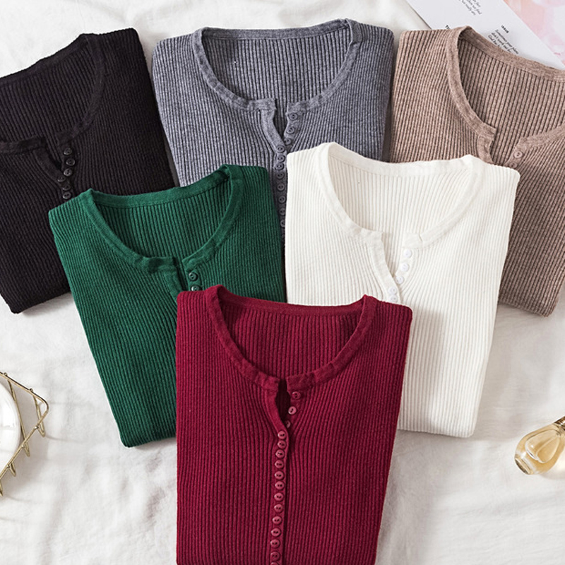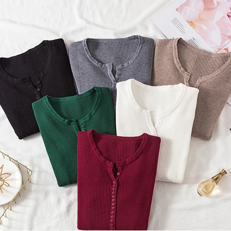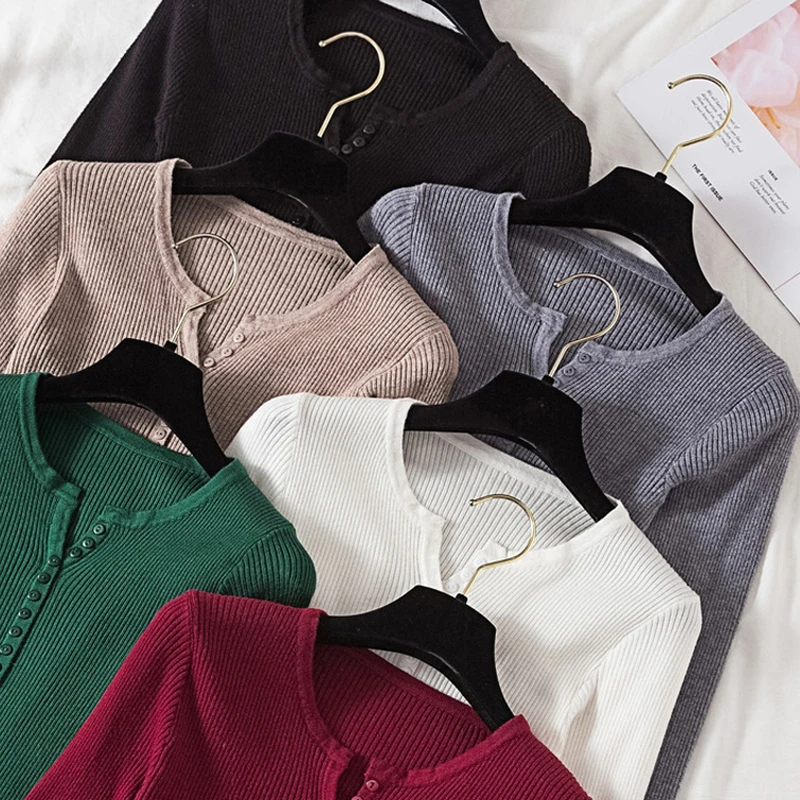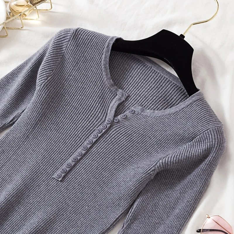 JMPRS V Neck Pullover Sweater Women Basic Autumn Slim Knitted Jumper Long Sleeve Button Soft Elastic Female Top New