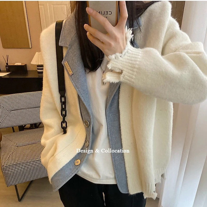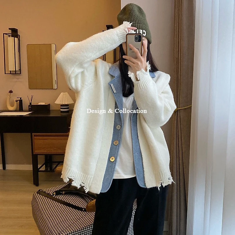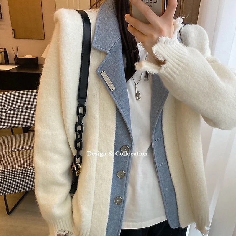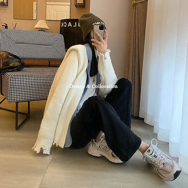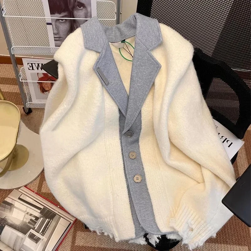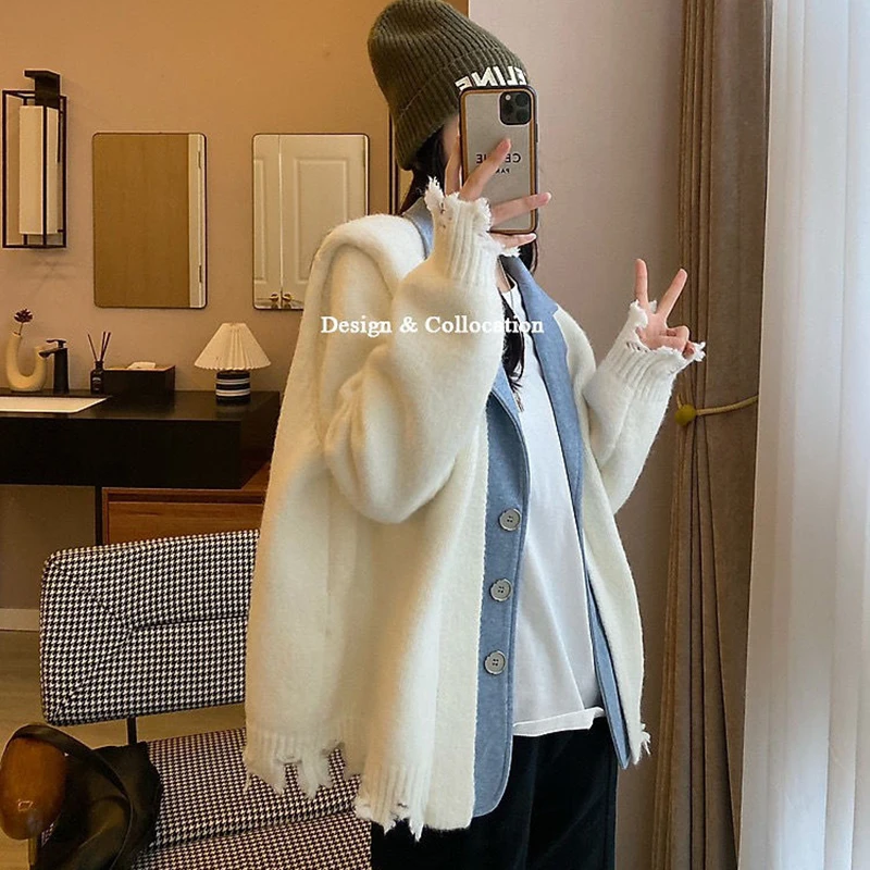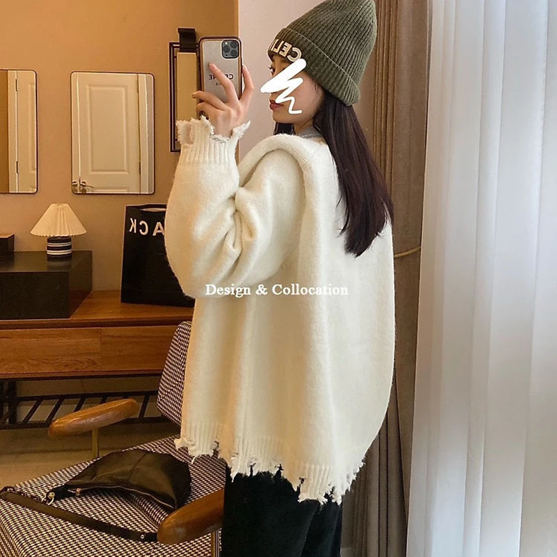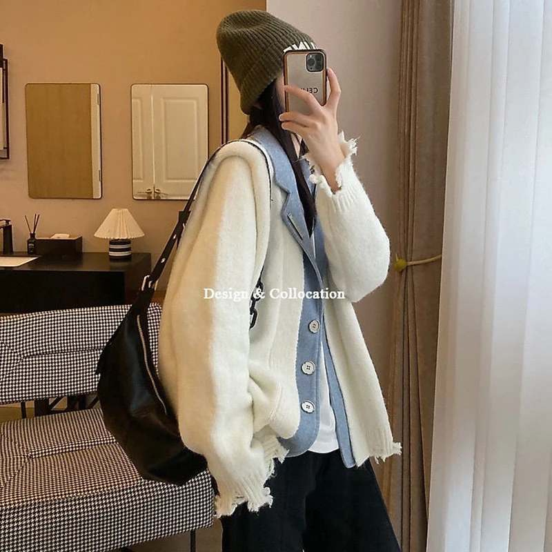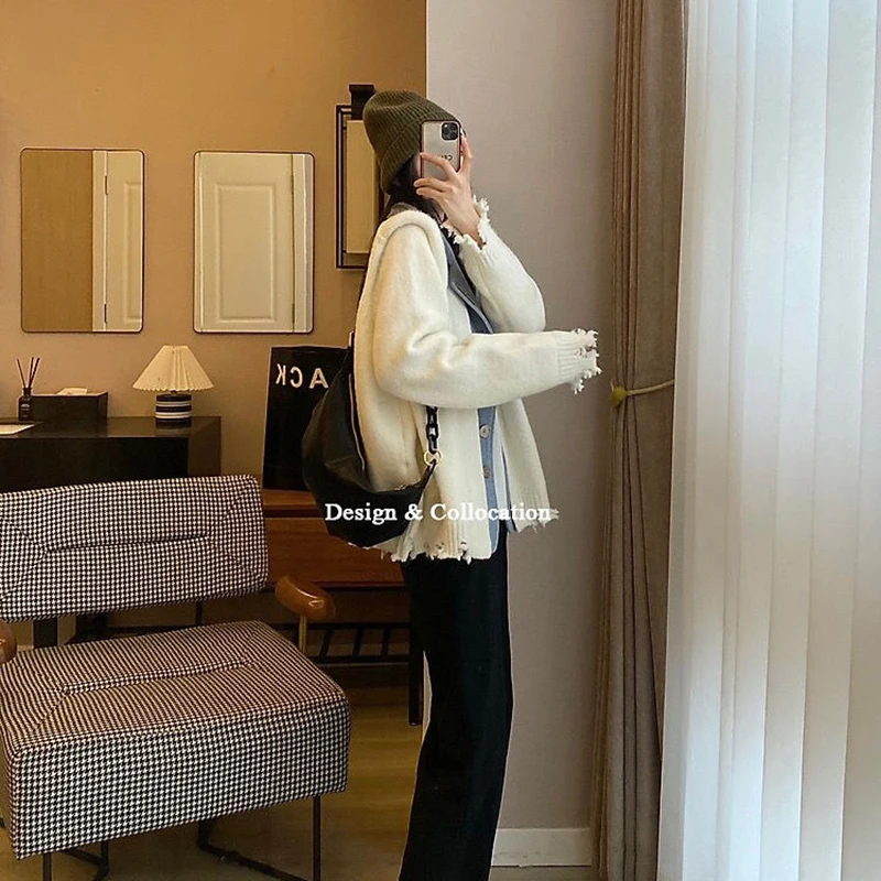 JMPRS Vintage Women Cardigan Sweater Korean Turn Down Collar Designed Tassel Fall Jumper Jackets Button Up Loose Soft Coats